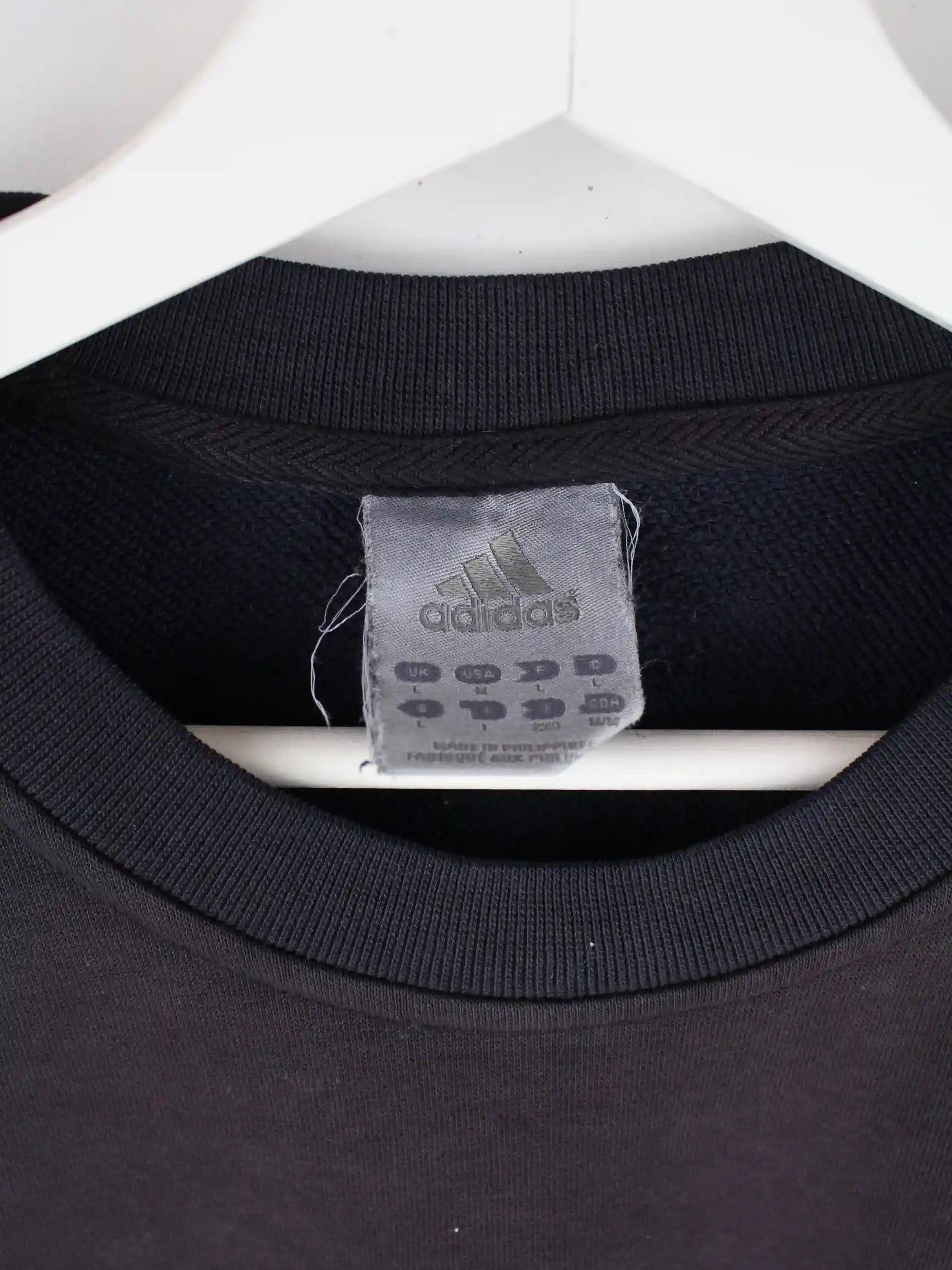 Sweater aus dem Hause Adidas in Größe L. Er ist aus einer Baumwollmischung produziert und in Schwarz auf Lager.