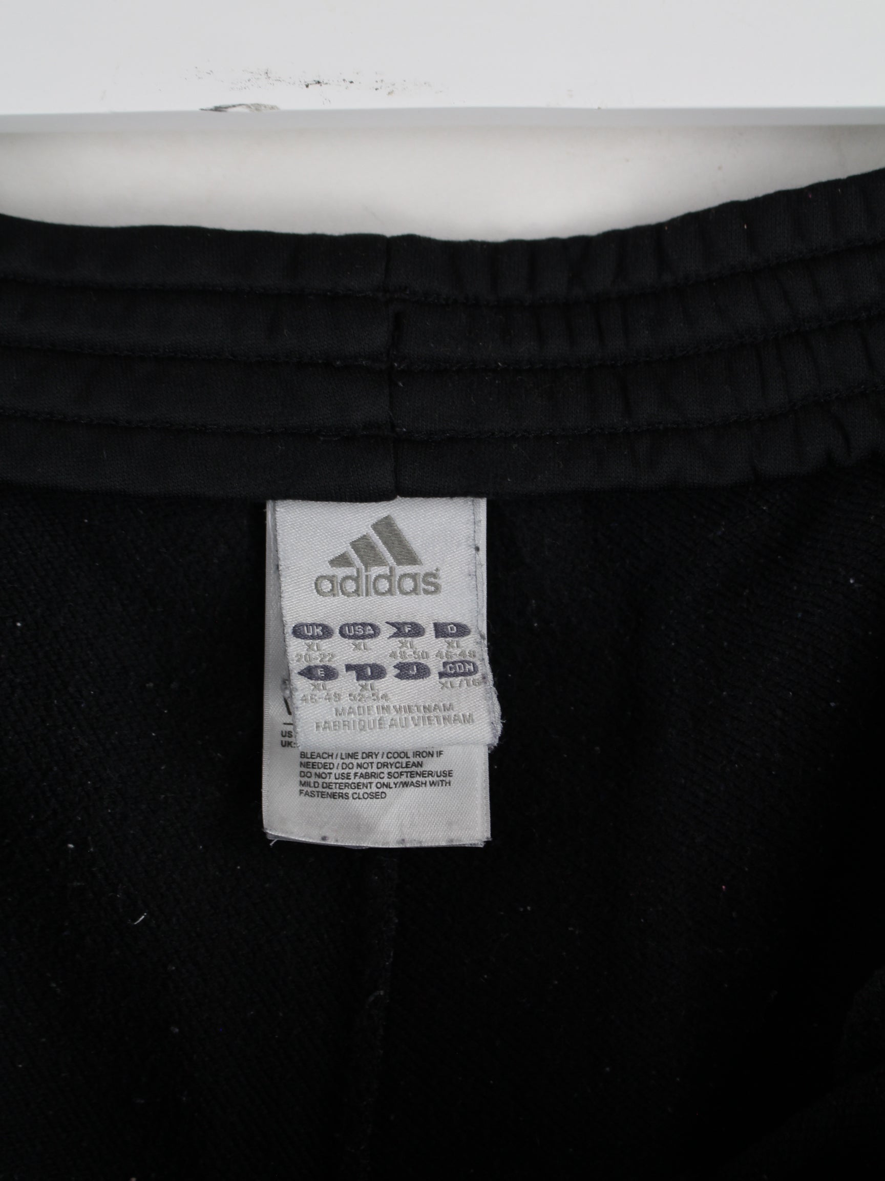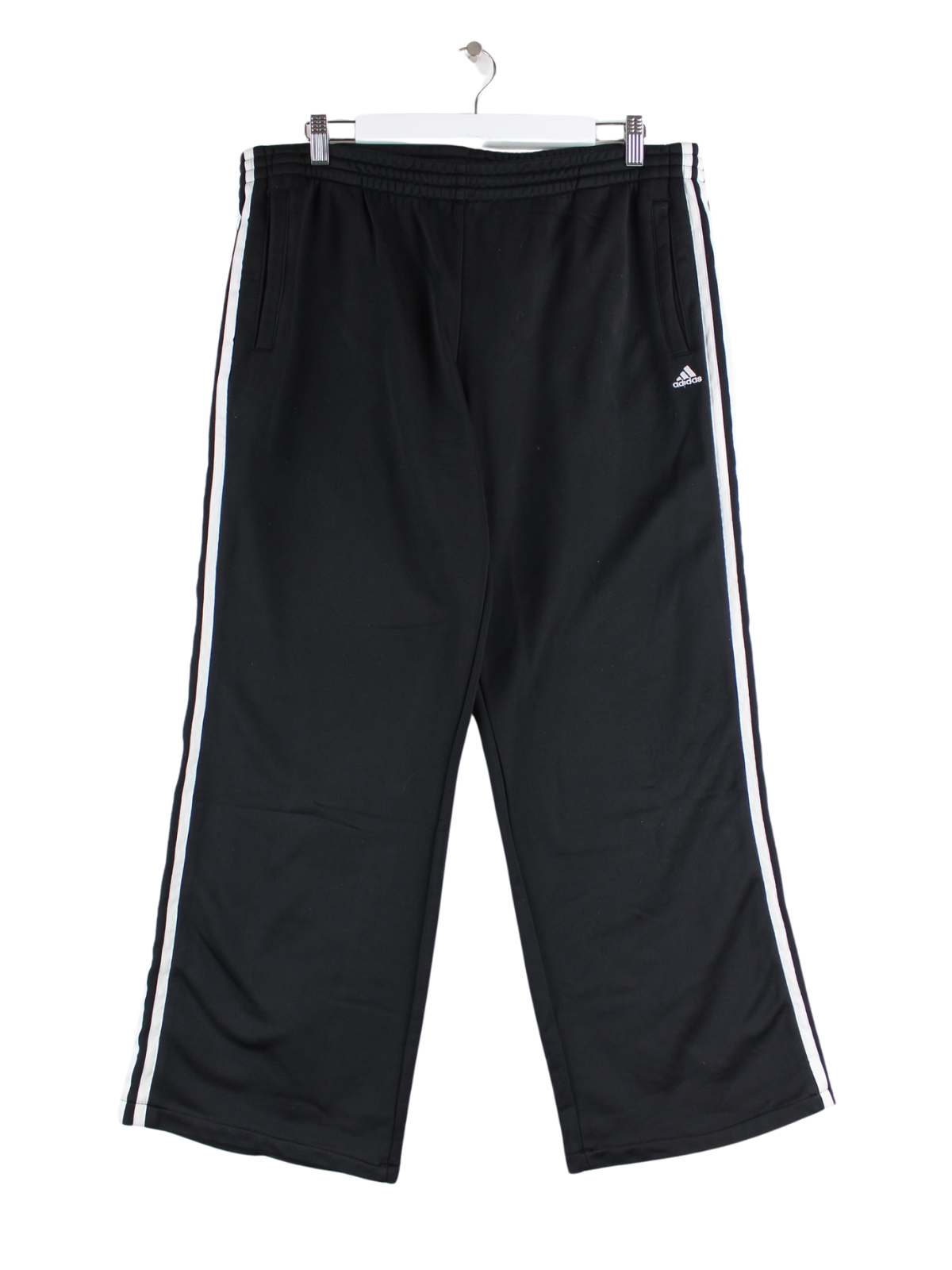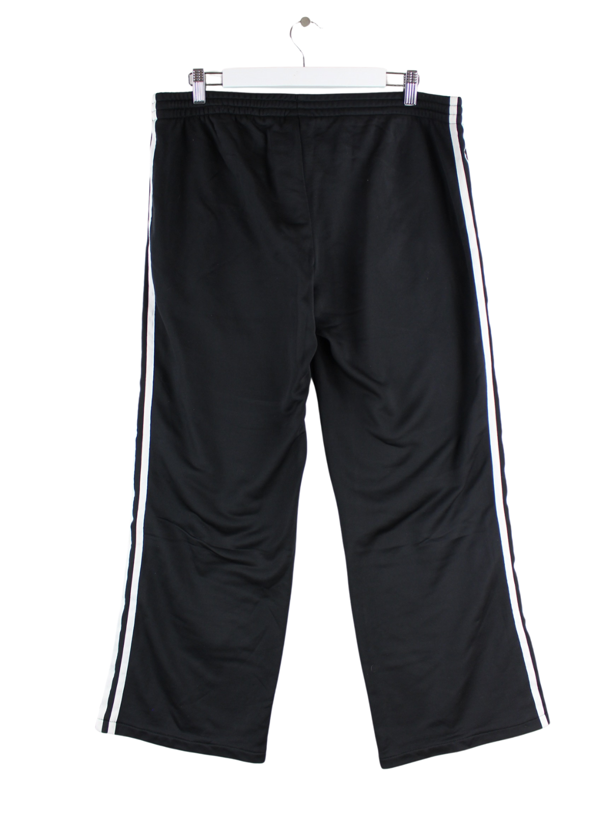 Schwarze Track Pants des Labels Adidas in Größe XL. Sie sind aus Synthetik produziert und in gutem Zustand zu haben.