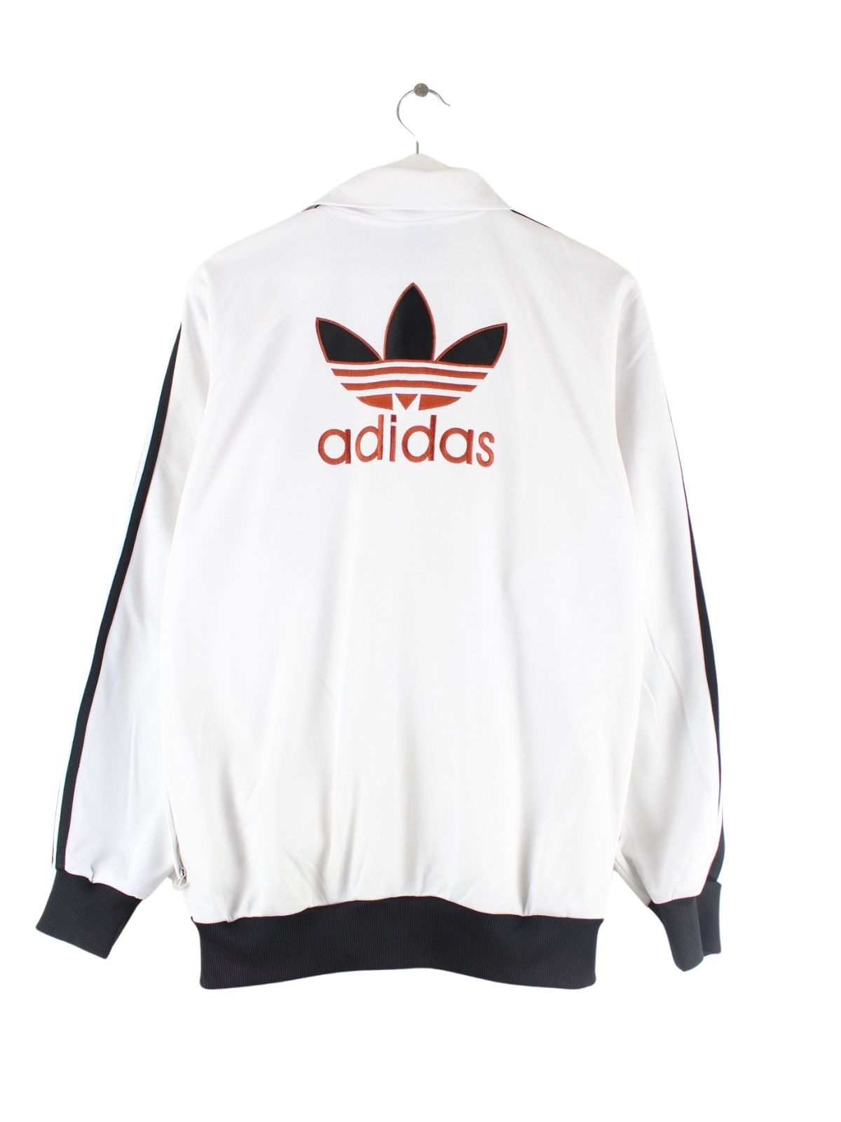 Trainingsjacke der Brand Adidas mit gestickten Motiven in Größe XL. Sie ist aus Synthetik und in Weiß lieferbar.