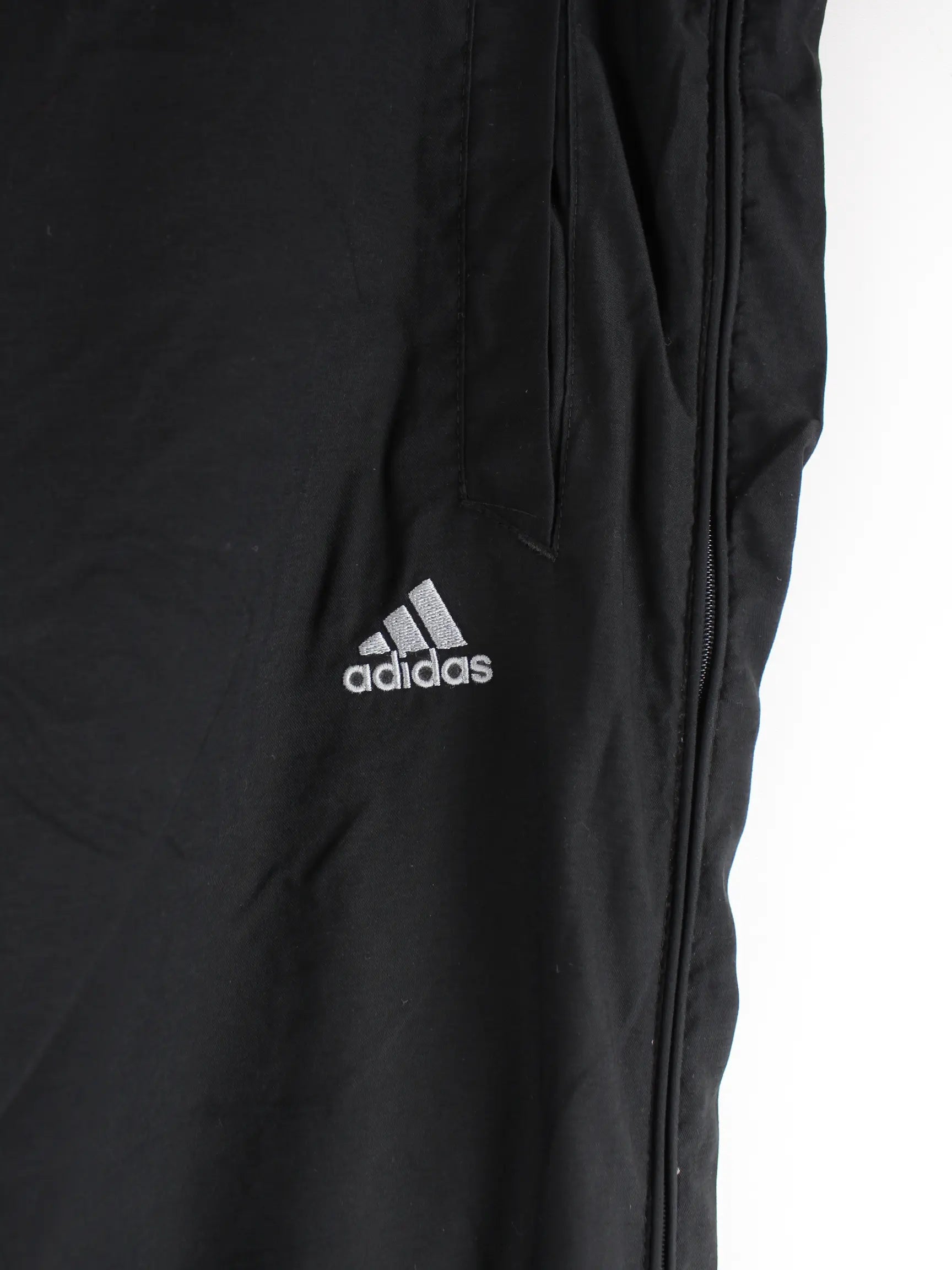 Schwarze Track Pants vom Brand Adidas in Größe S. Sie sind aus Synthetik und in gutem Zustand auf Lager.