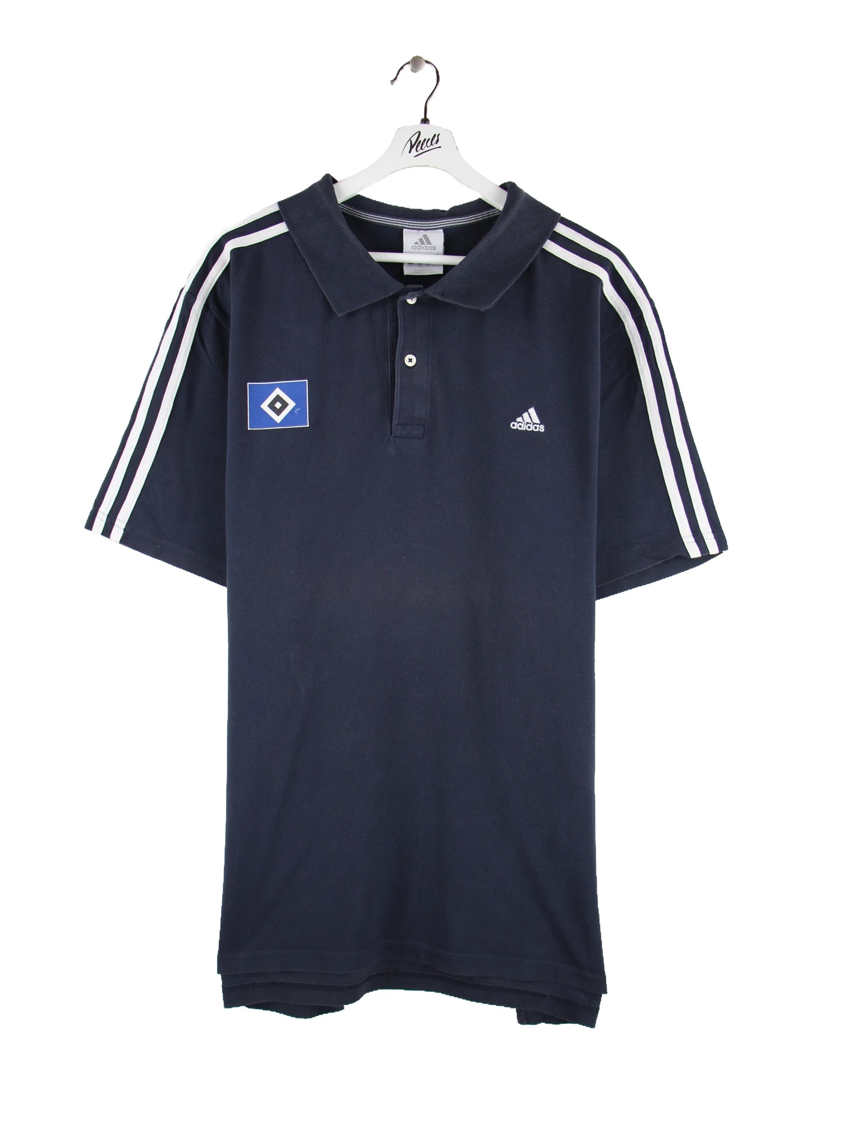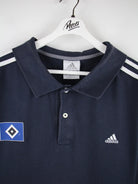Schwarzes Poloshirt von Adidas in Größe XXL. Es ist aus Baumwolle produziert und in gutem Zustand lieferbar. Mit schickem HSV Print.