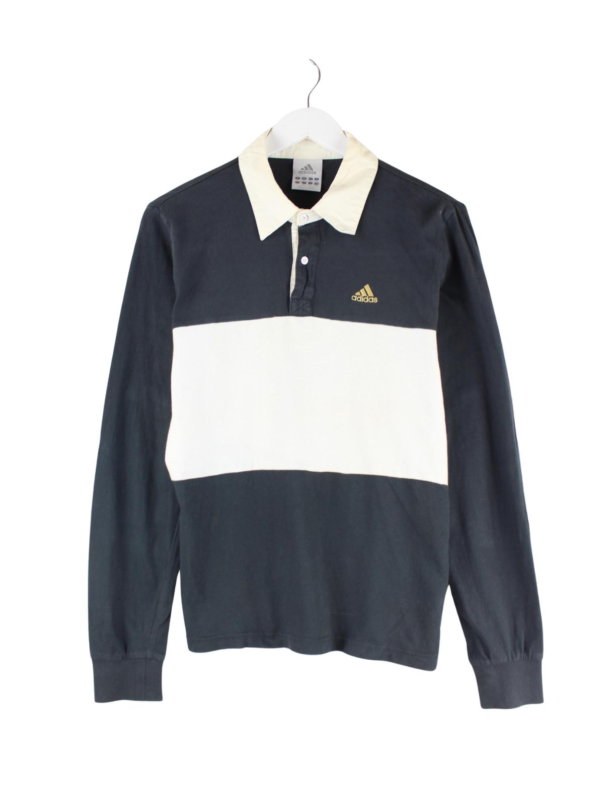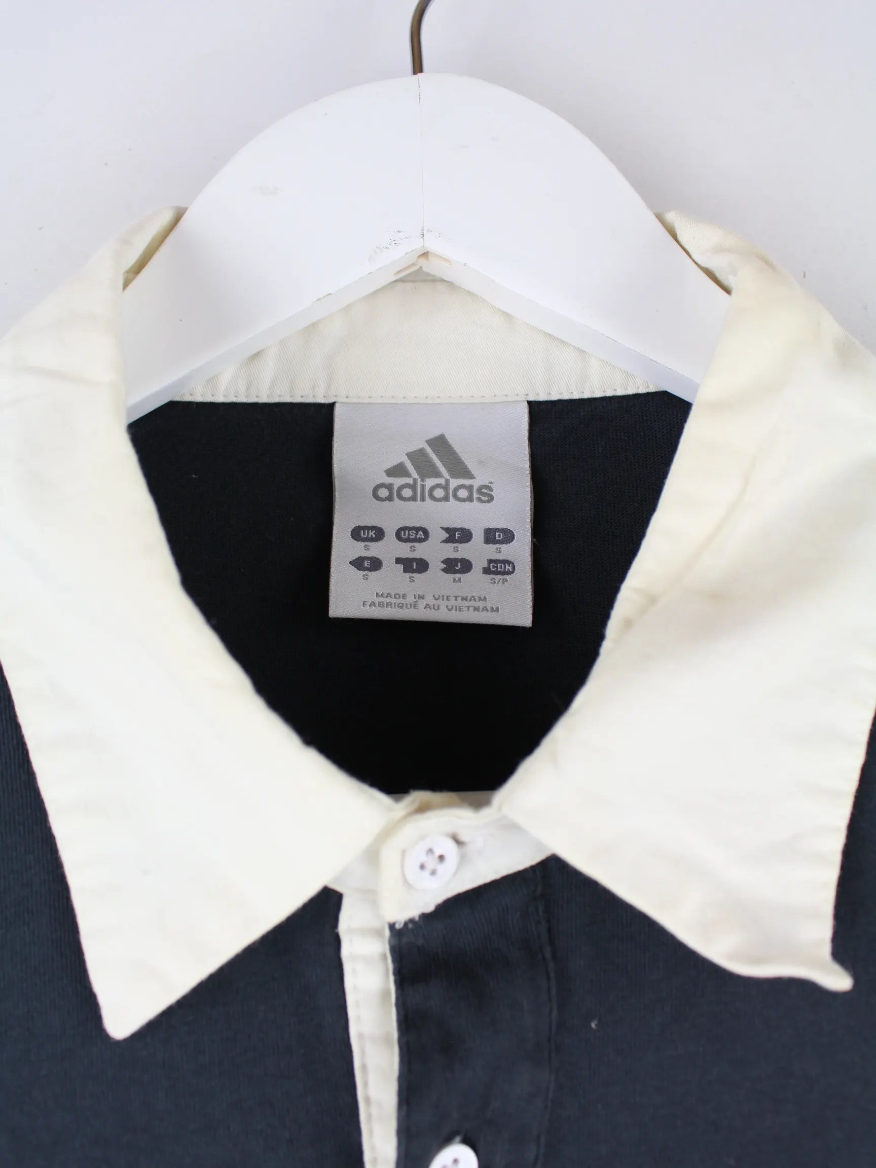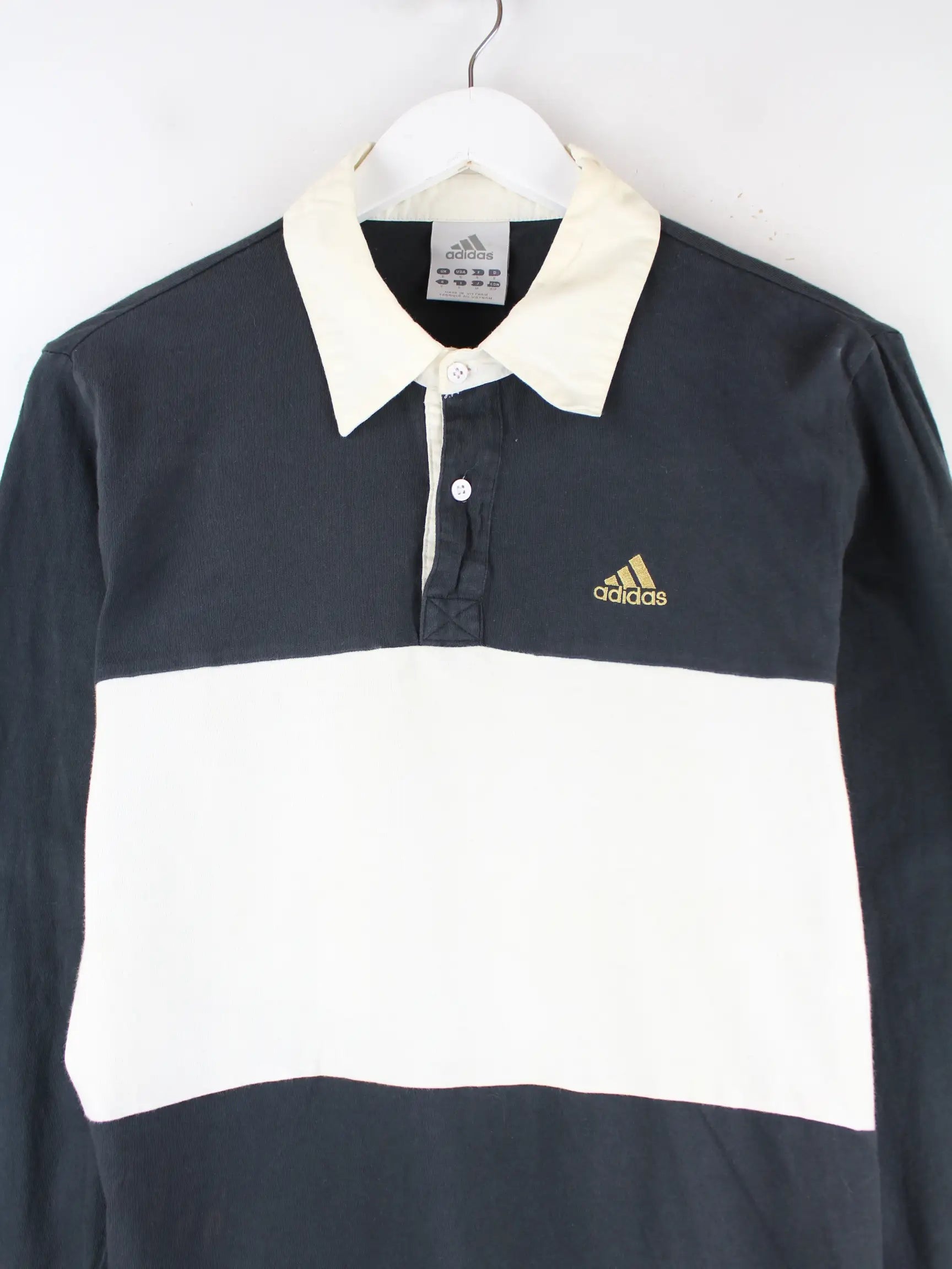 Poloshirt des Labels Adidas in Größe S. Es ist aus Baumwolle und in Schwarz vorrätig.