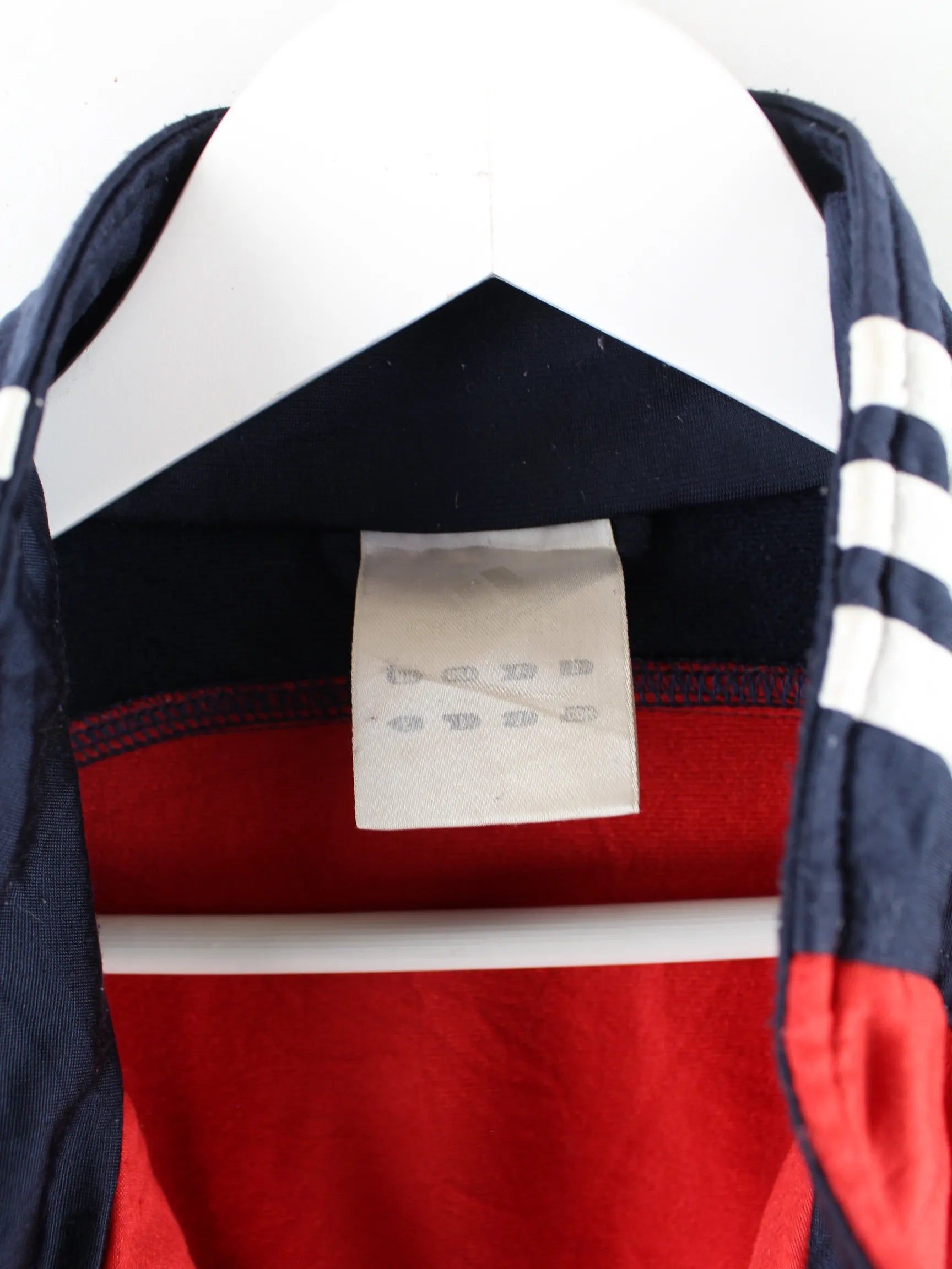 Rote Trainingsjacke mit Stick vom Brand Adidas in Größe XXL. Sie ist aus Synthetik gemacht und in sehr gutem Zustand im Bestand.