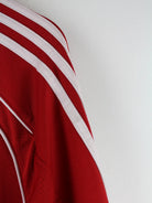 Trainingsjacke des Labels Adidas mit half Zip in Größe L. Sie ist aus Synthetik gemacht und in Rot bei uns zu bekommen.
