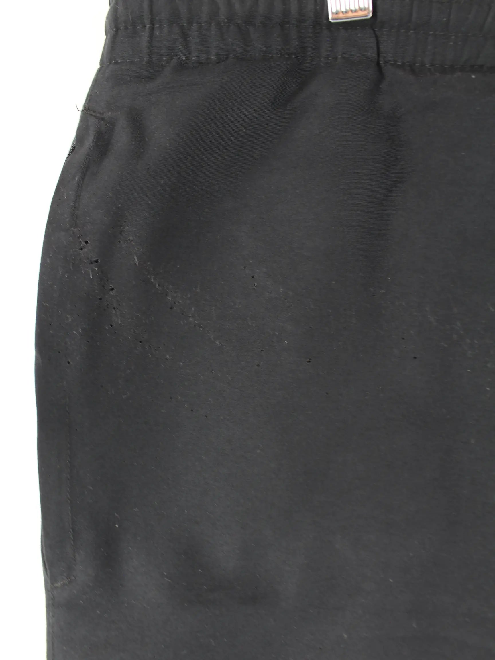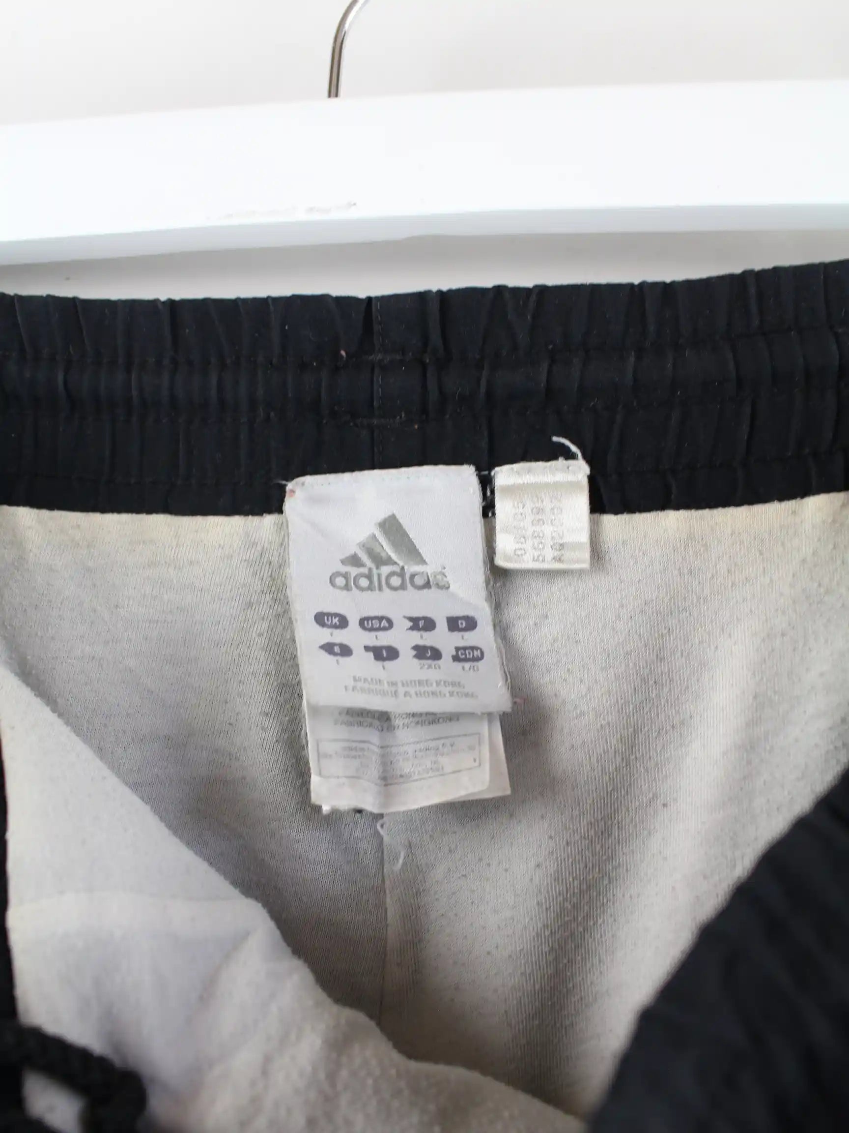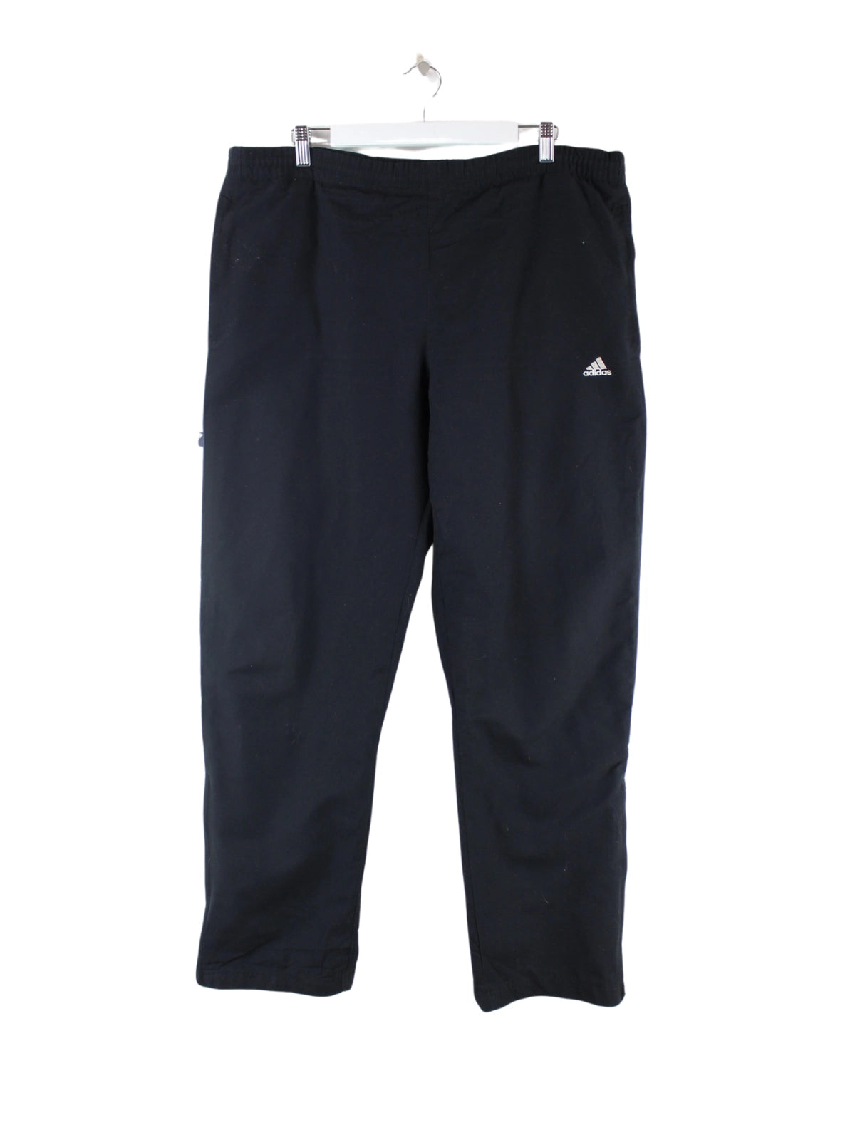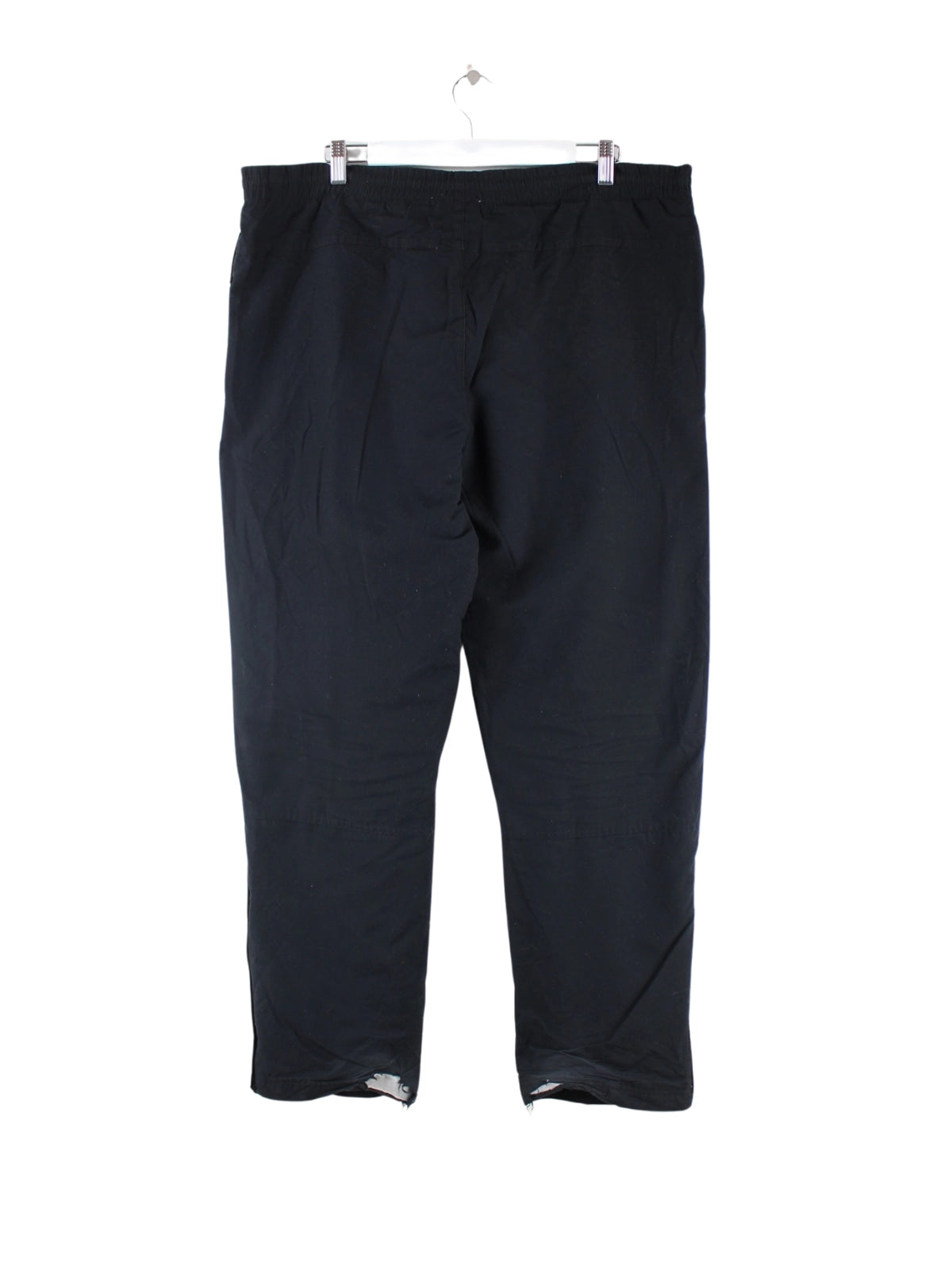 Schwarze Track Pants aus dem Hause Adidas in Größe XL. Sie sind aus Synthetik hergestellt. Den Zustand würden wir als 'In Ordnung' bezeichnen (vergl. Bilder).