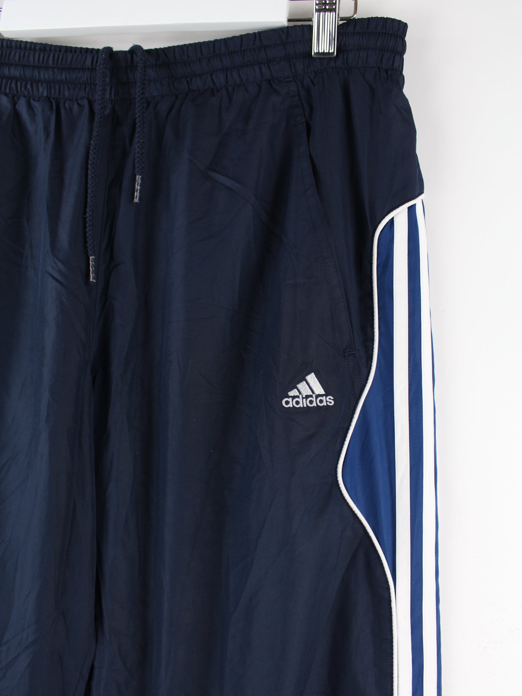 Blaue Track Pants aus dem Hause Adidas in Größe L. Sie sind aus Synthetik gemacht und in gutem Zustand im Bestand.