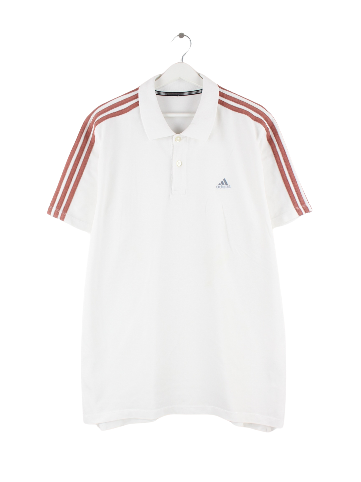 Weißes Poloshirt aus dem Hause Adidas in Größe XXL. Es ist aus Baumwolle gefertigt und in sehr gutem Zustand bei uns zu bekommen.