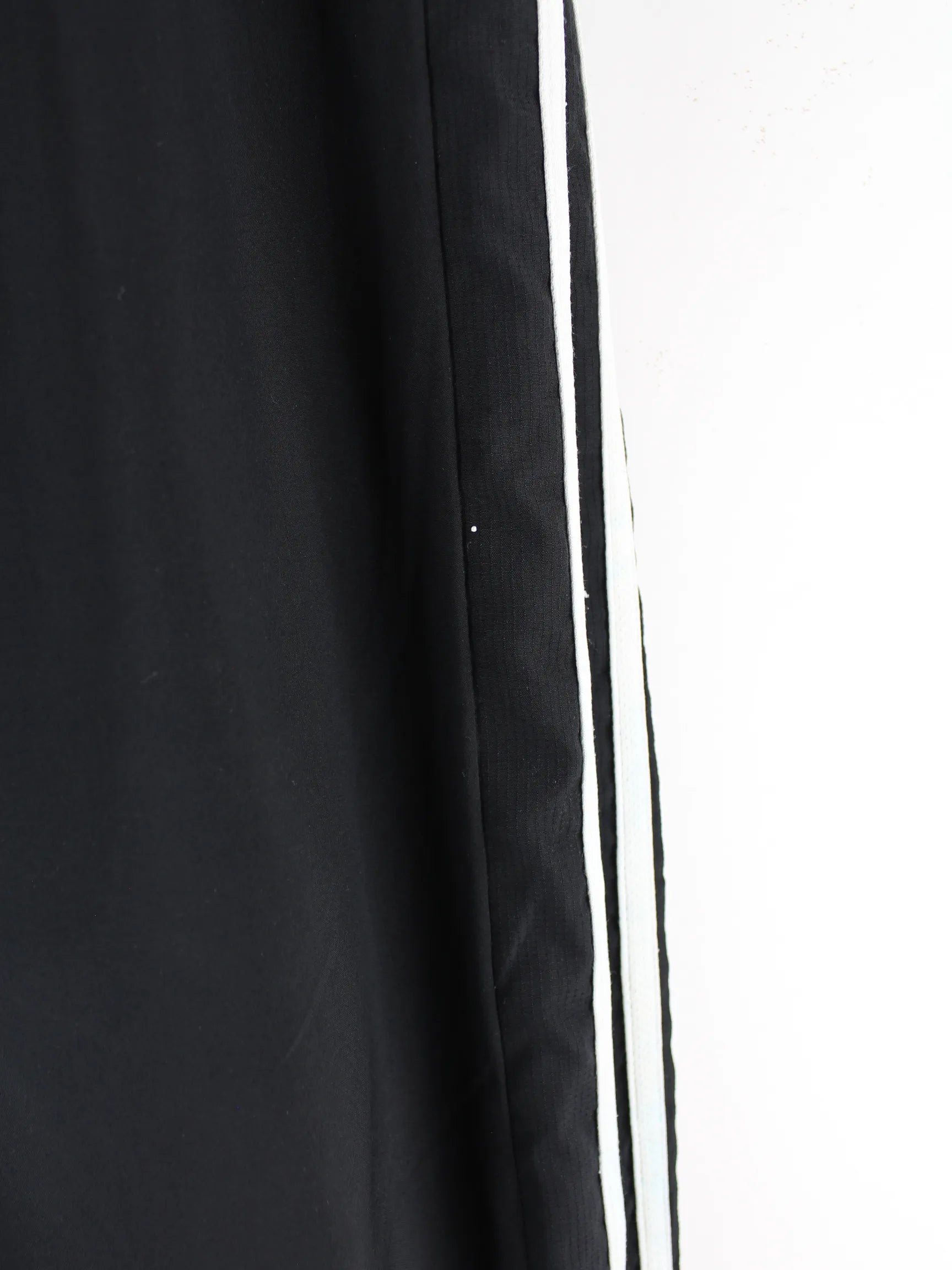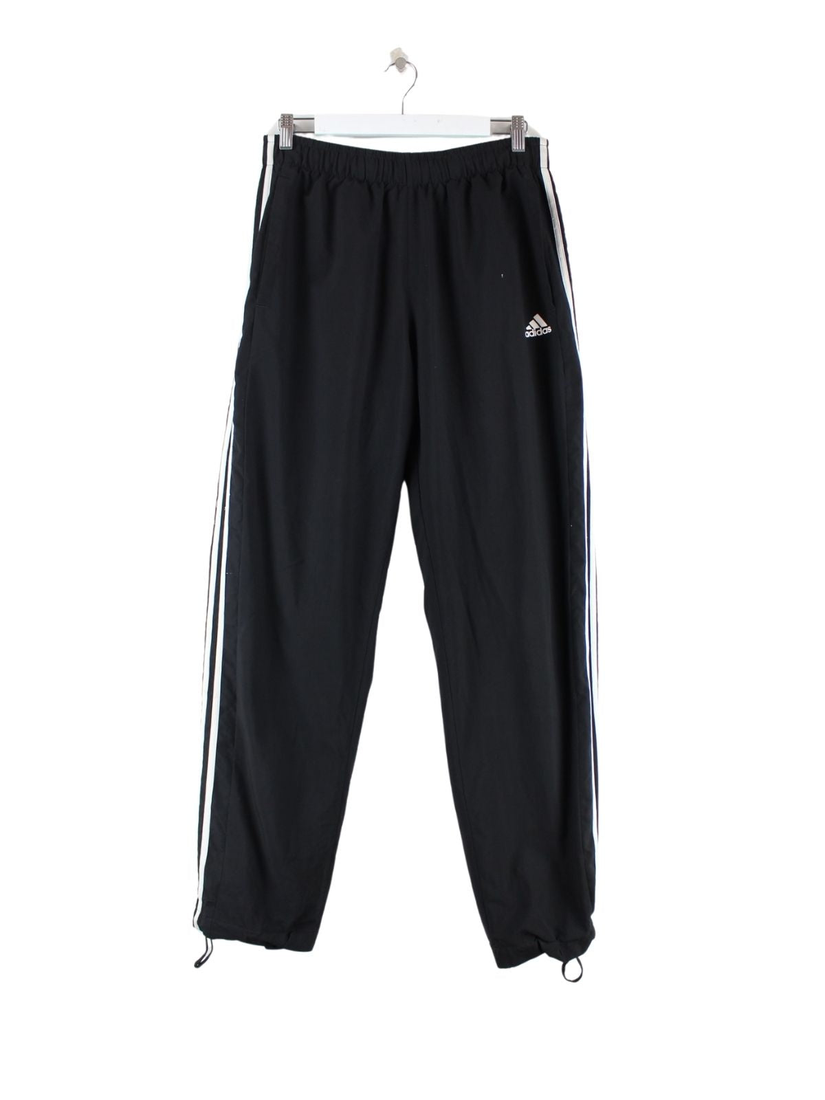 Schwarze Track Pants vom Label Adidas in Größe L. Sie sind aus Synthetik produziert und in gutem Zustand bei uns vorrätig.
