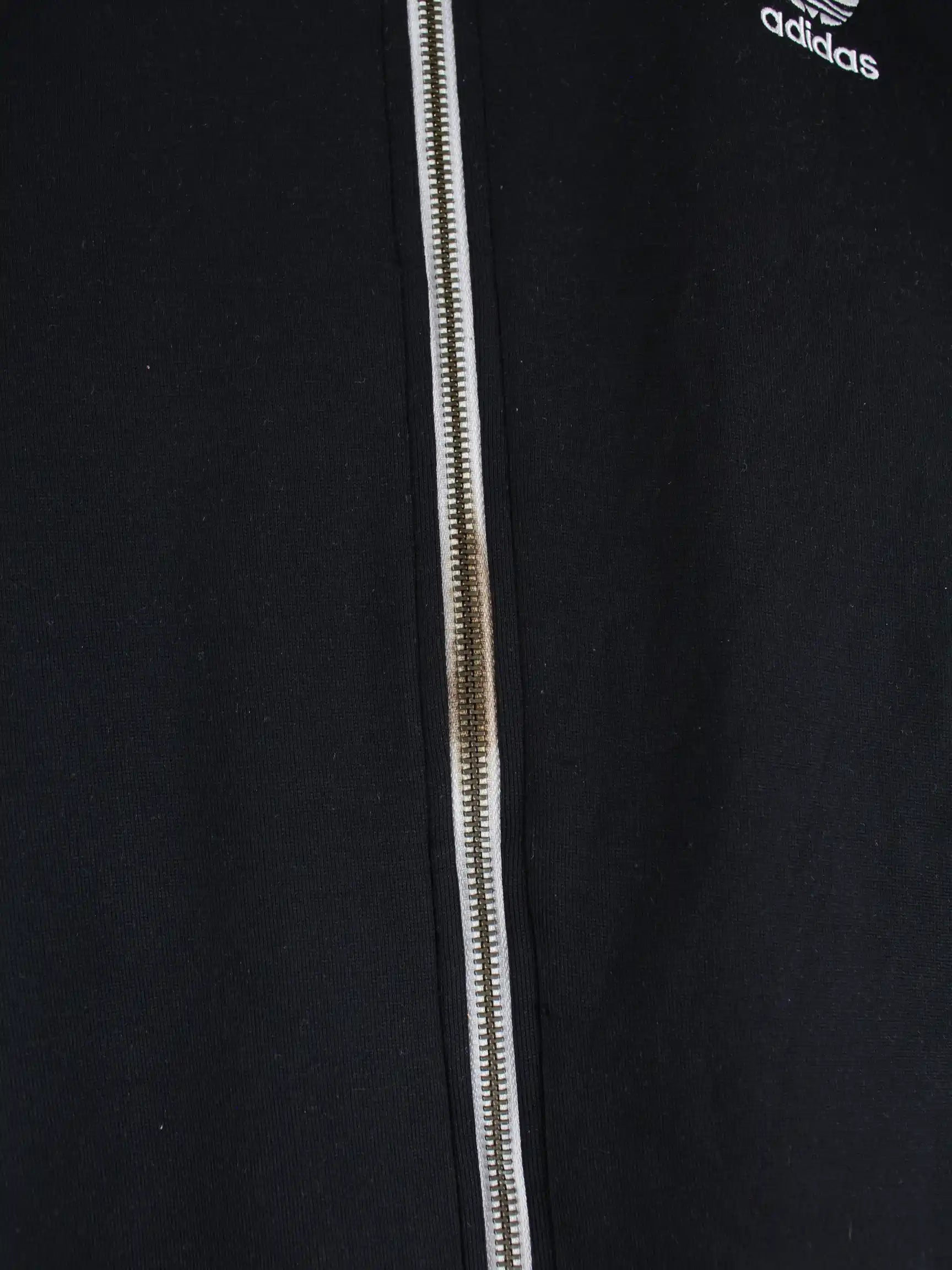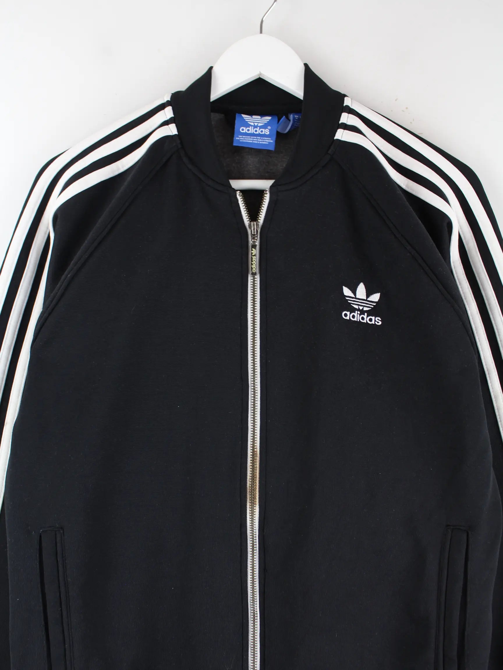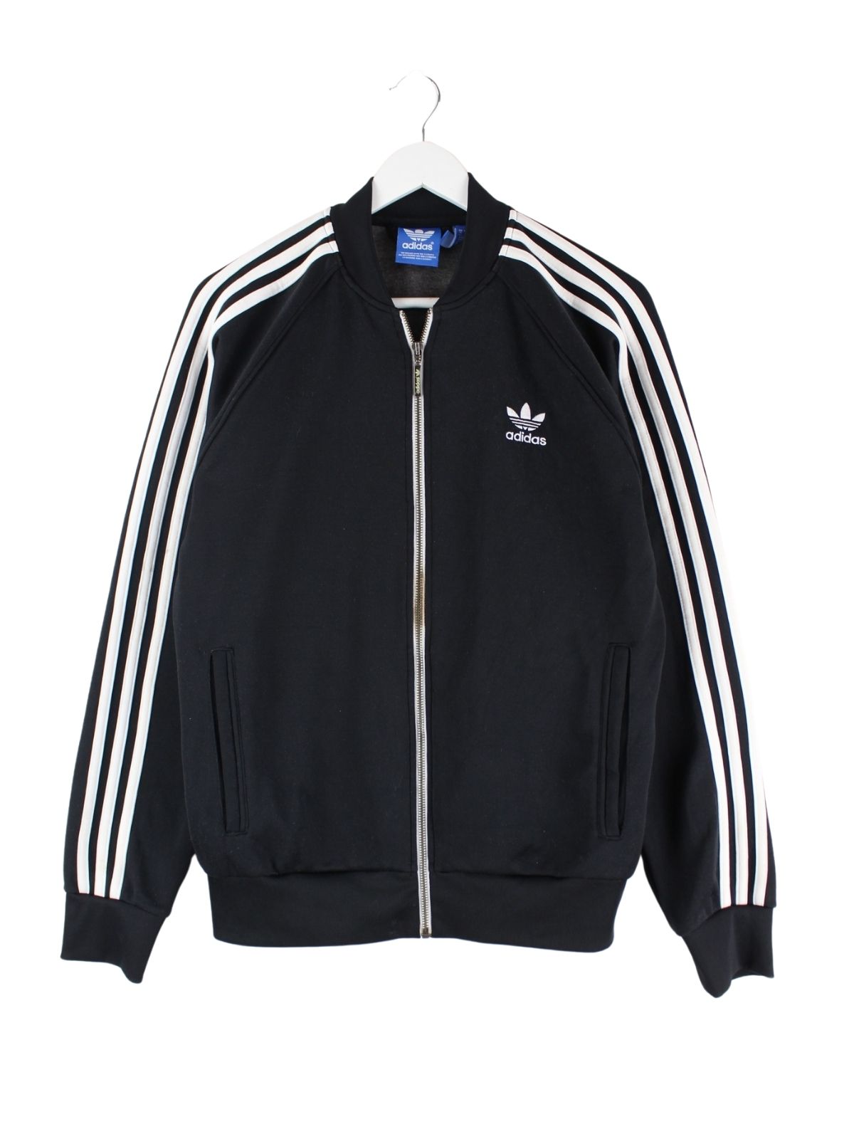 Schwarze Trainingsjacke der Brand Adidas in Größe M. Sie ist aus Synthetik produziert und in gutem Zustand im Angebot.