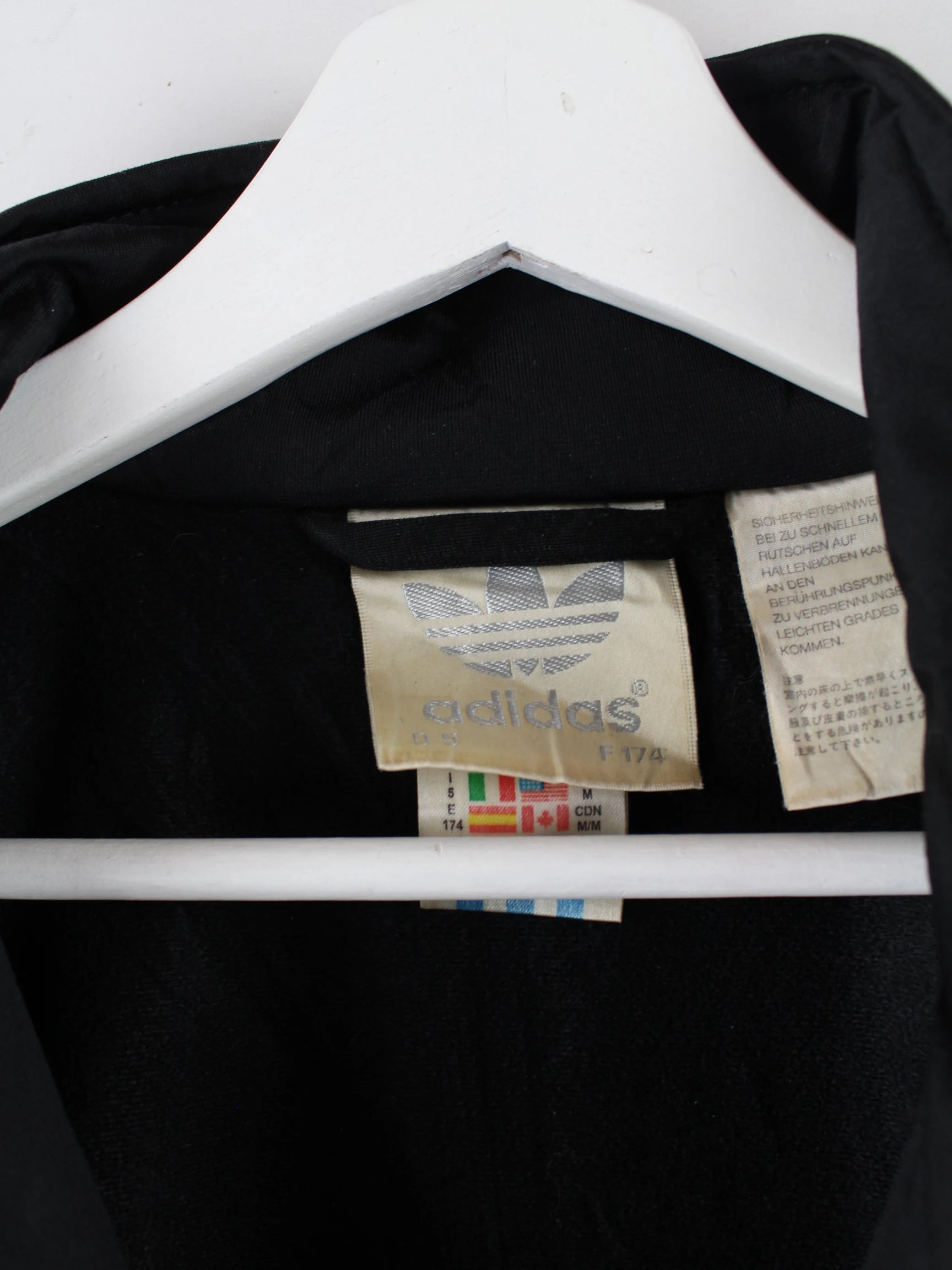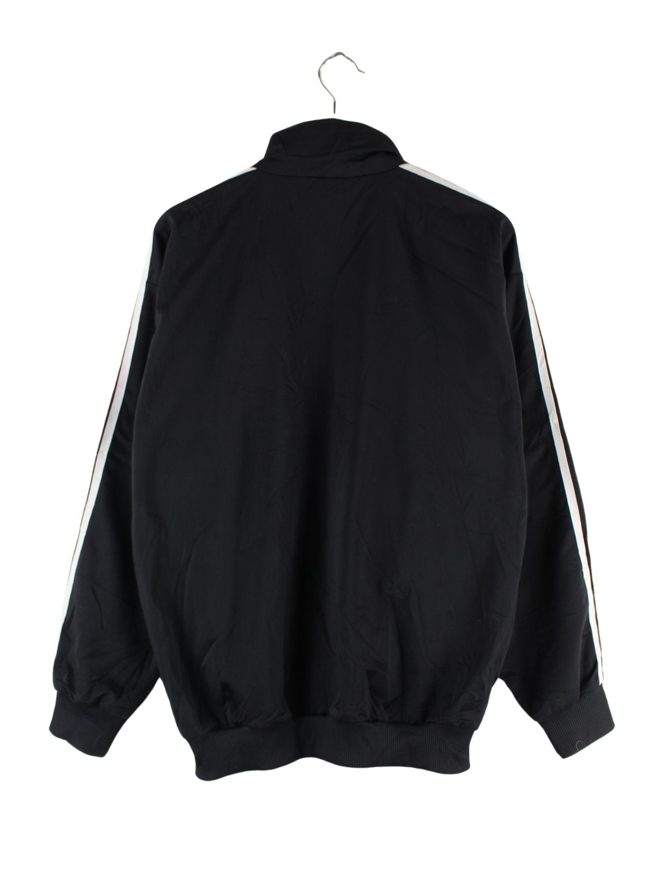 Trainingsjacke der Brand Adidas in Größe M aus den 80'ern. Sie ist aus Synthetik gemacht und in Schwarz vorrätig.