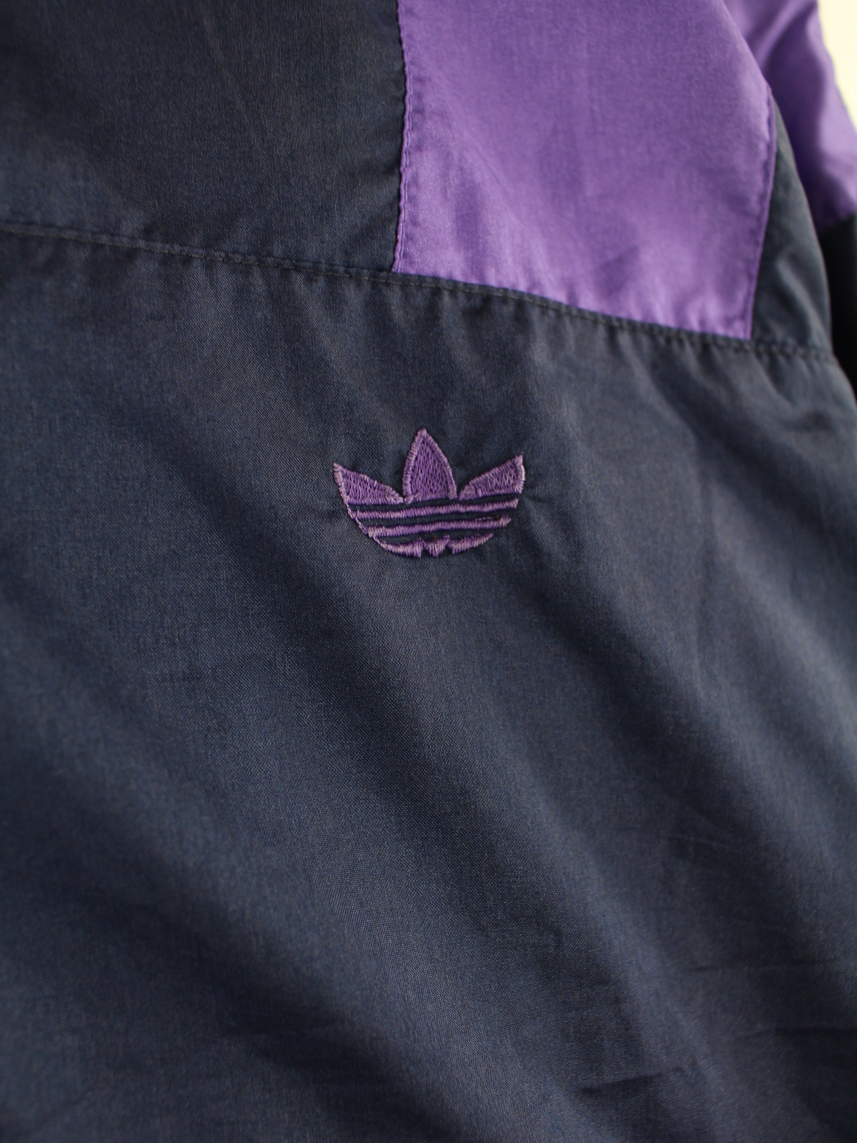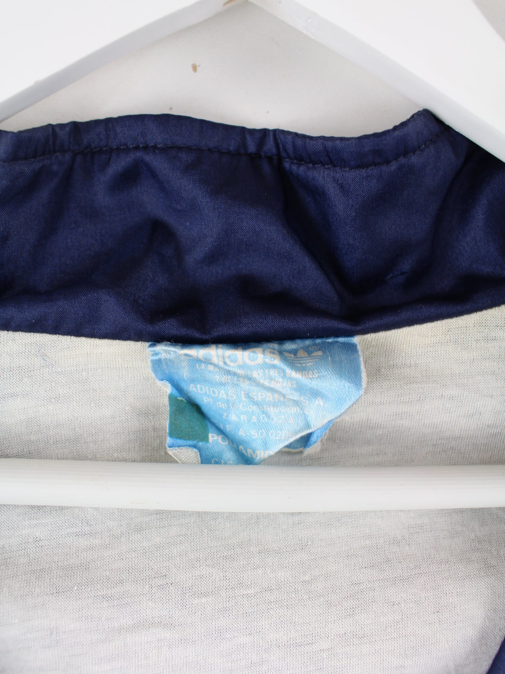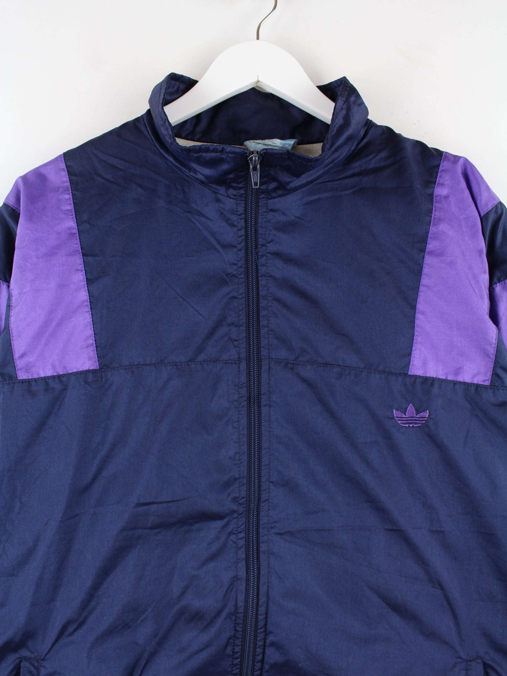 Trainingsjacke aus dem Hause Adidas in Größe M aus den 80'ern. Sie ist aus Synthetik hergestellt und in Blau bei uns vorrätig.