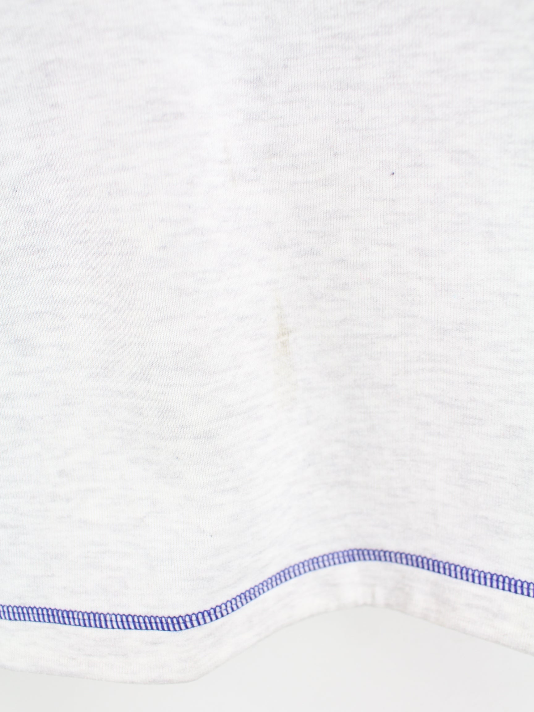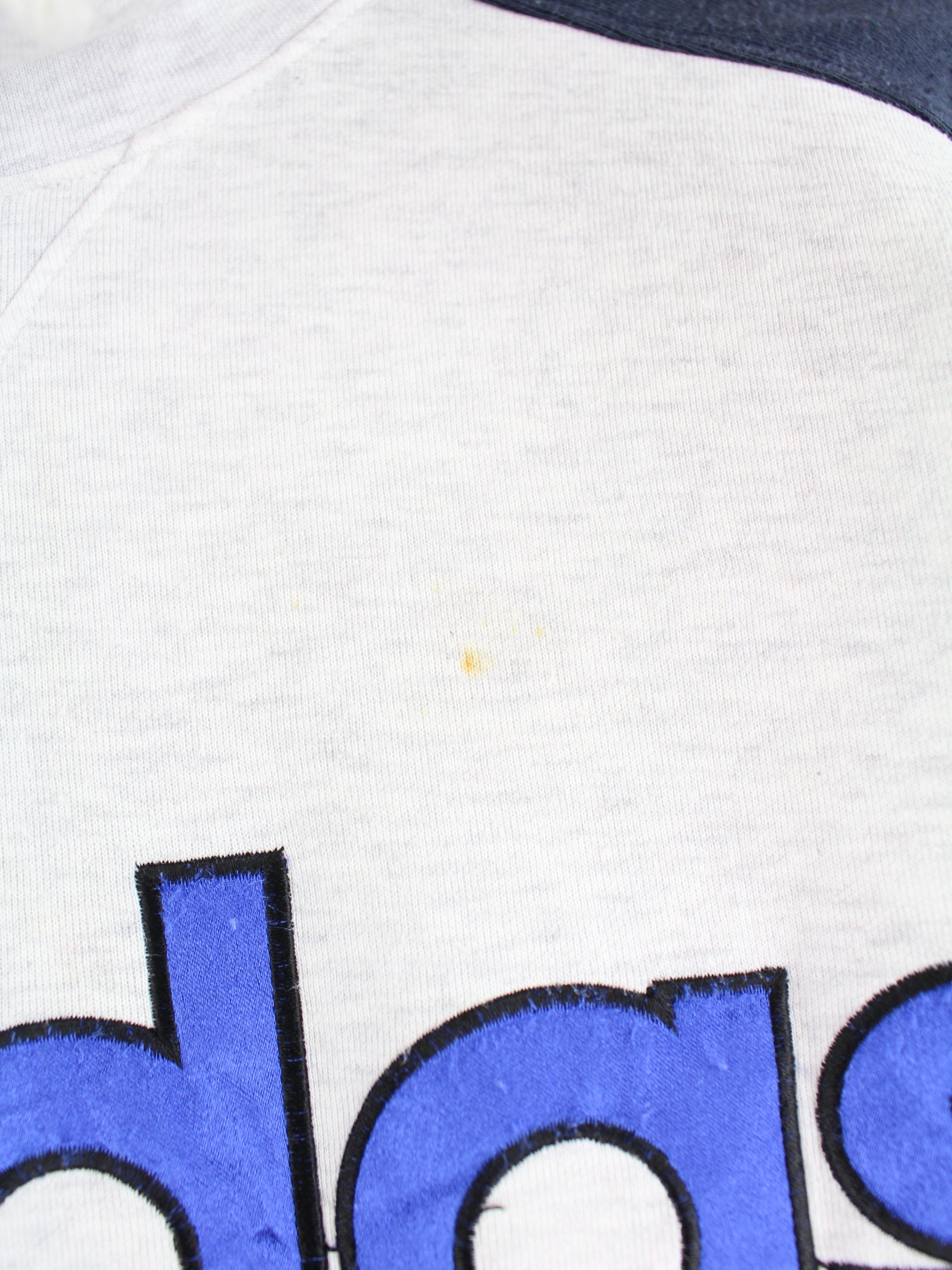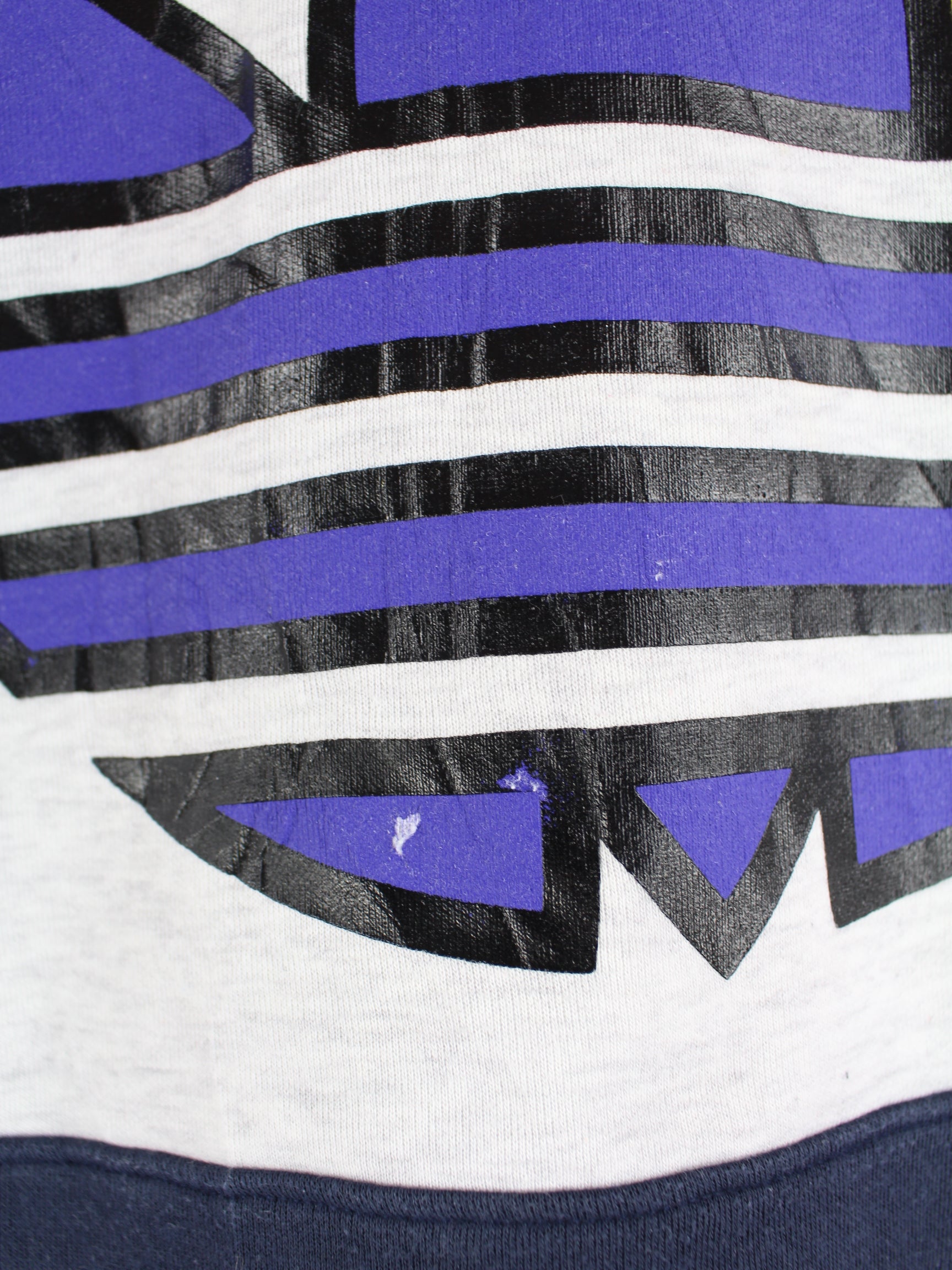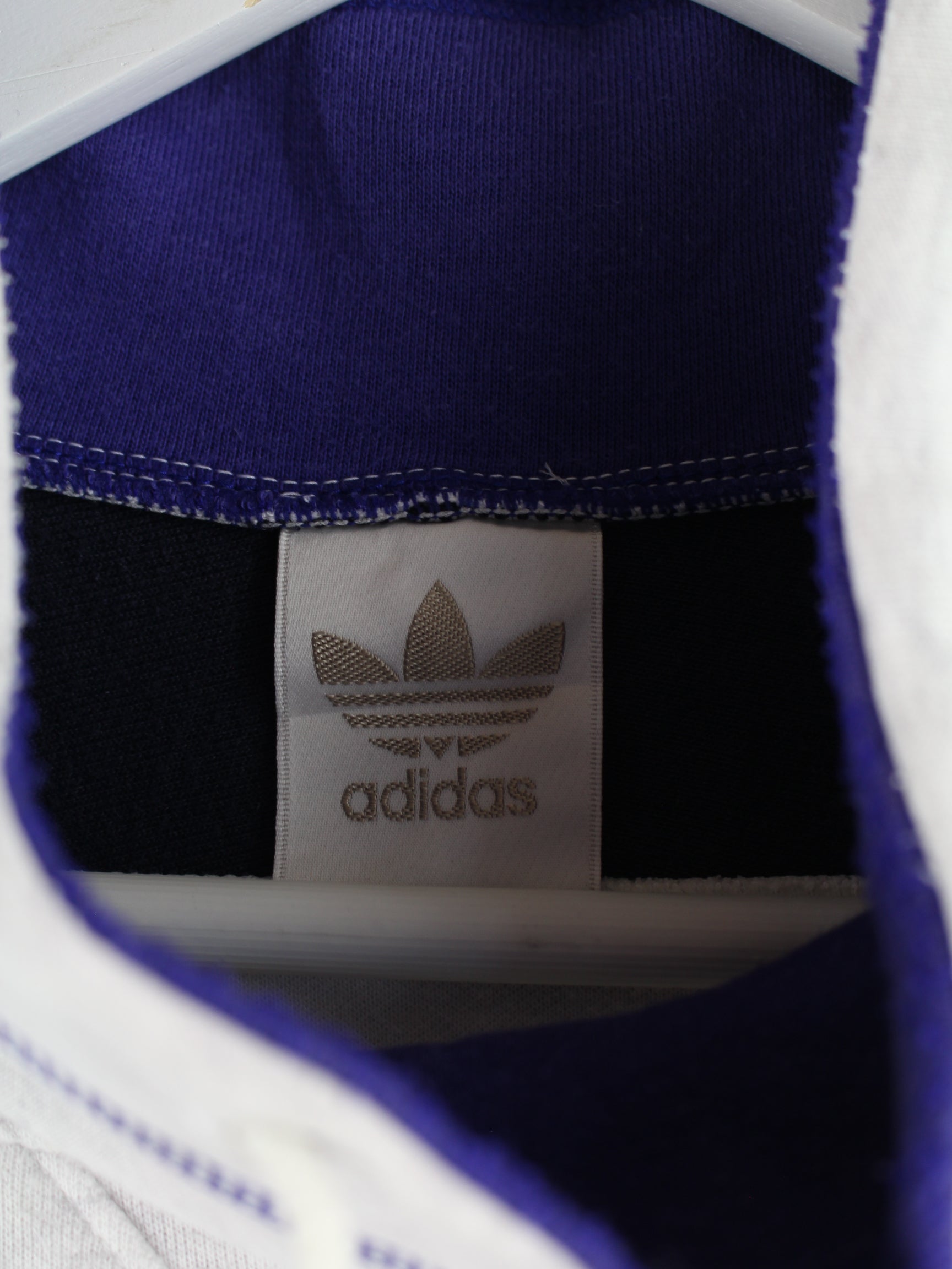 Grauer Sweater von Adidas aus den 90'ern in Größe L. Er ist aus einer Baumwollmischung gemacht. Den Zustand würden wir als 'In Ordnung' bezeichnen (vergl. Bilder).Mit schönem Trefoil Print.