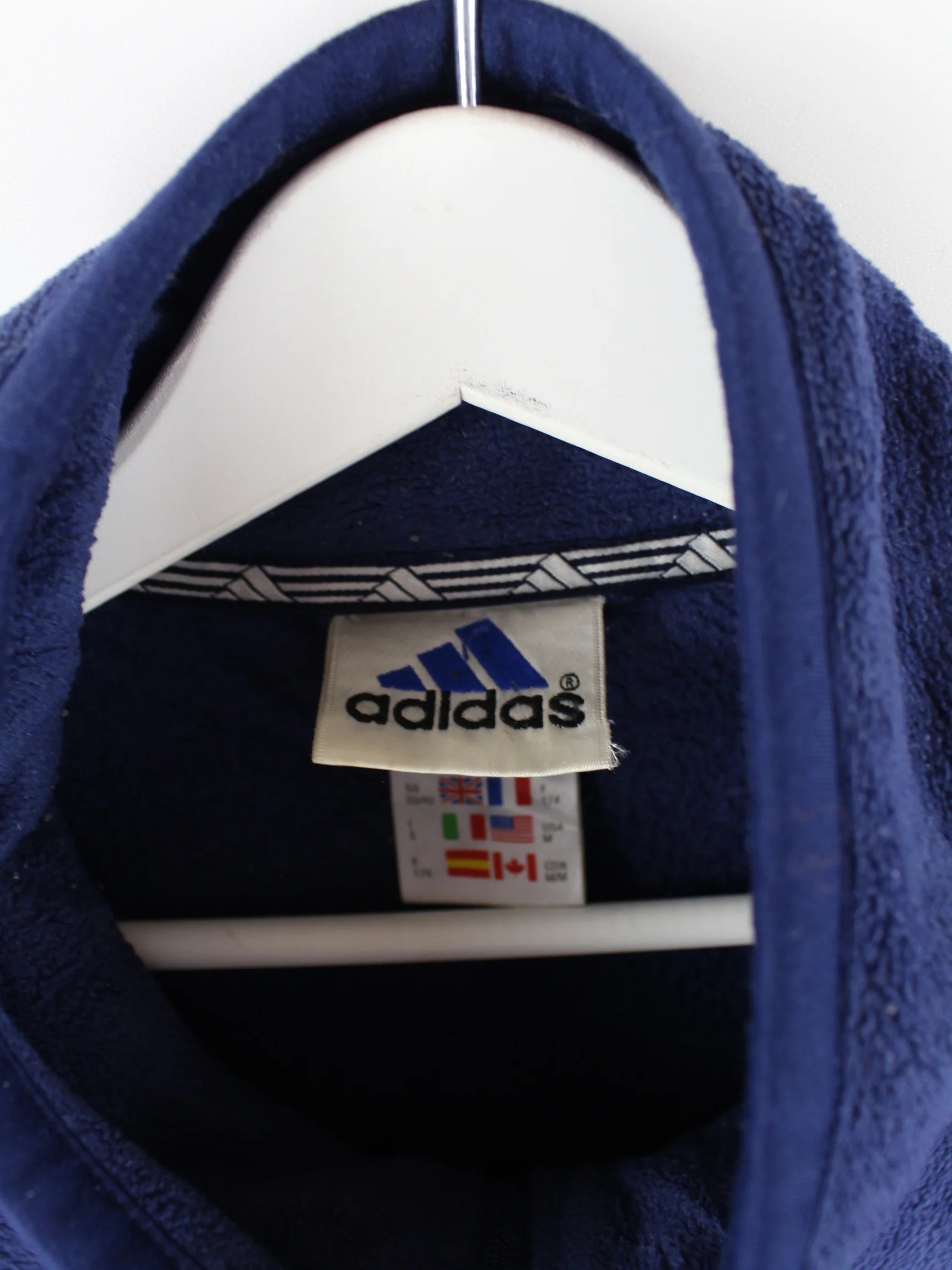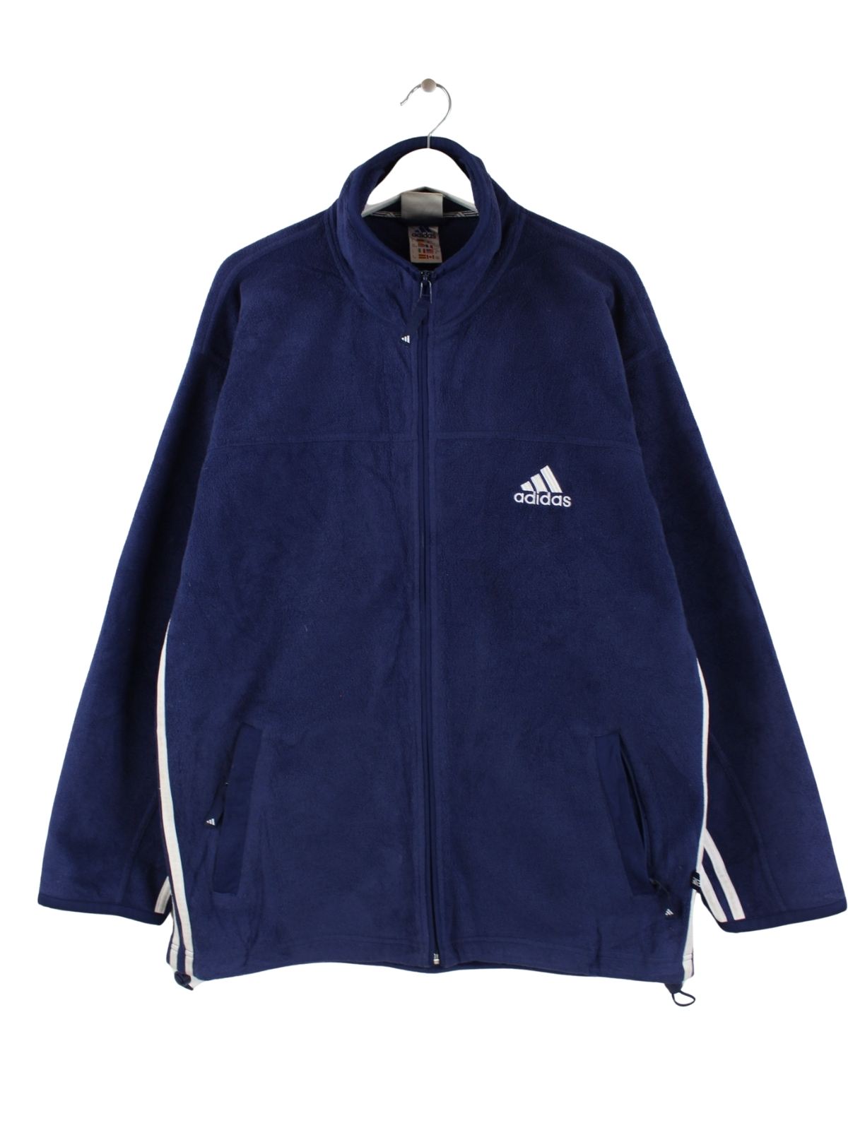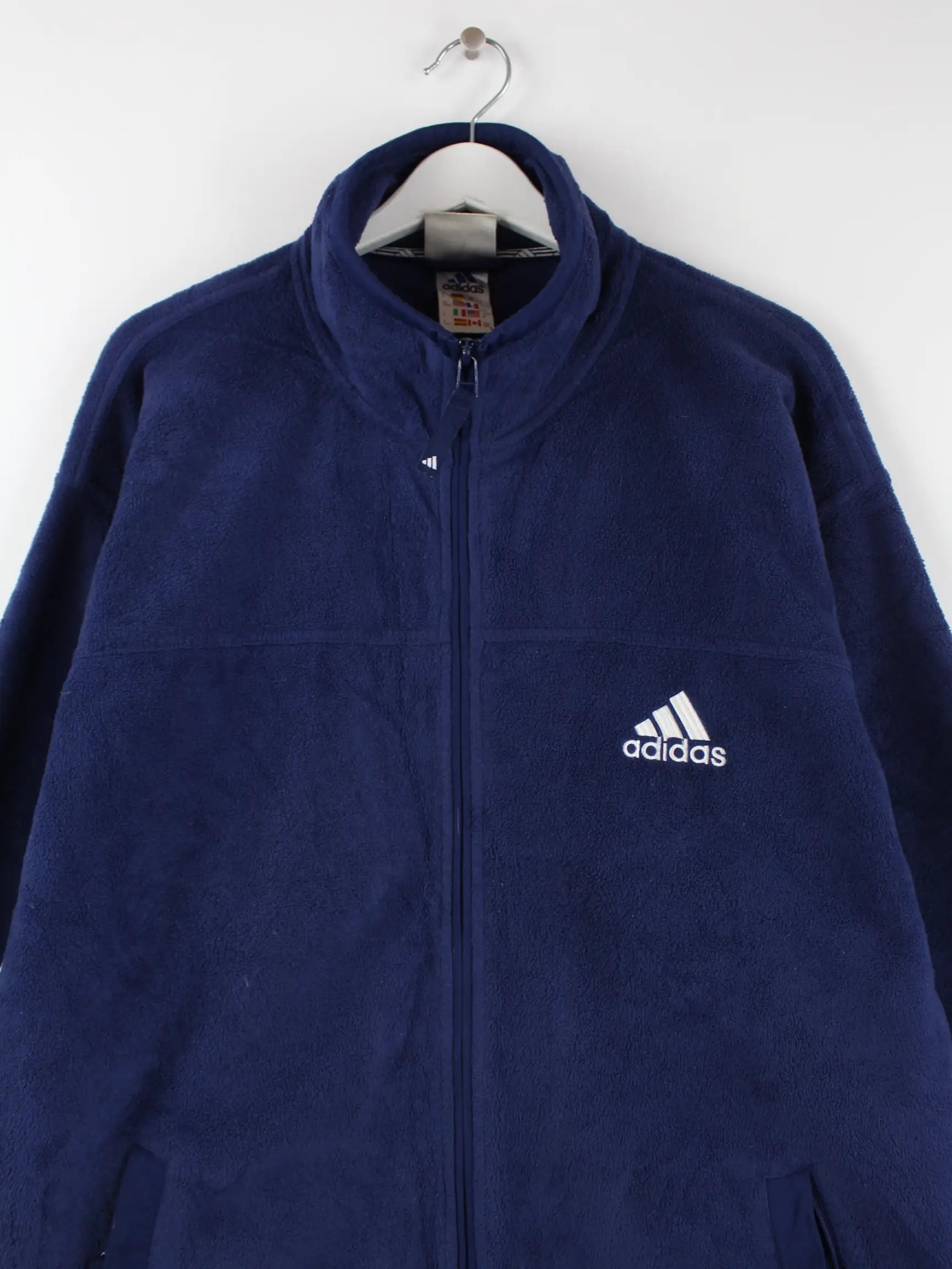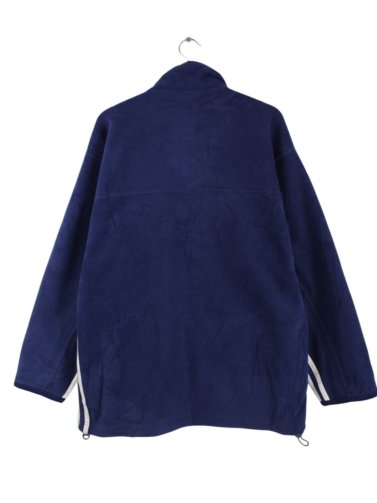 Blauer Sweater des Labels Adidas aus den 90'ern in Größe L. Er ist aus kuscheligem Fleece angefertigt und in sehr gutem Zustand vorrätig.