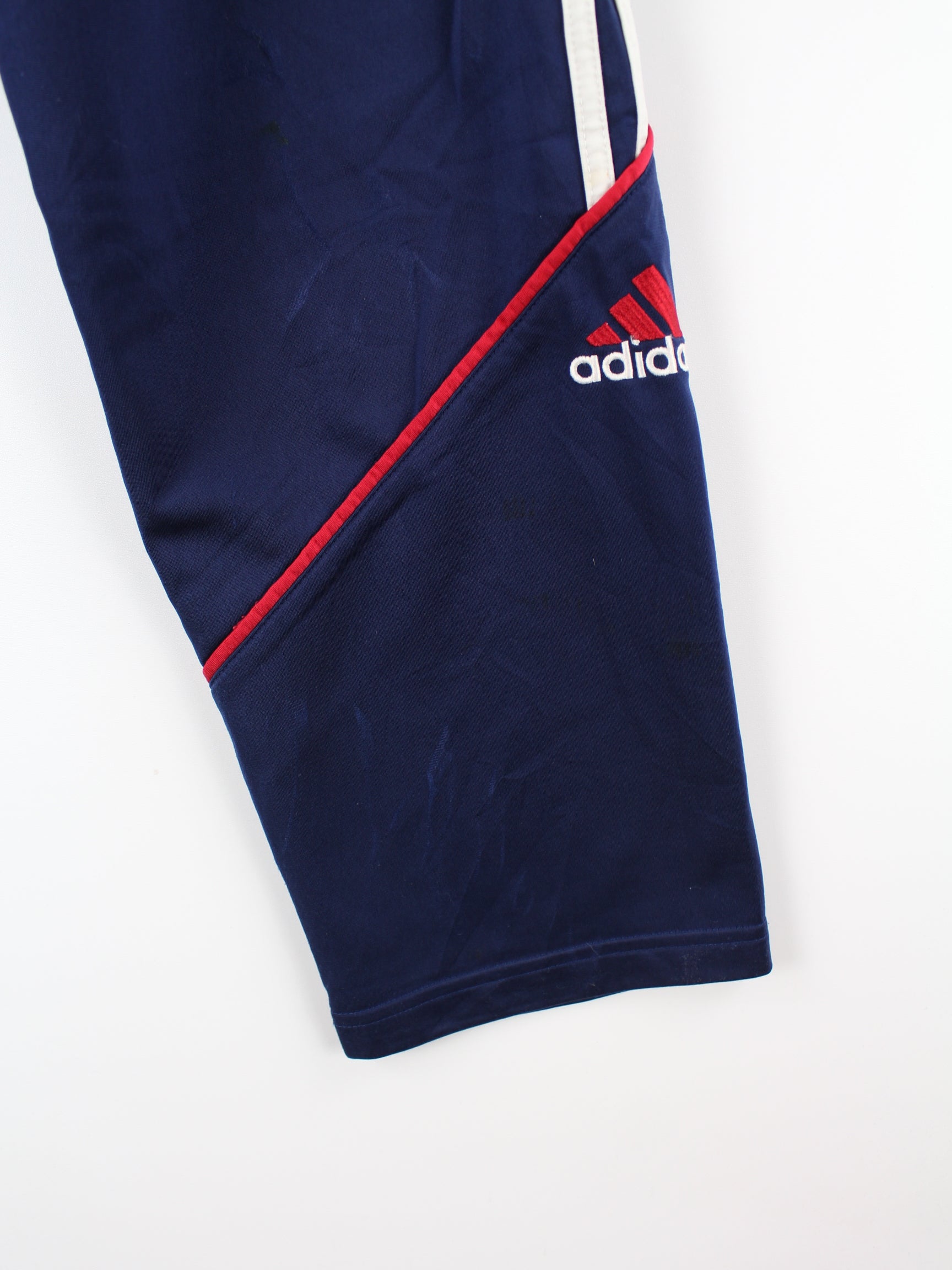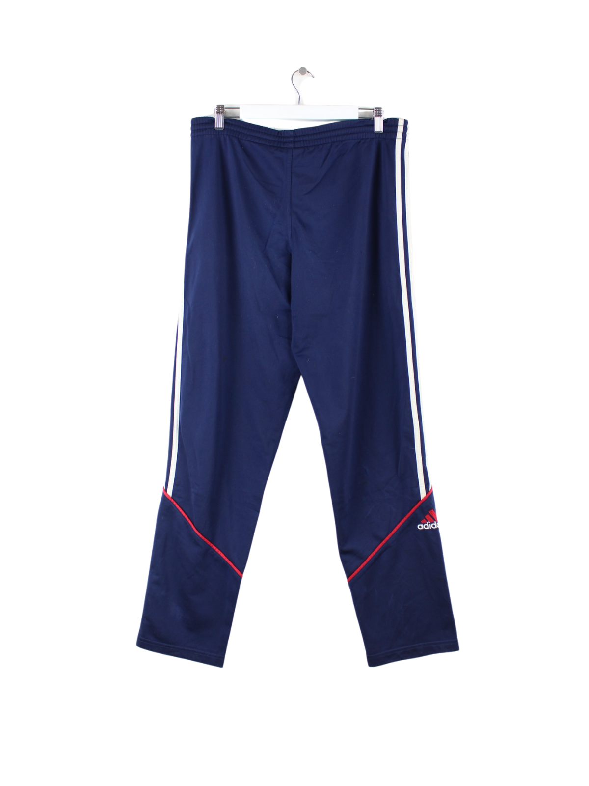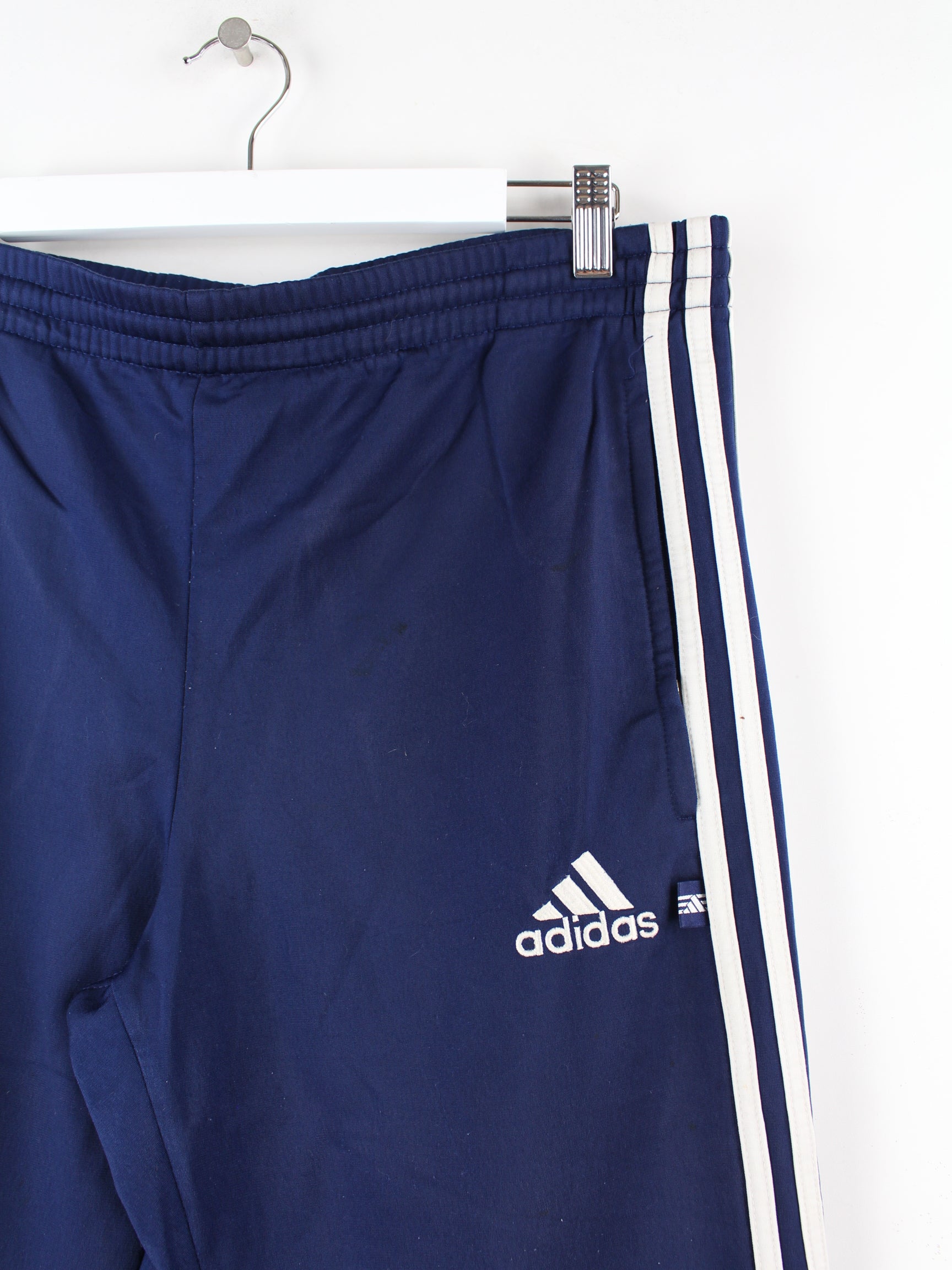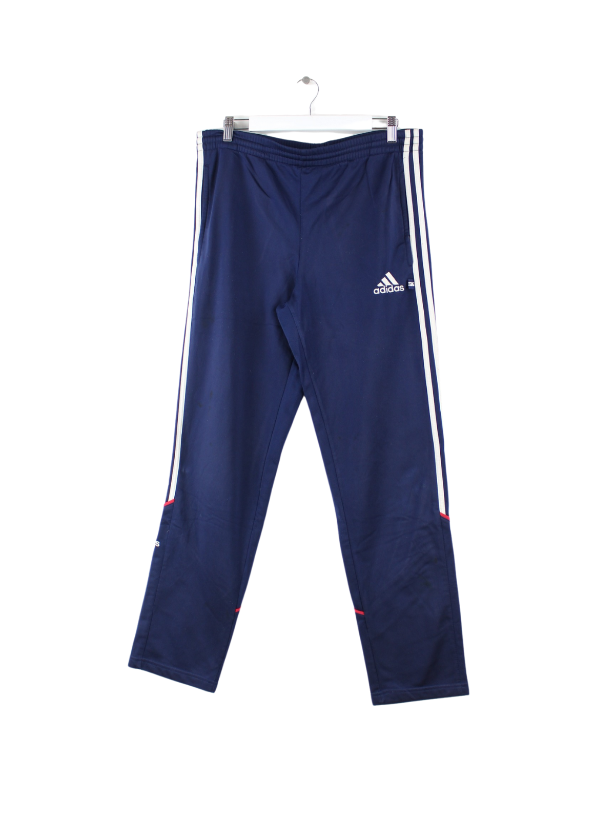 Blaue Track Pants der Marke Adidas aus den 90'ern in Größe L. Sie sind aus Synthetik produziert und in gutem Zustand im Angebot.