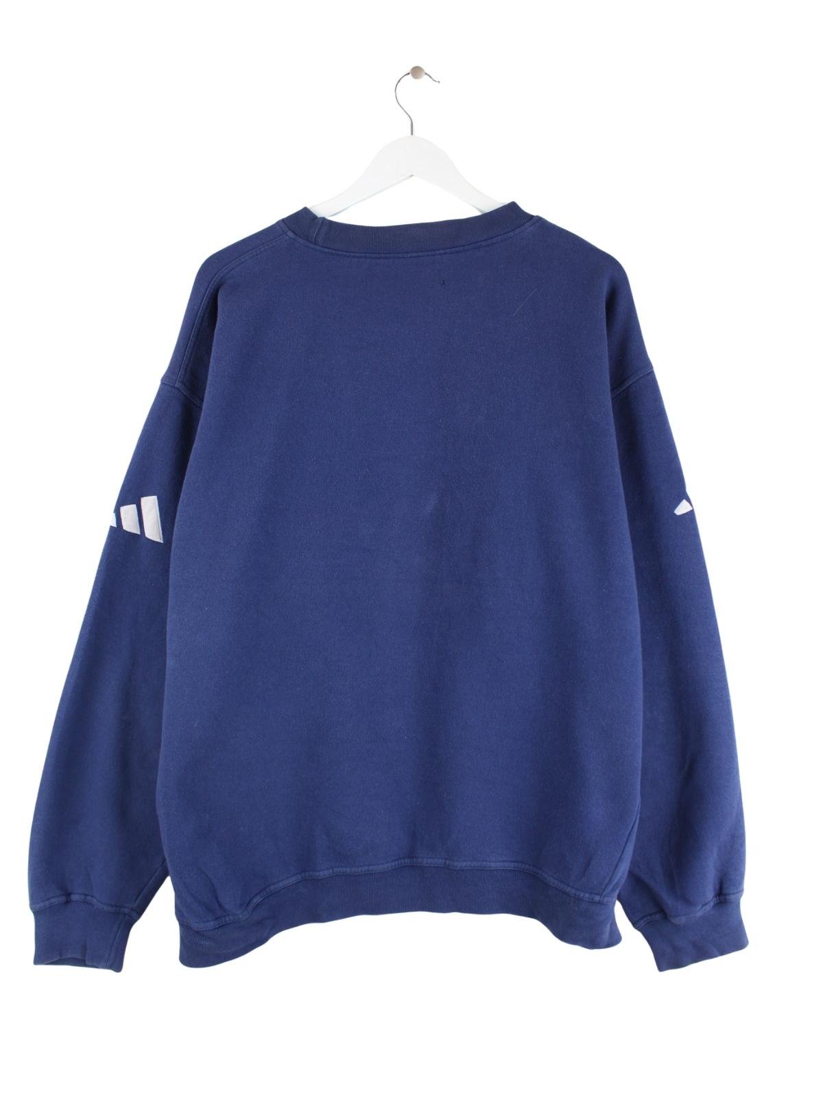 Sweater vom Label Adidas in Größe XXL aus den 90'ern. Er ist aus Baumwolle produziert und in Blau auf Lager.