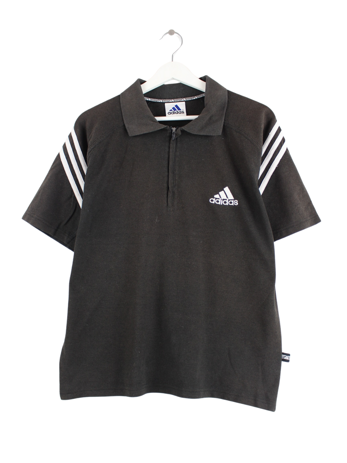 Adidas 90s Vintage Faded Embroidered Half Zip Polo Schwarz M