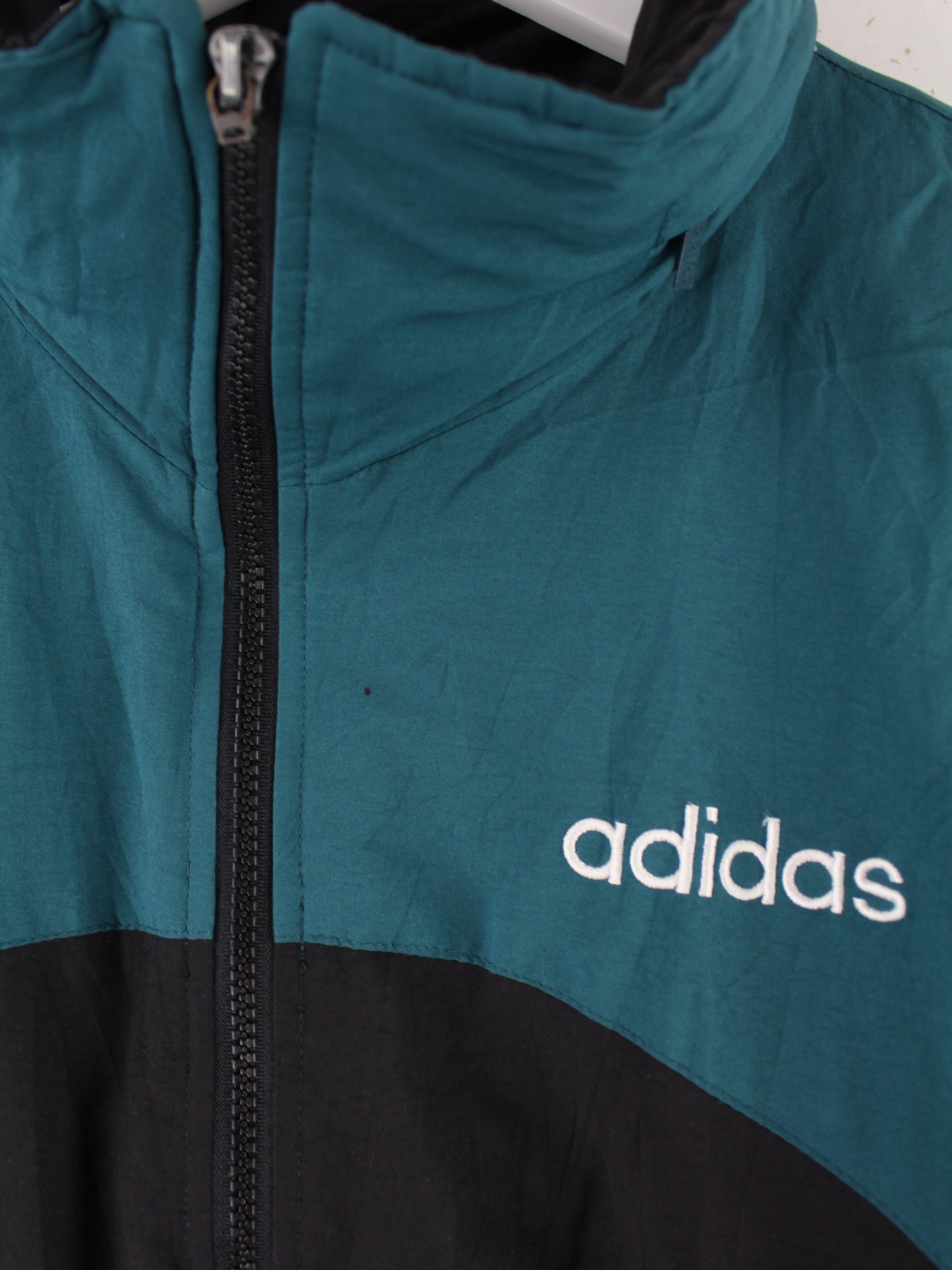 Jacke der Brand Adidas in Größe XL aus den 90'ern. Sie ist aus Synthetik hergestellt und in Schwarz lieferbar.