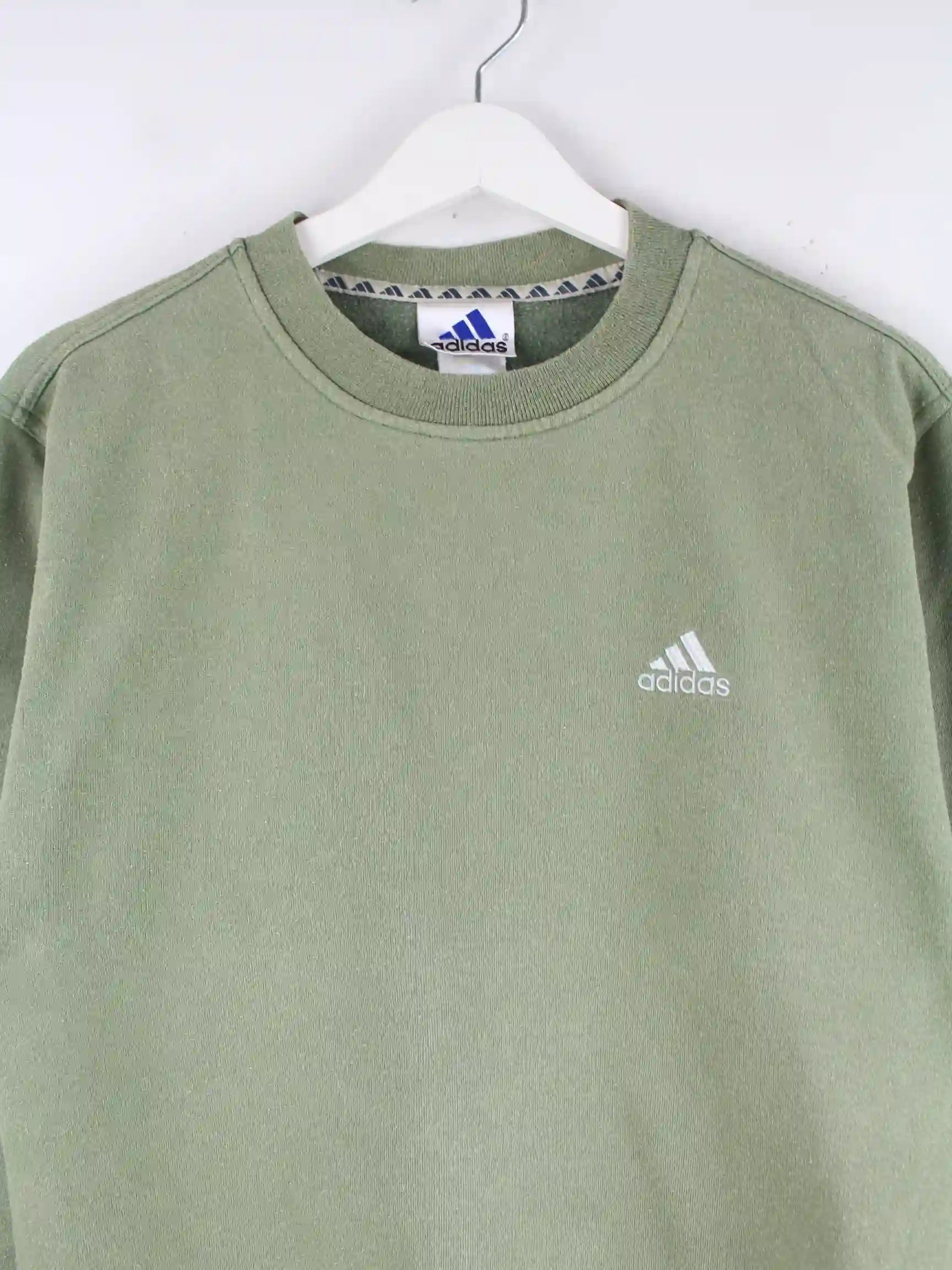 Sweater vom Label Adidas in Größe XS aus den 90'ern. Er ist aus einer Baumwollmischung hergestellt und in Grün bei uns vorrätig.