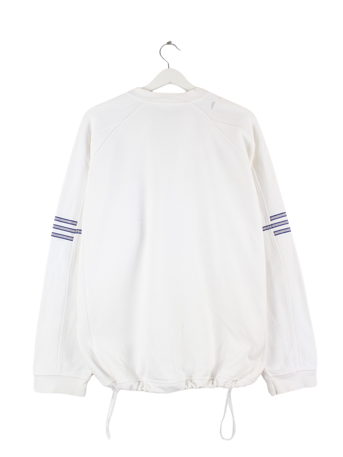 Sweater vom Brand Adidas in Größe L aus den 90'ern. Er ist aus einer Baumwollmischung gemacht und in Weiß bei uns zu bekommen.