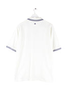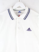 Poloshirt der Brand Adidas in Größe M aus den 90'ern. Es ist aus Baumwolle und in Weiß lieferbar.