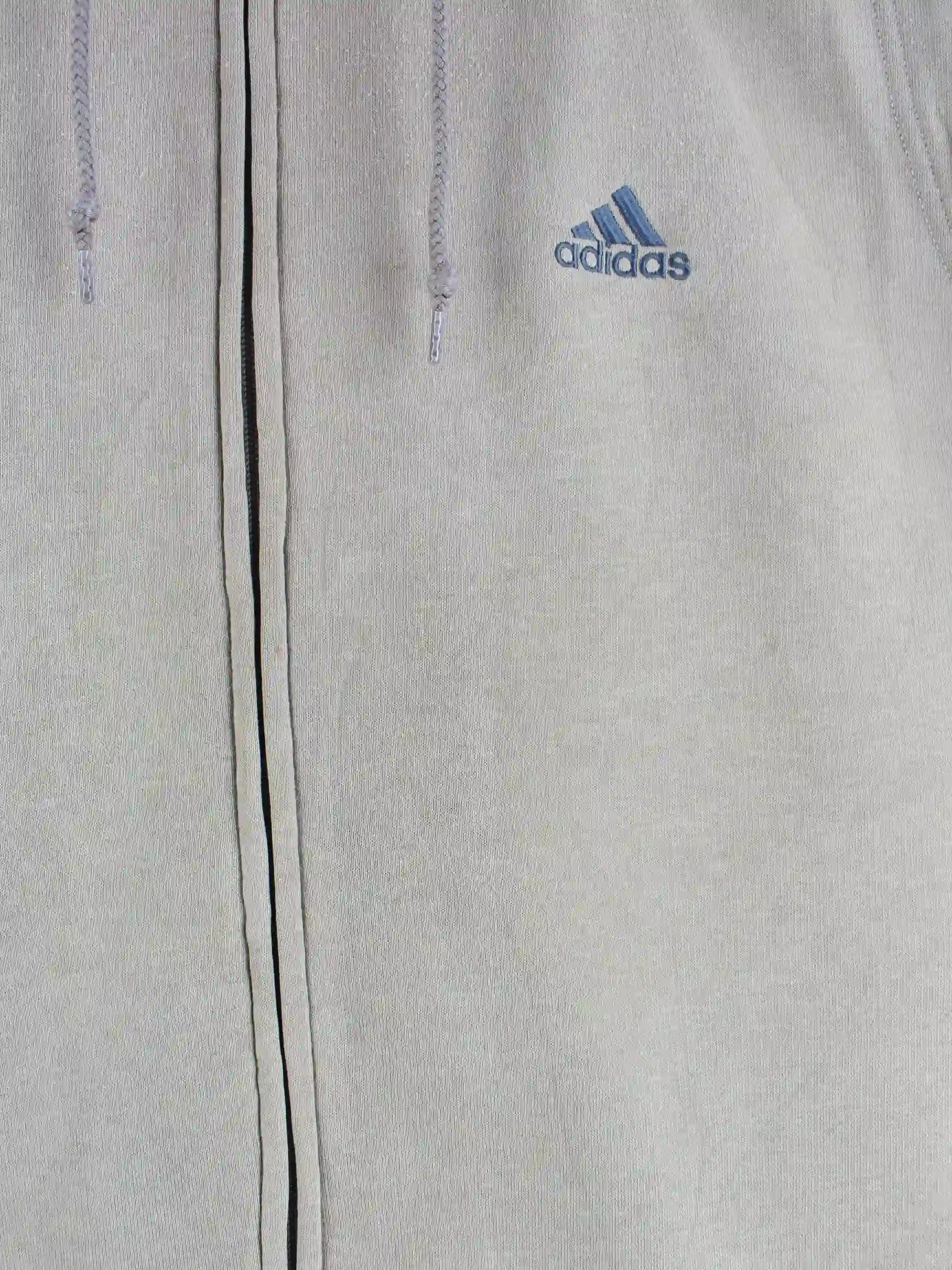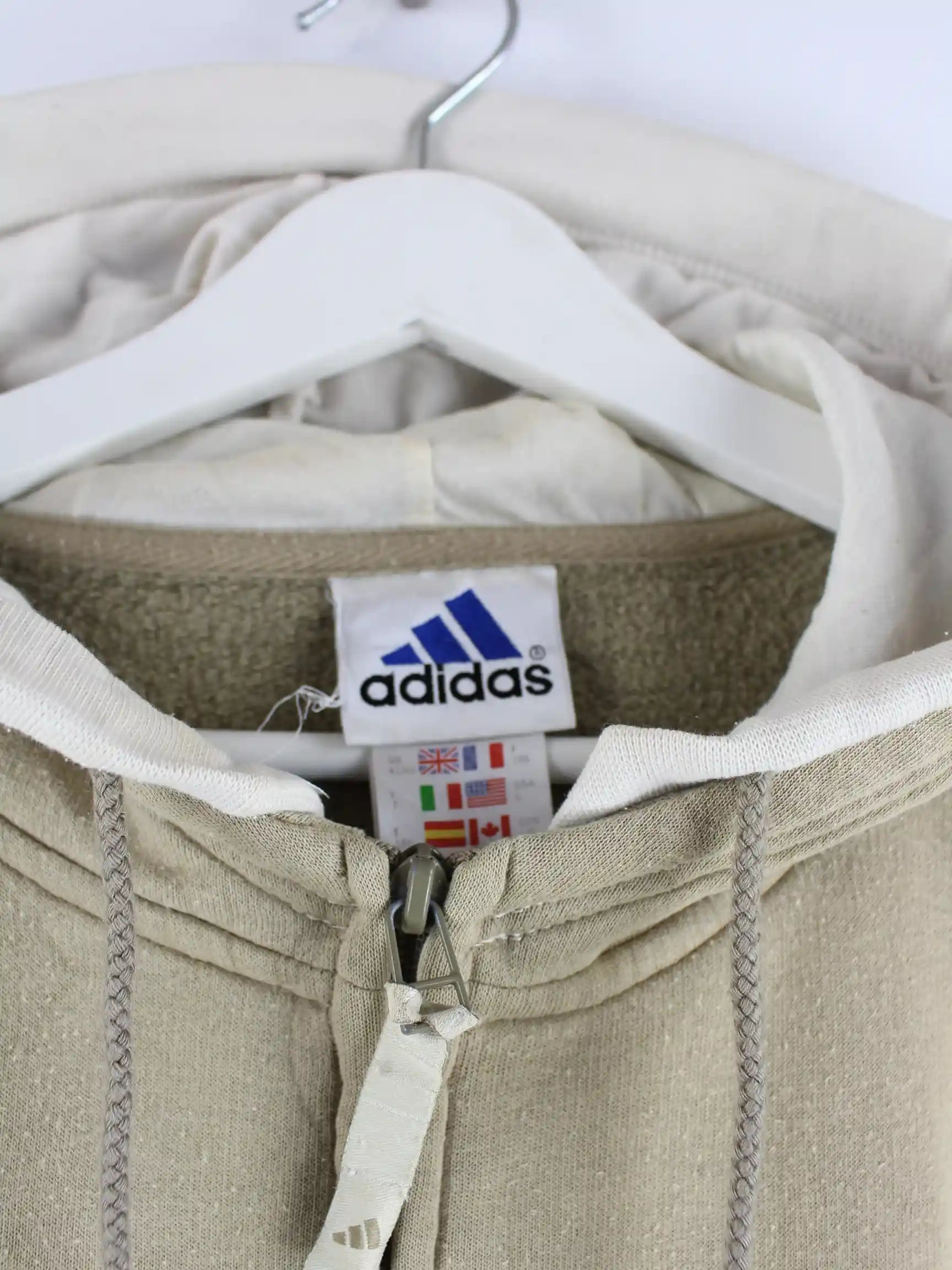 Hoodie der Brand Adidas mit Zip in Größe XXL aus den 90'ern. Er ist aus einer Baumwollmischung produziert und in Braun im Bestand.