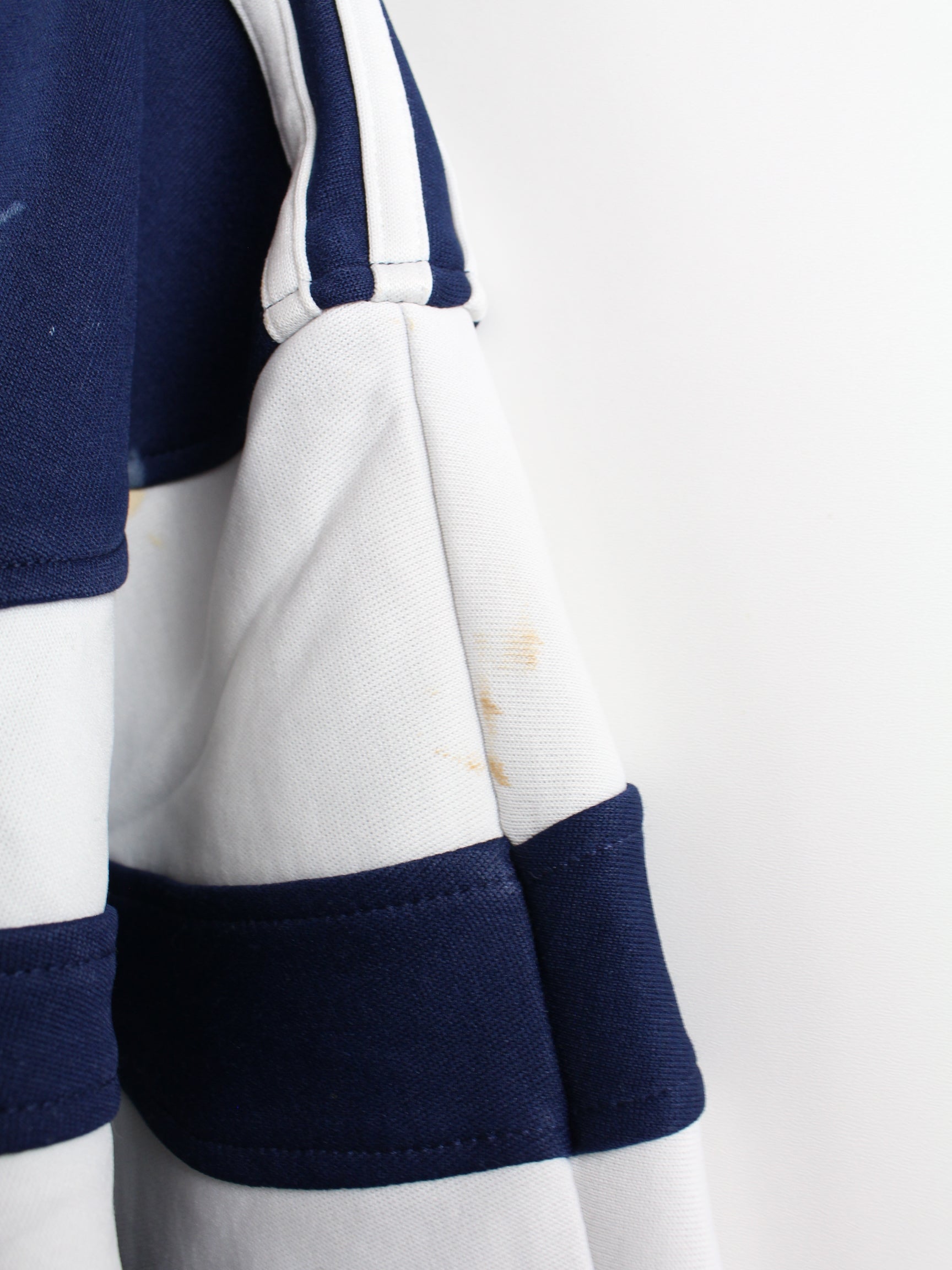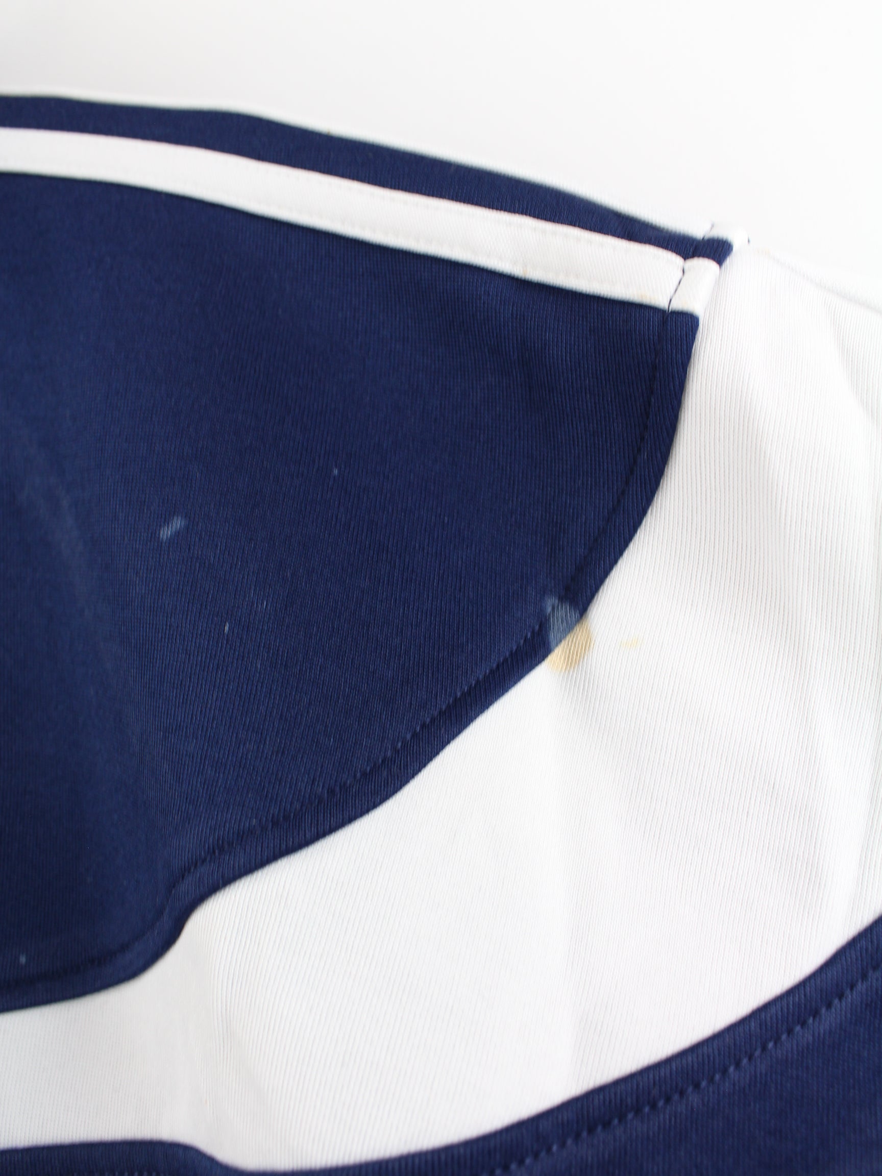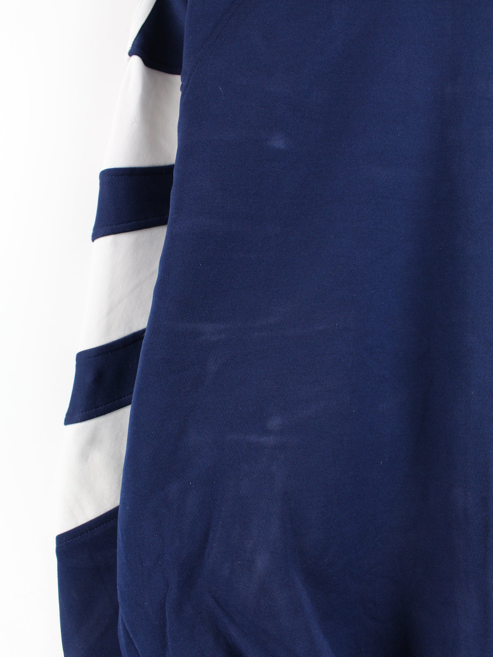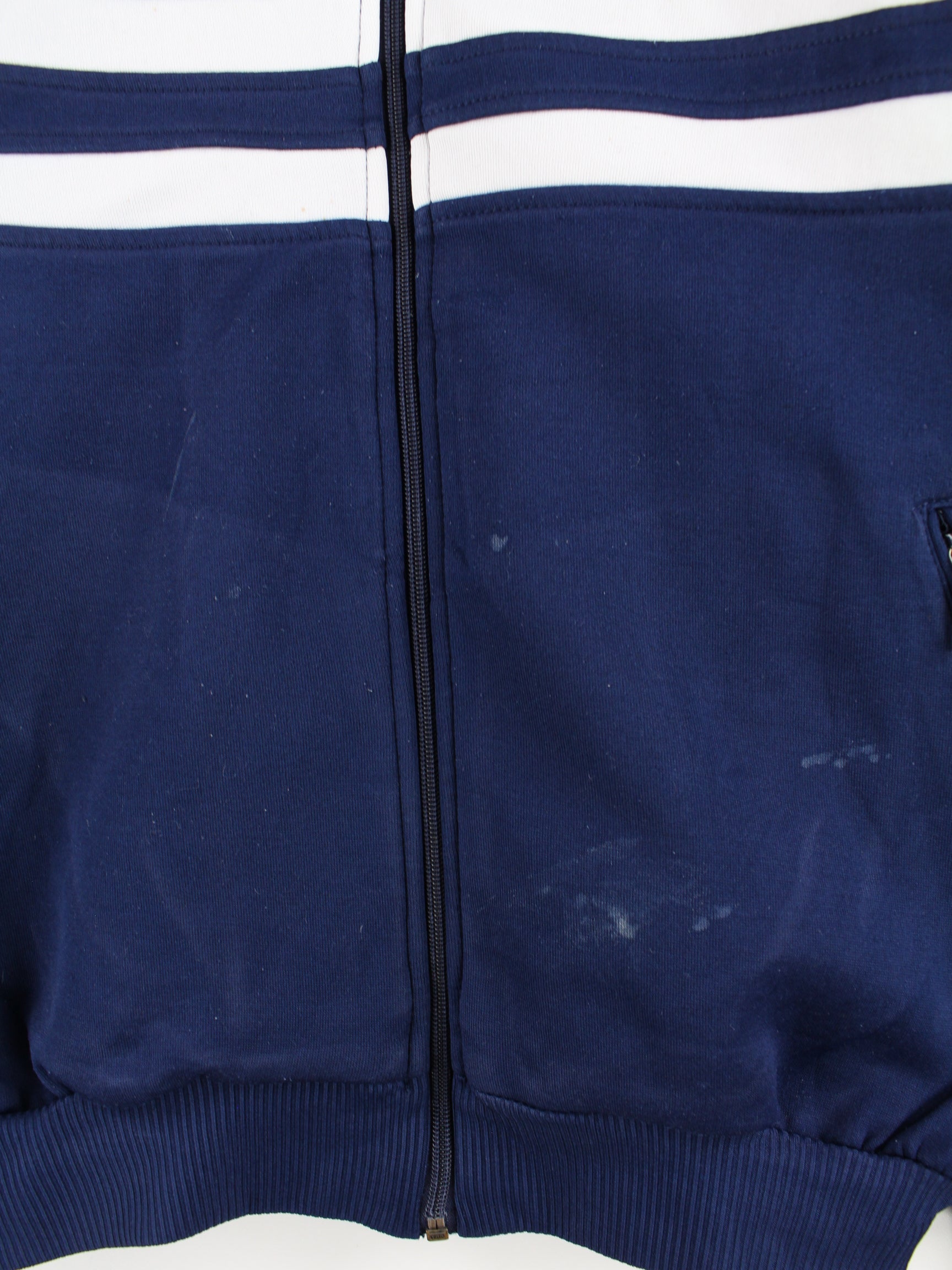 Blaue Trainingsjacke des Labels Adidas aus den 90'ern in Größe M. Sie ist aus Synthetik hergestellt. Den Zustand würden wir als 'In Ordnung' bezeichnen (vergl. Bilder).