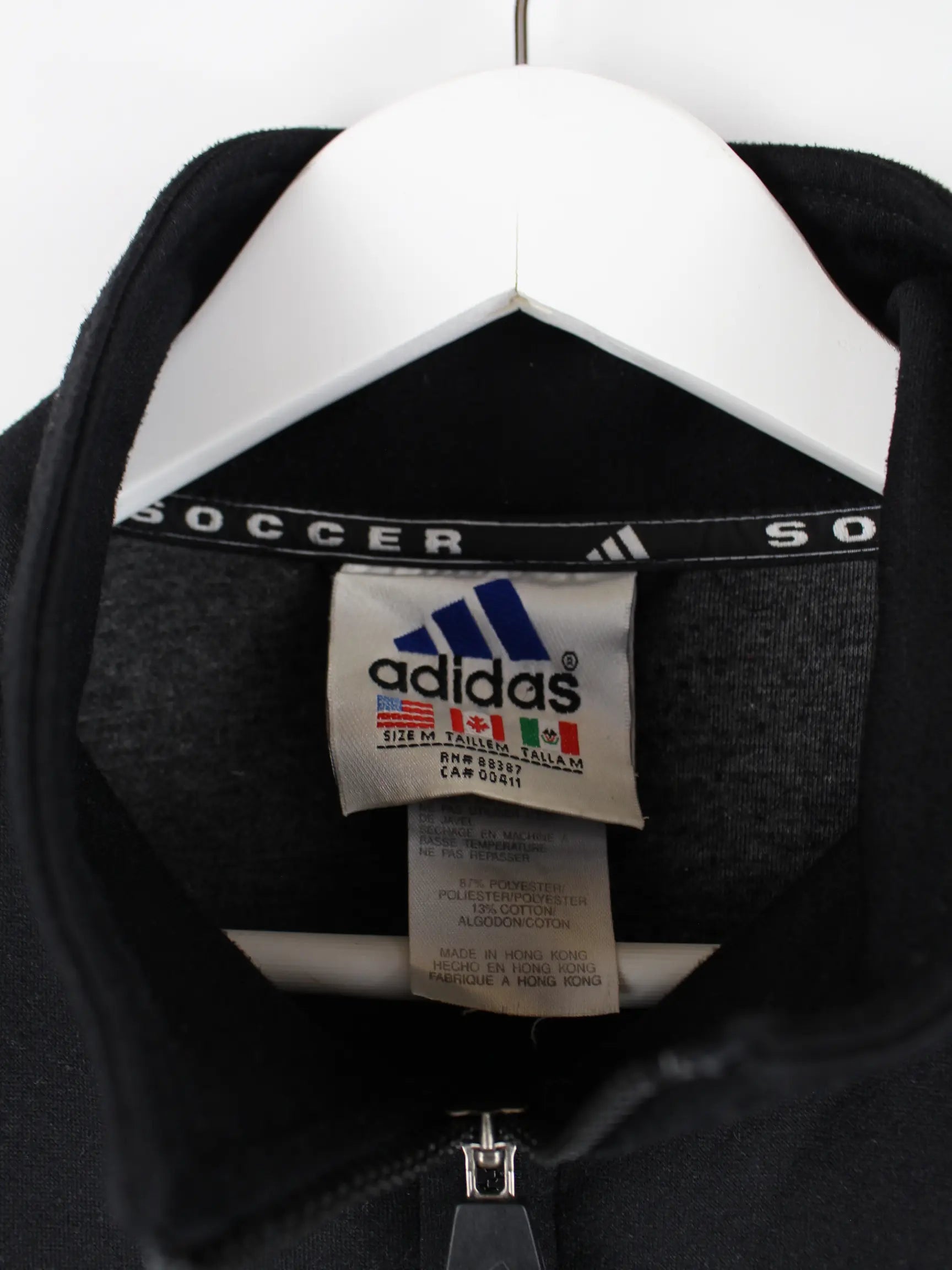 Schwarze Trainingsjacke des Labels Adidas aus den 90'ern in Größe M. Sie ist aus Synthetik hergestellt und in sehr gutem Zustand in Stock.