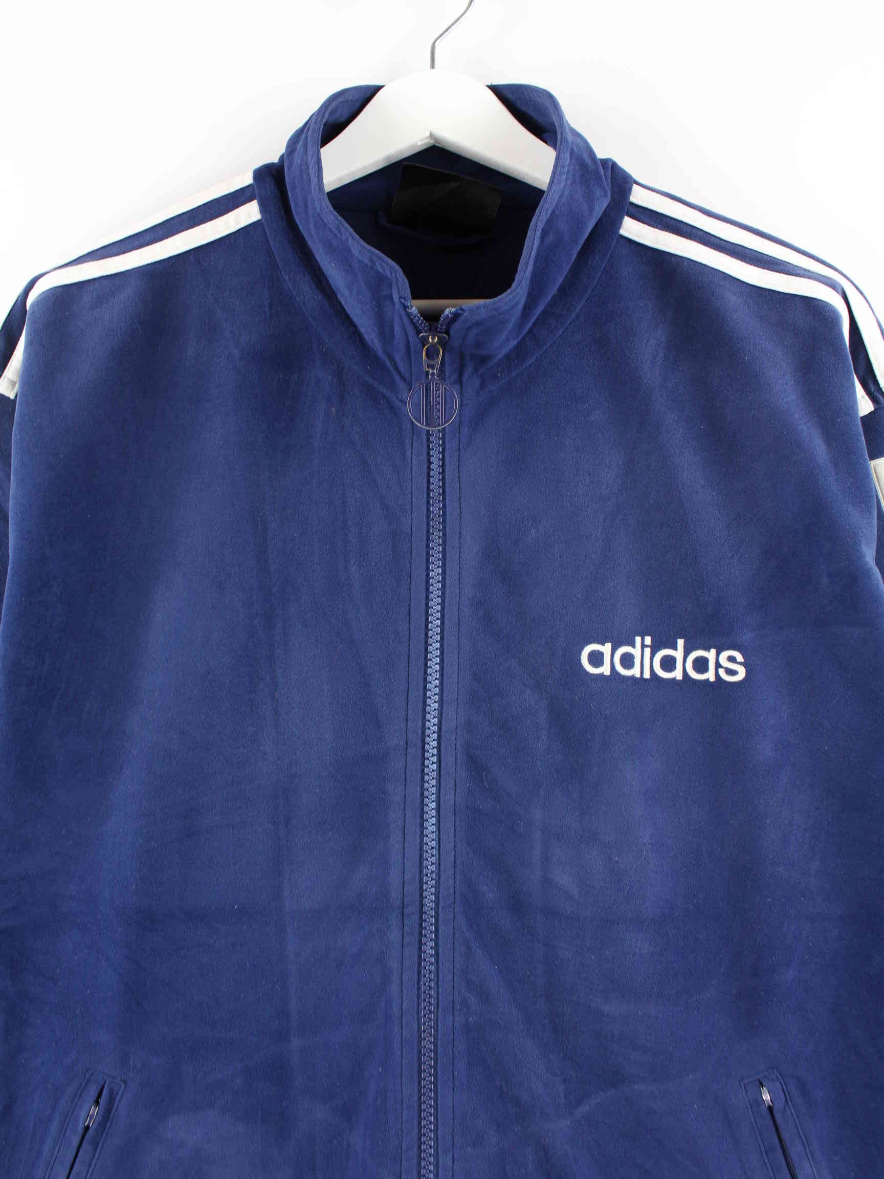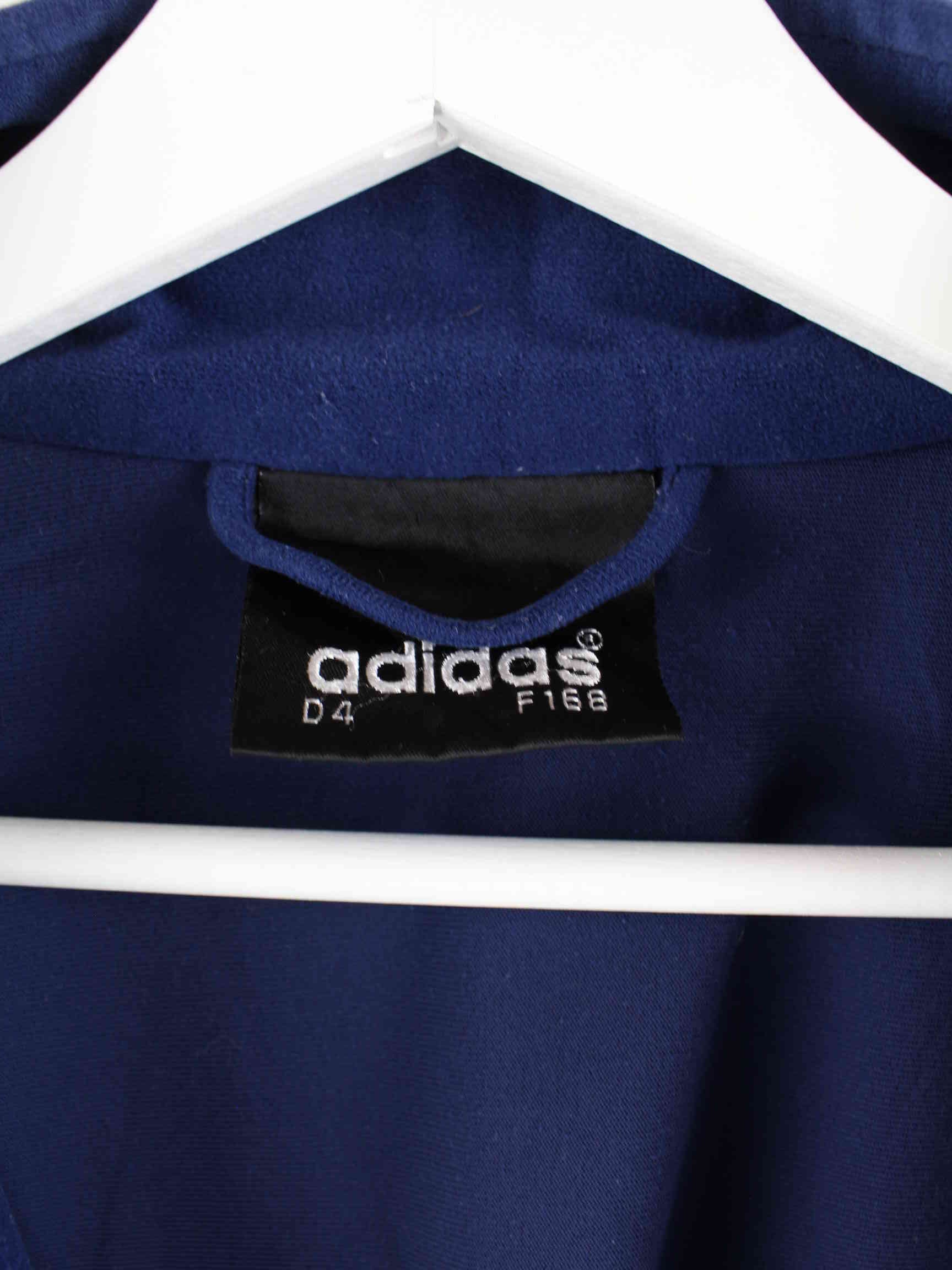 Blaue Trainingsjacke aus dem Hause Adidas aus den 90'ern in Größe M. Sie ist aus Synthetik angefertigt und in gutem Zustand auf Lager.