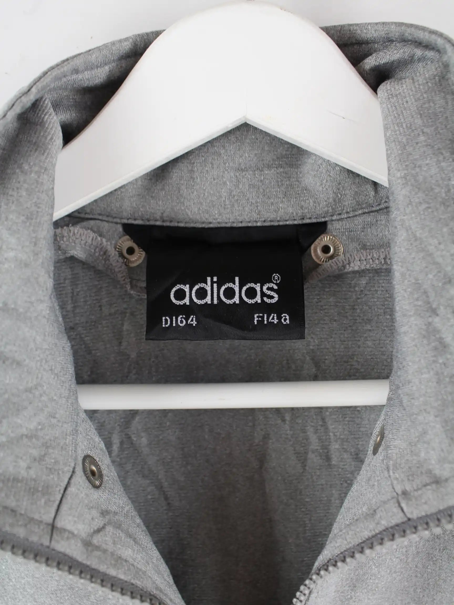 Trainingsjacke aus dem Hause Adidas in Größe S aus den 90'ern. Sie ist aus Synthetik und in Grau bei uns vorrätig.