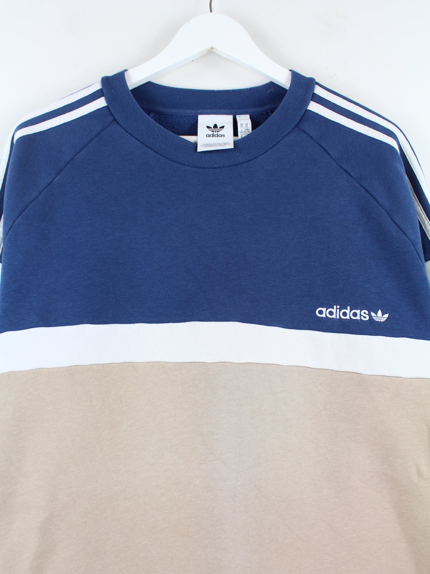 Mehrfarbiger Sweater mit gesticktem Logo vom Label Adidas in Größe XL. Er ist aus einer Baumwollmischung und in sehr gutem Zustand im Bestand.