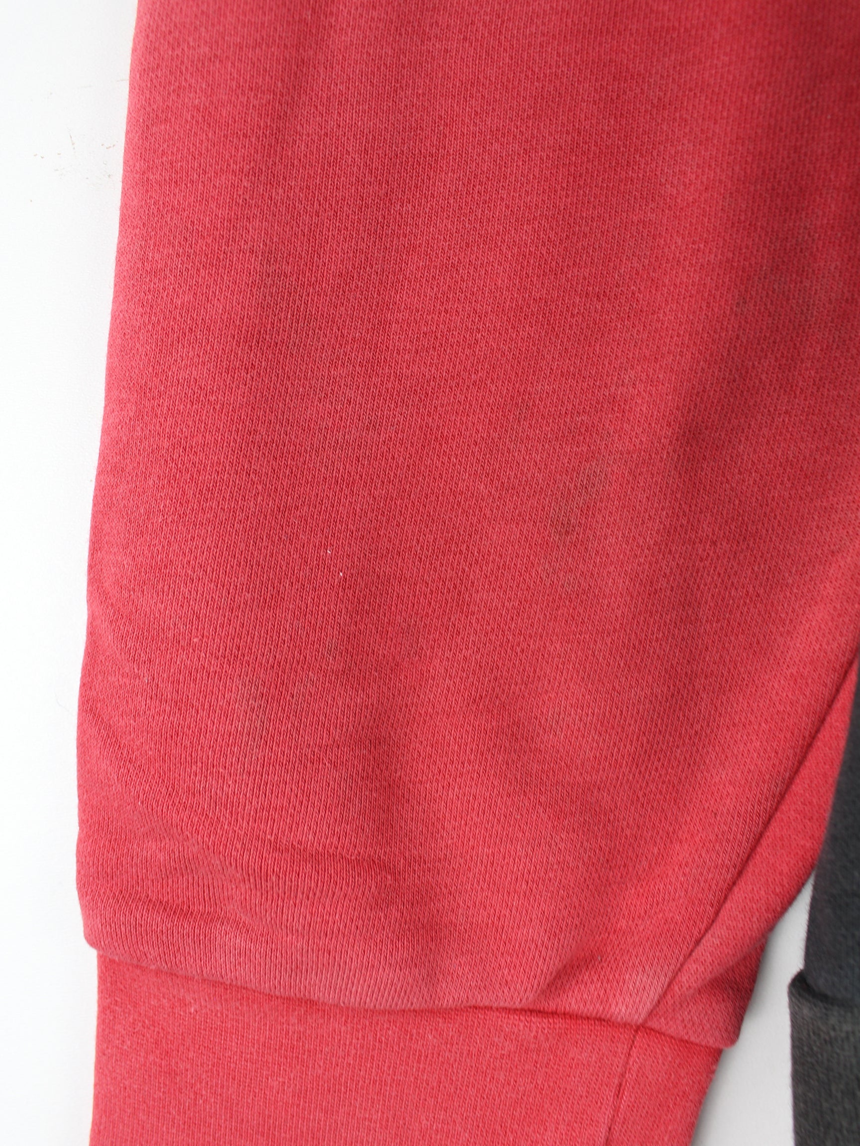 Roter Hoodie mit Stick und Reißverschluß vom Label Adidas in Größe XL. Er ist aus einer Baumwollmischung gemacht und in gutem Zustand vorrätig.