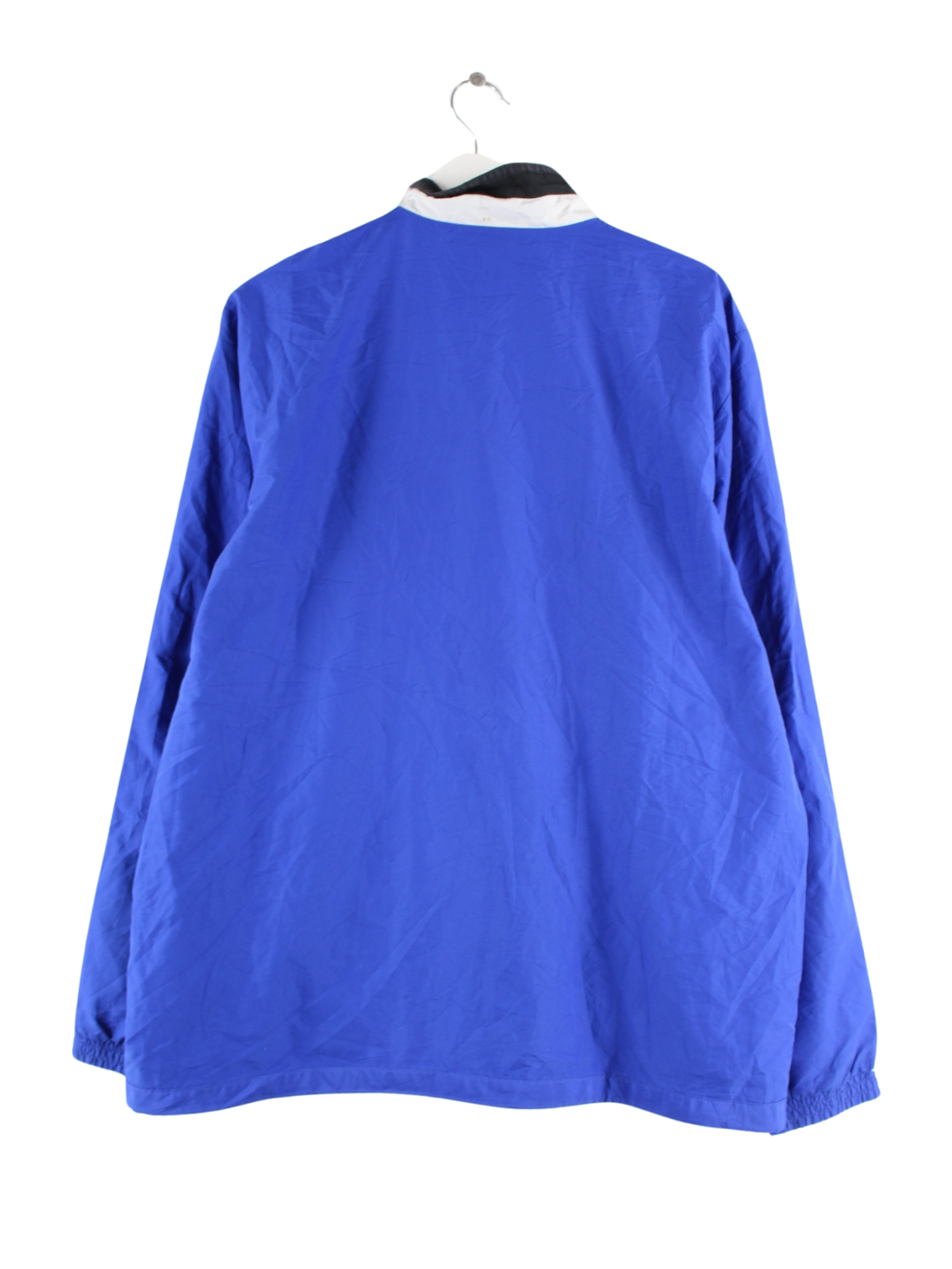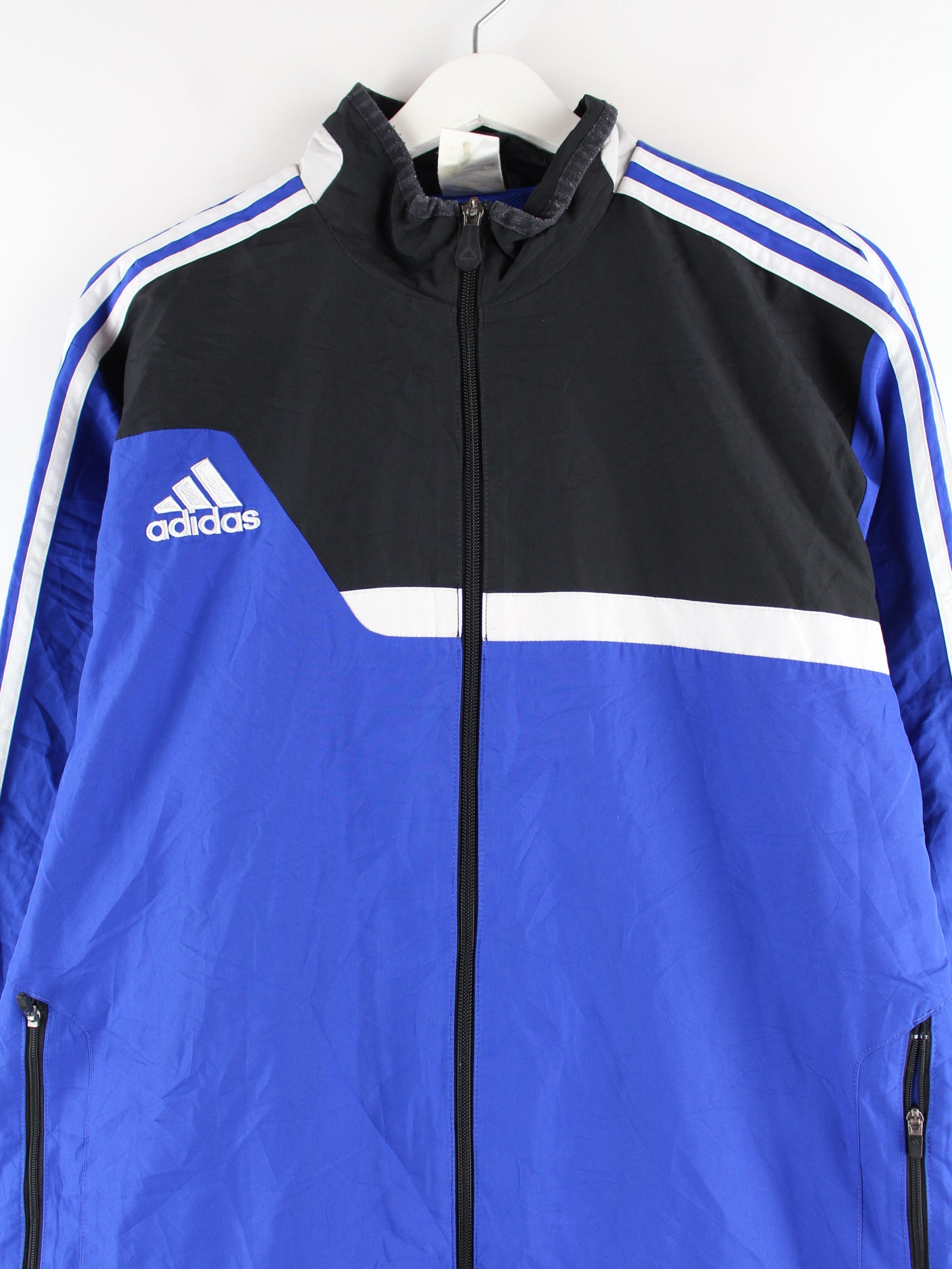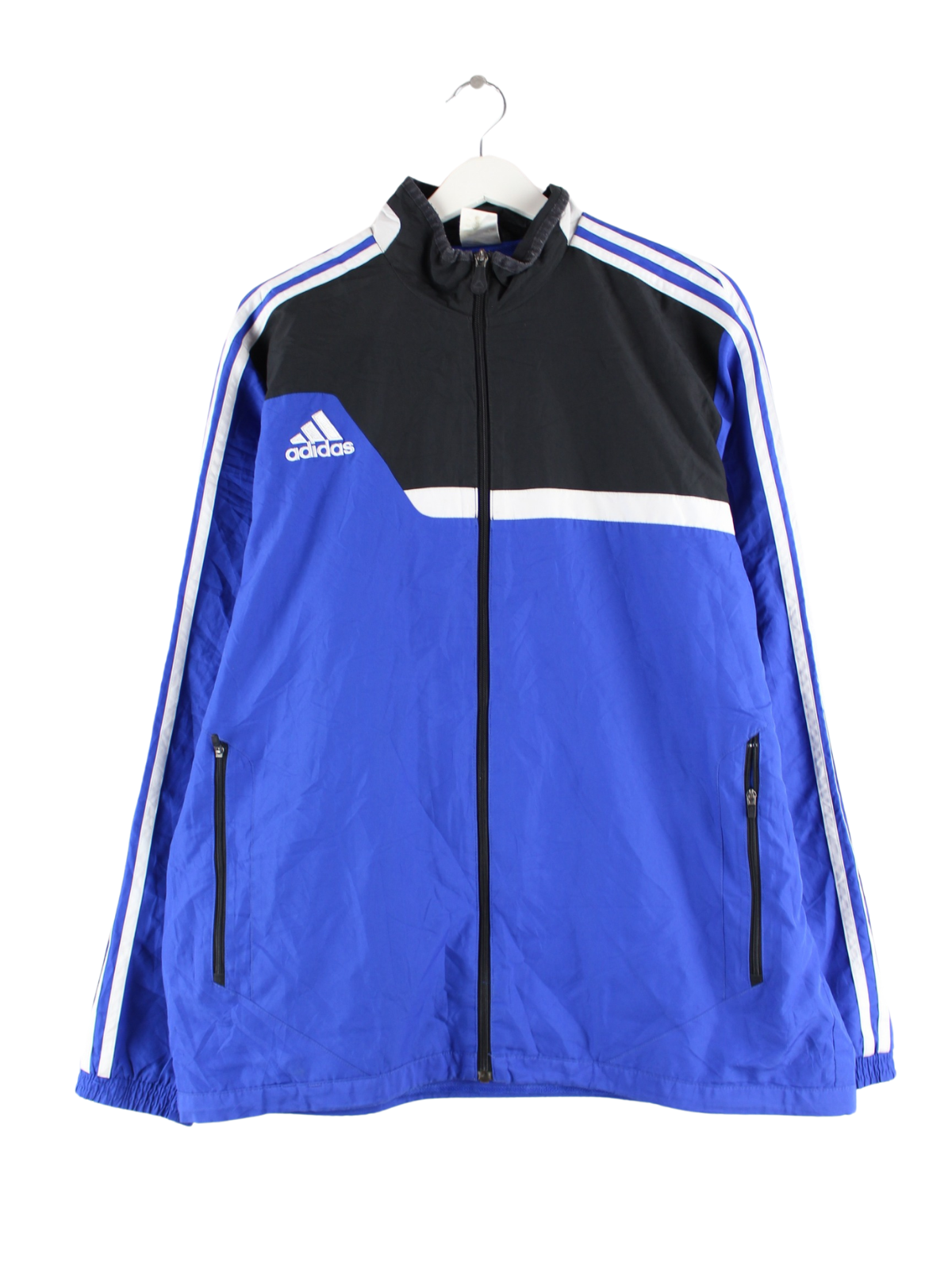 Trainingsjacke vom Label Adidas in Größe L. Sie ist aus Synthetik hergestellt und in Blau lieferbar.