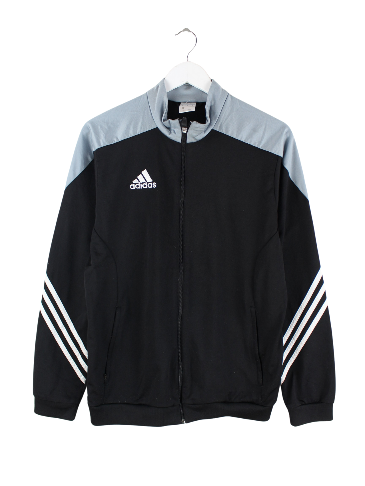 Schwarze Trainingsjacke der Brand Adidas in Größe M. Sie ist aus Synthetik produziert und in gutem Zustand zu haben.