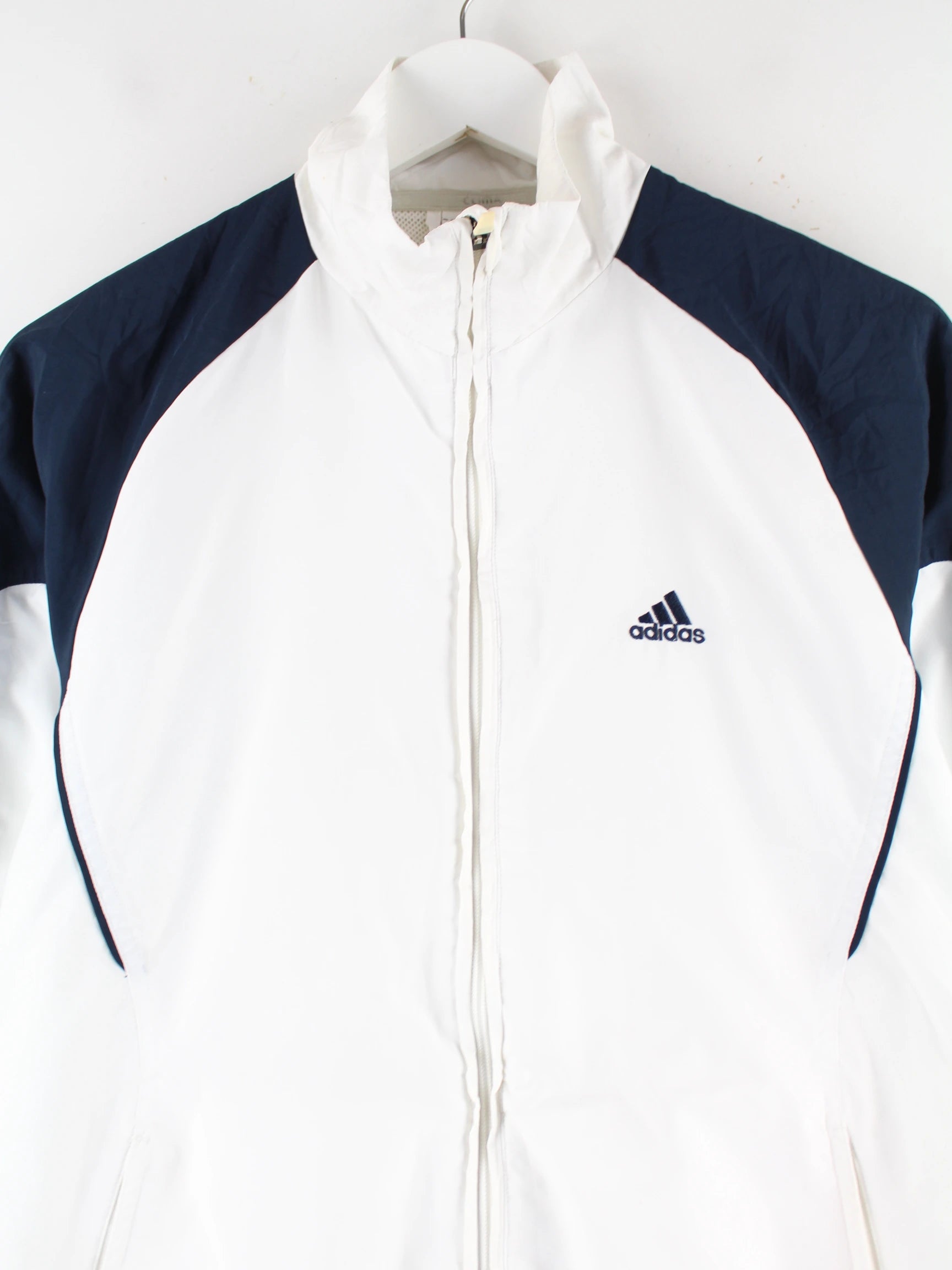 Trainingsjacke der Brand Adidas in Größe S. Sie ist aus Synthetik hergestellt und in Weiß auf Lager.