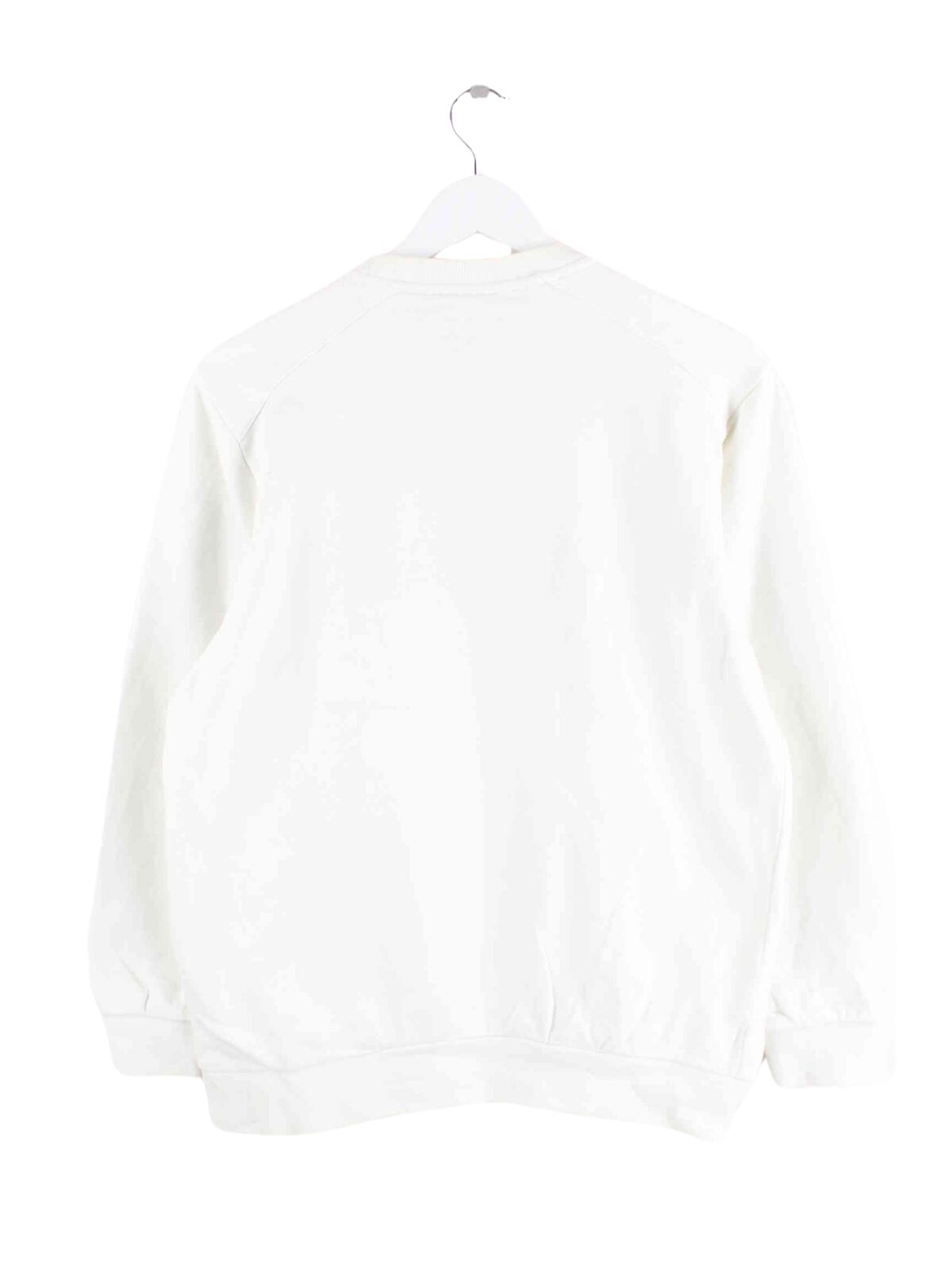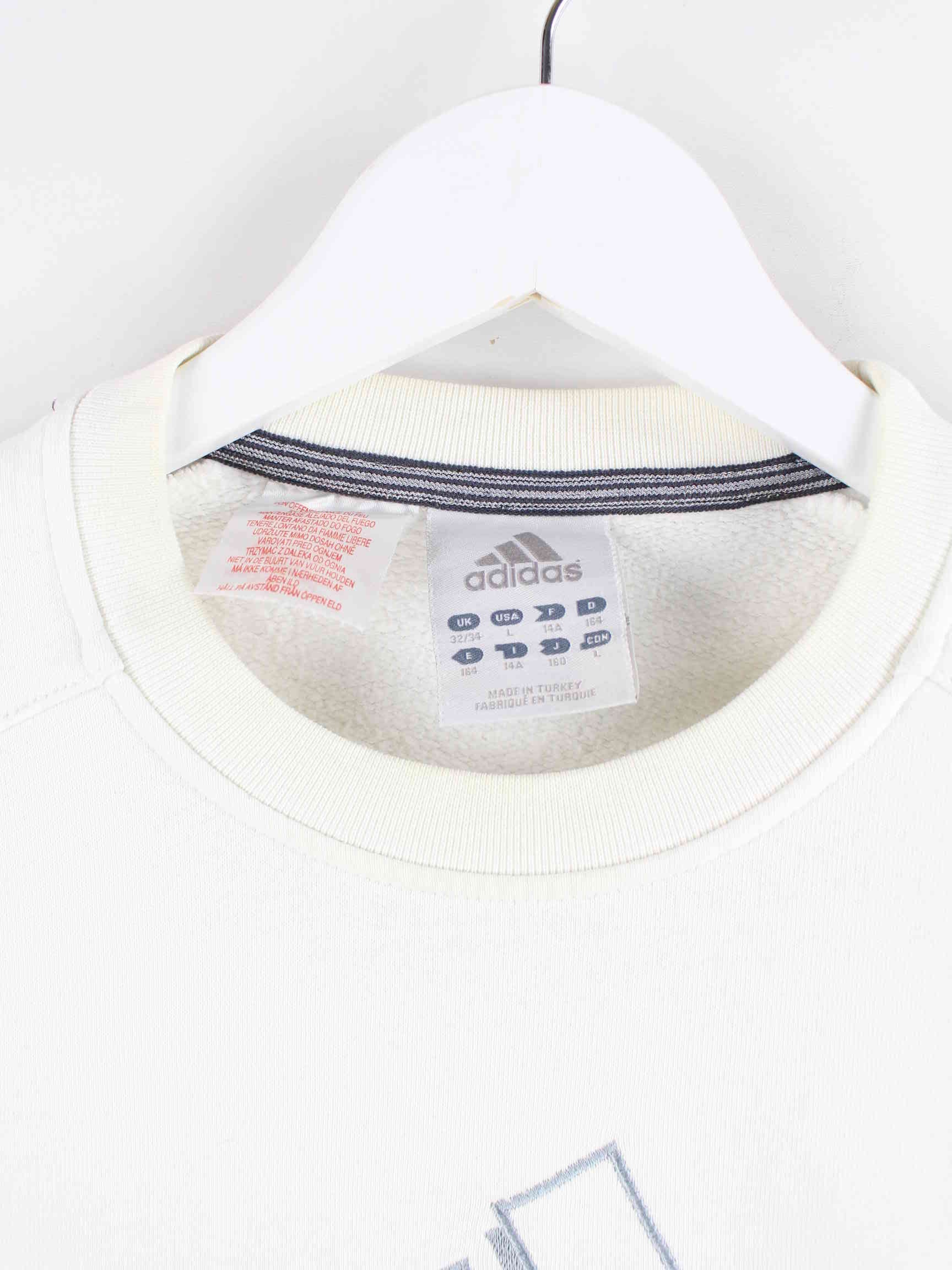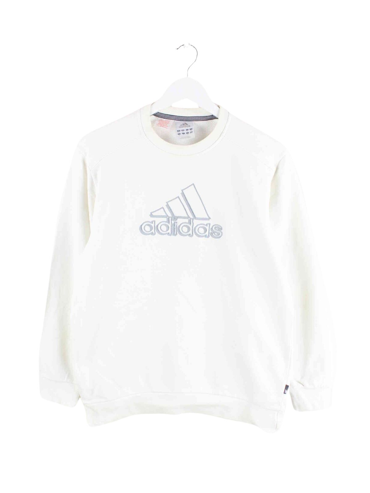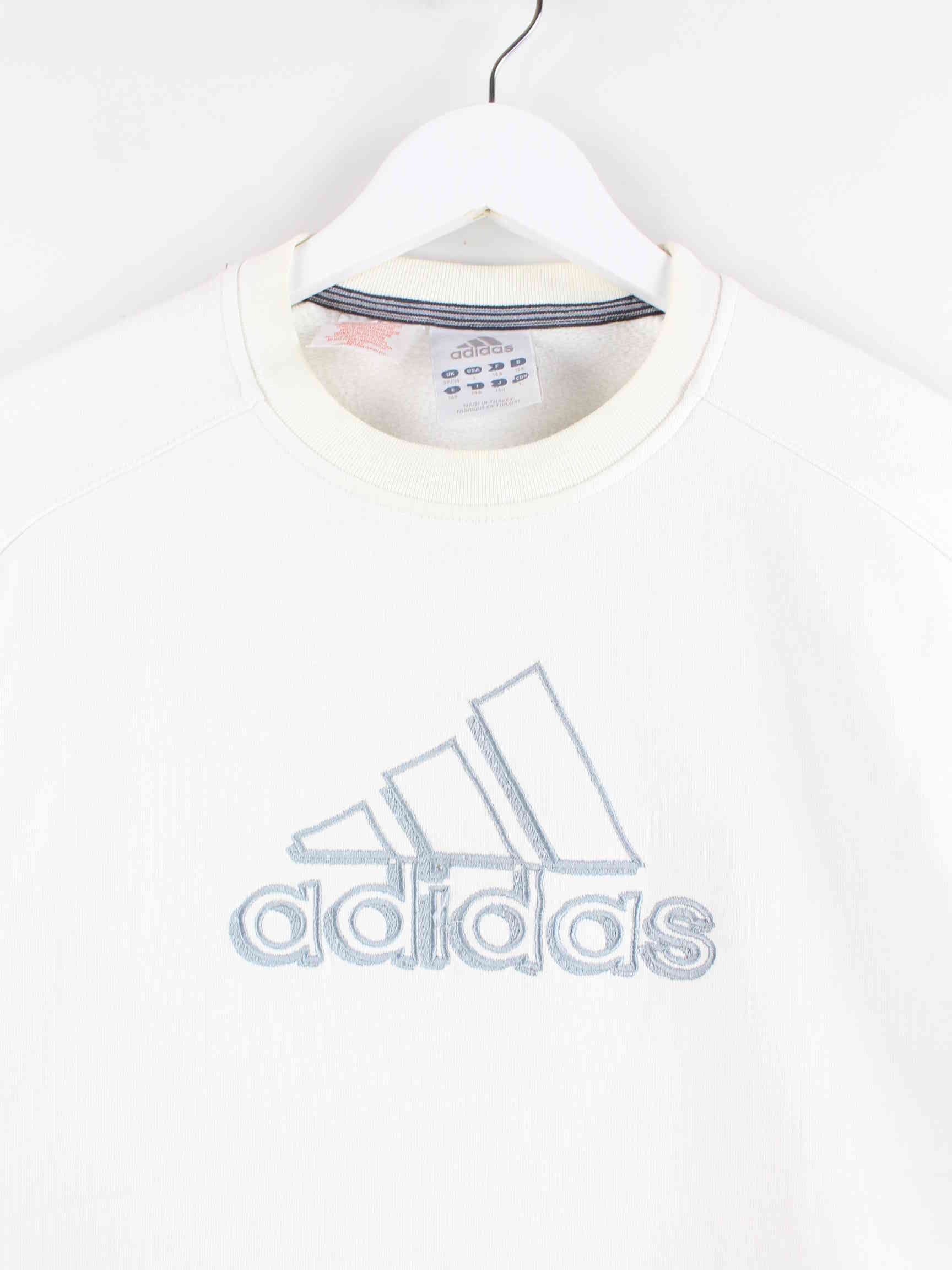 Sweater aus dem Hause Adidas mit gesticktem Logo in Größe S aus Anfang der 2000'er. Er ist aus einer Baumwollmischung und in Weiß im Angebot.
