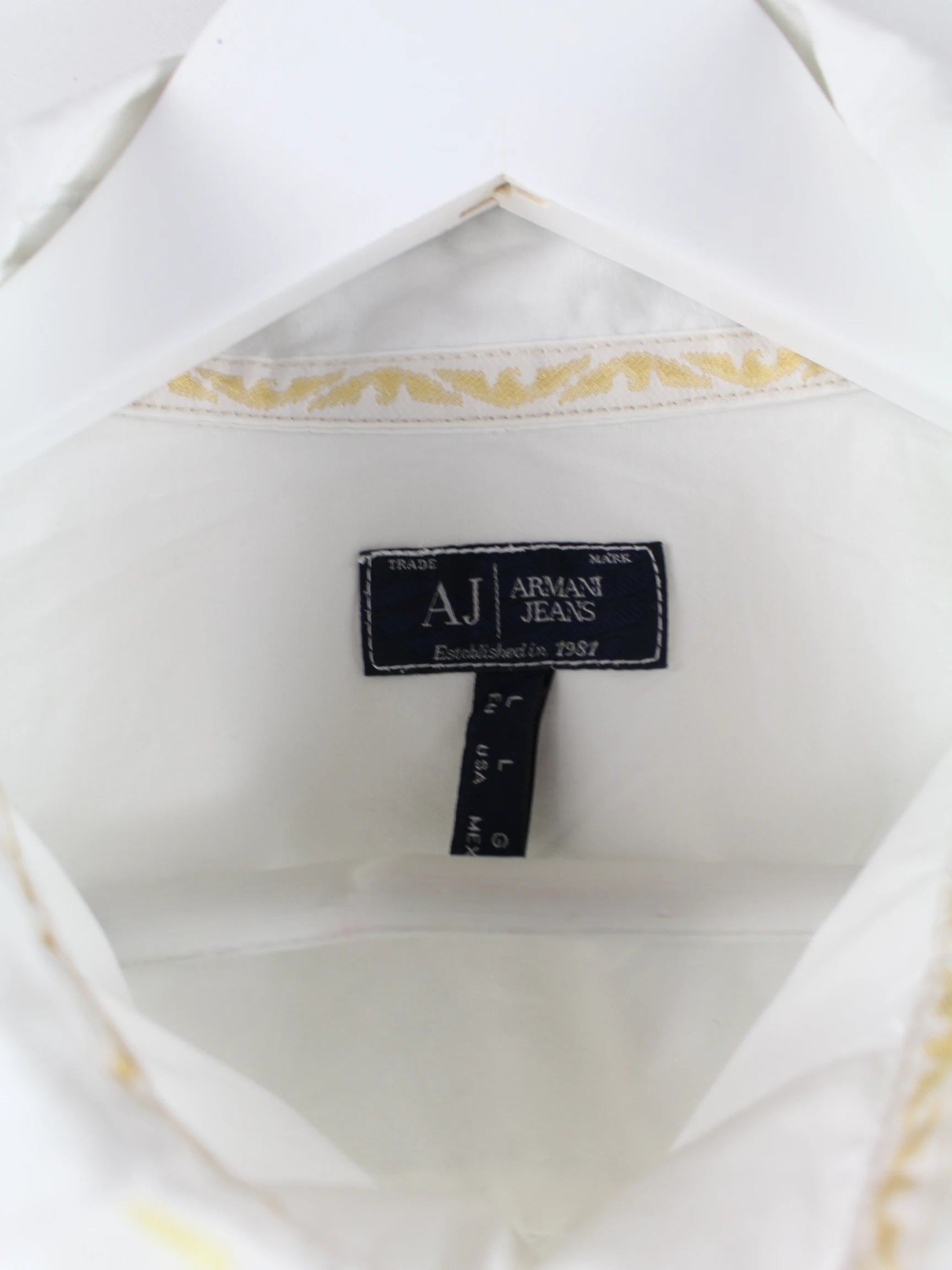 Hemd vom Brand Armani in Größe L. Es ist aus Baumwolle hergestellt und in Weiß bei uns zu bekommen.