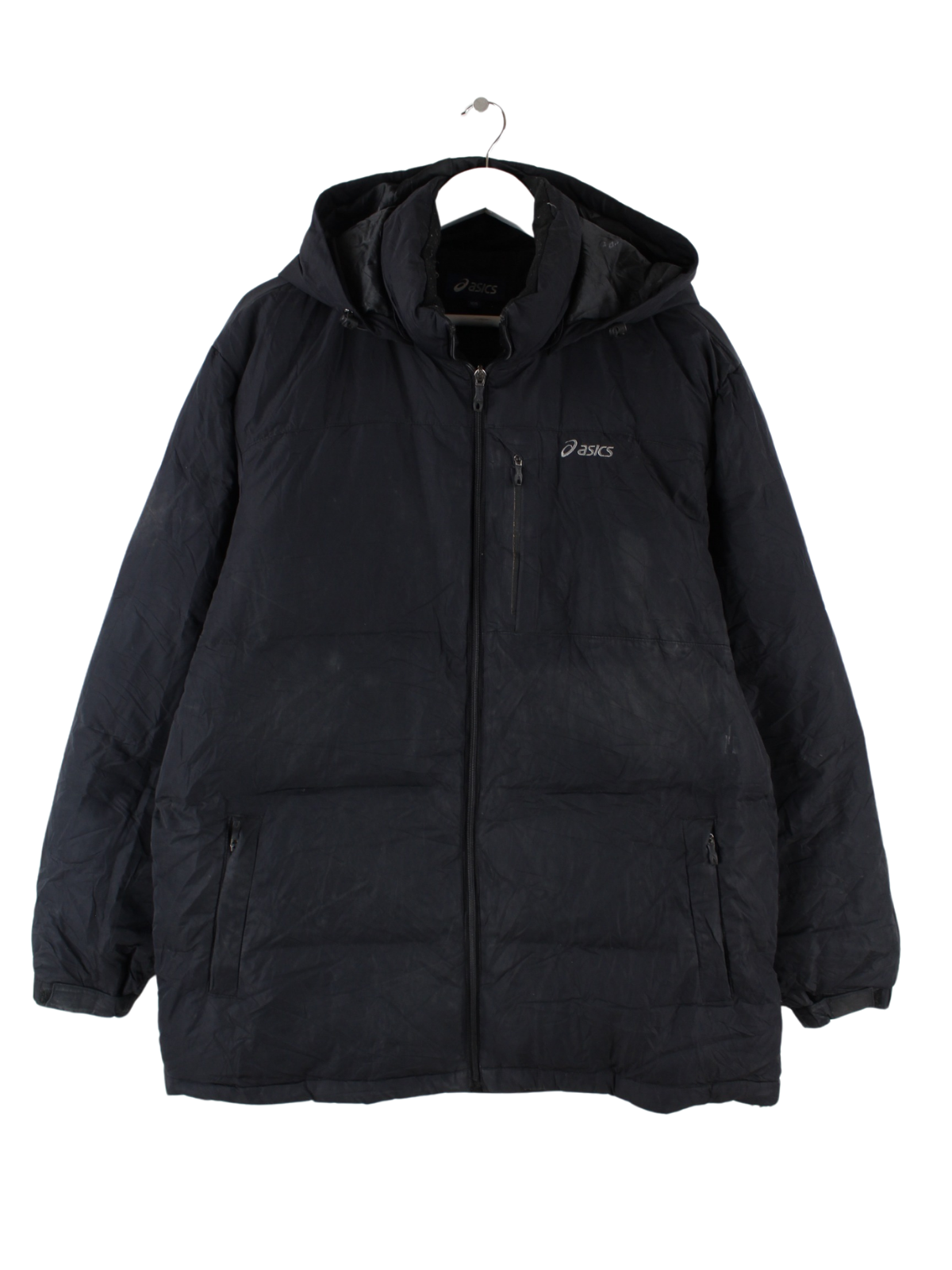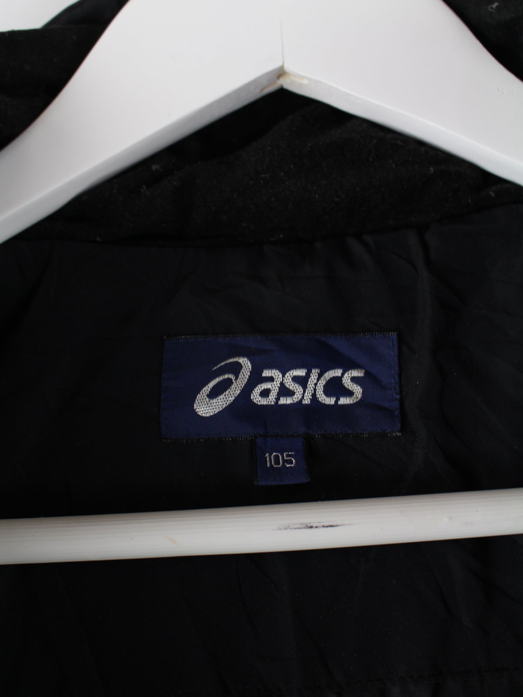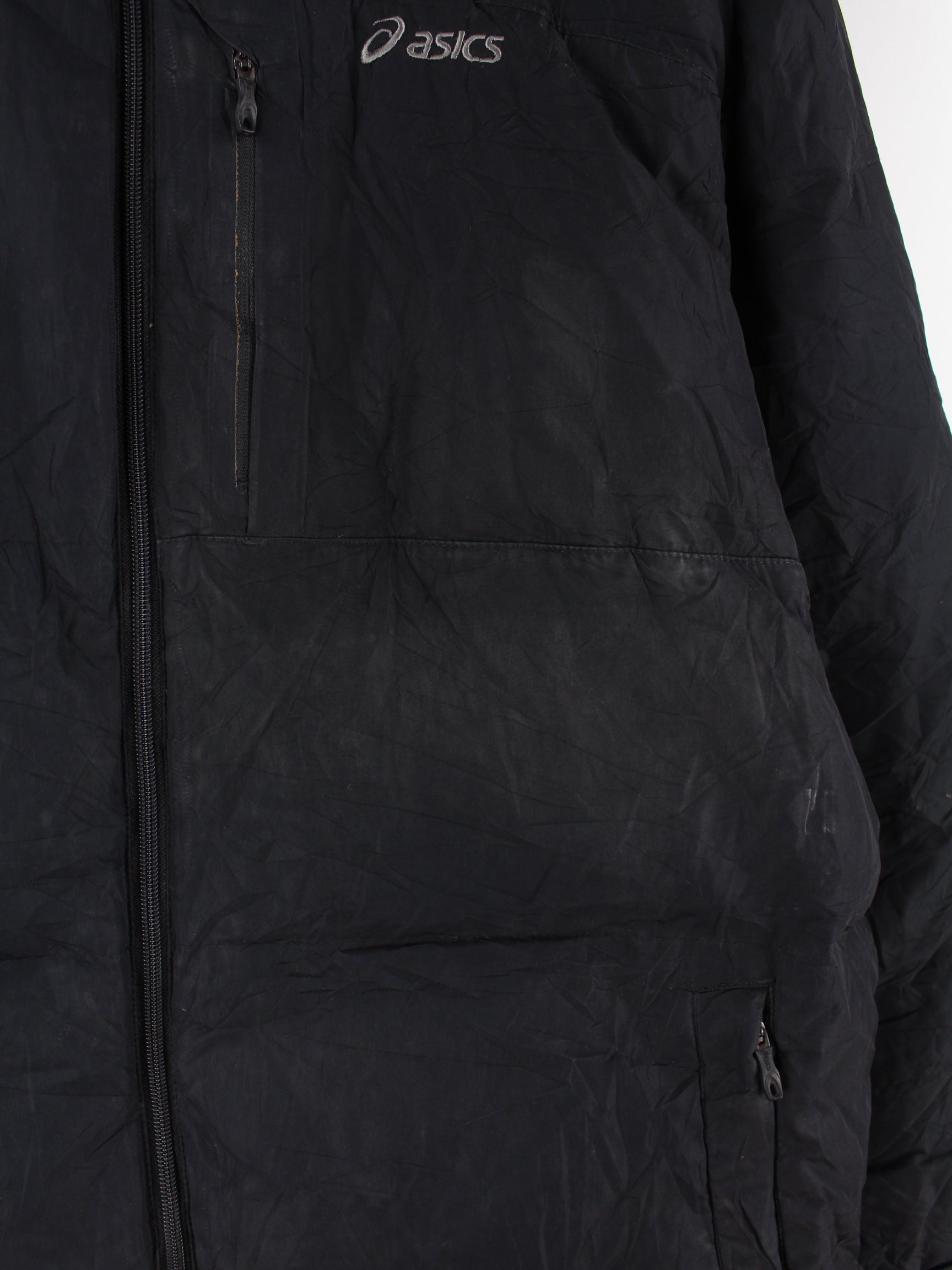 Schwarze Jacke der Brand Asics in Größe XL. Sie ist aus Synthetik hergestellt. Den Zustand würden wir als 'In Ordnung' bezeichnen (vergl. Bilder).