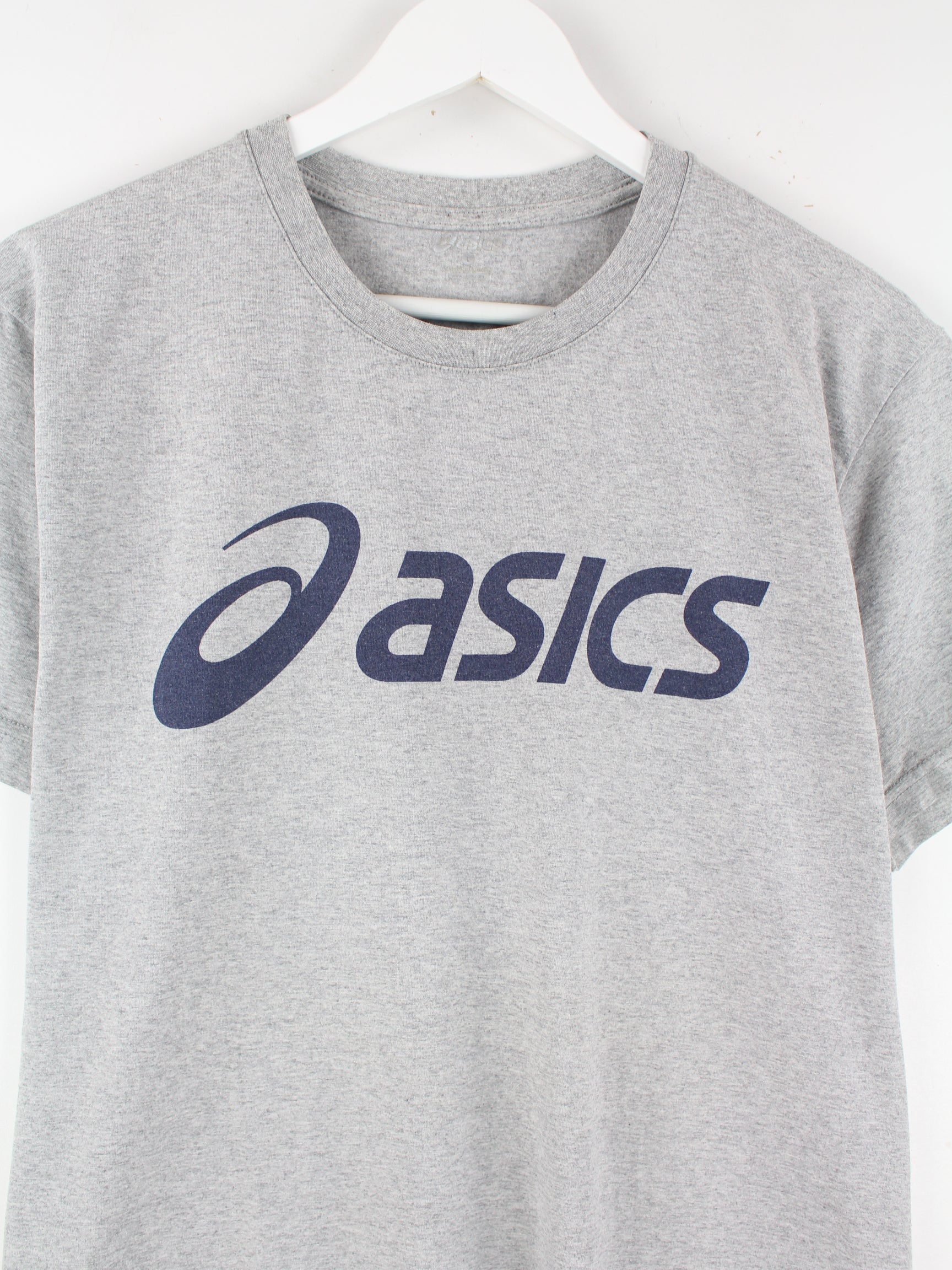 T-Shirt aus dem Hause Asics in Größe L. Es ist aus Baumwolle produziert und in Grau in Stock. Mit seltenem Print.