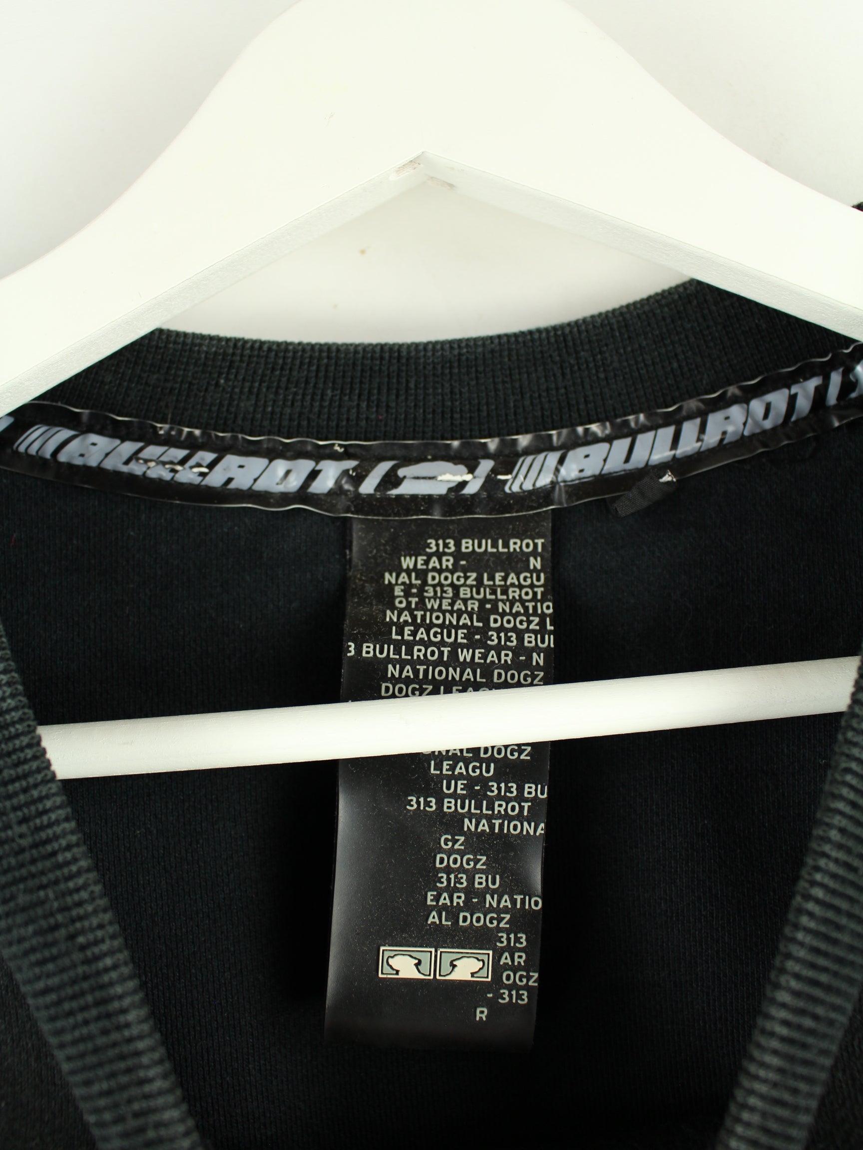 Schwarzer Sweater der Marke Bullrot aus den 90'ern in Größe XXL. Er ist aus einer Baumwollmischung und in gutem Zustand im Bestand. Mit tollem Vintage Print.