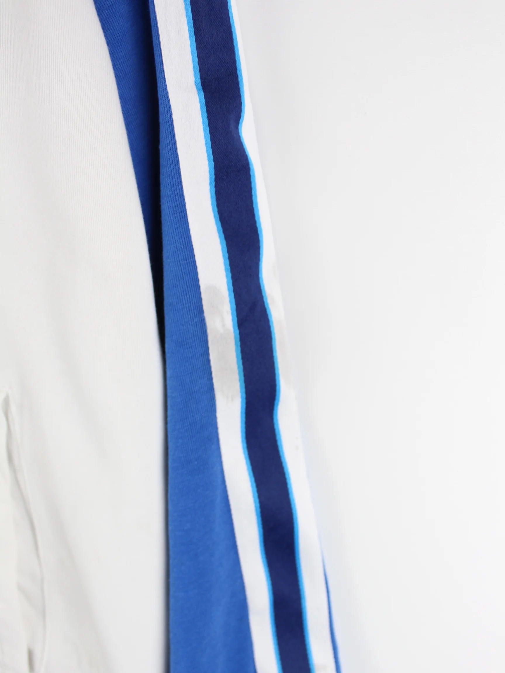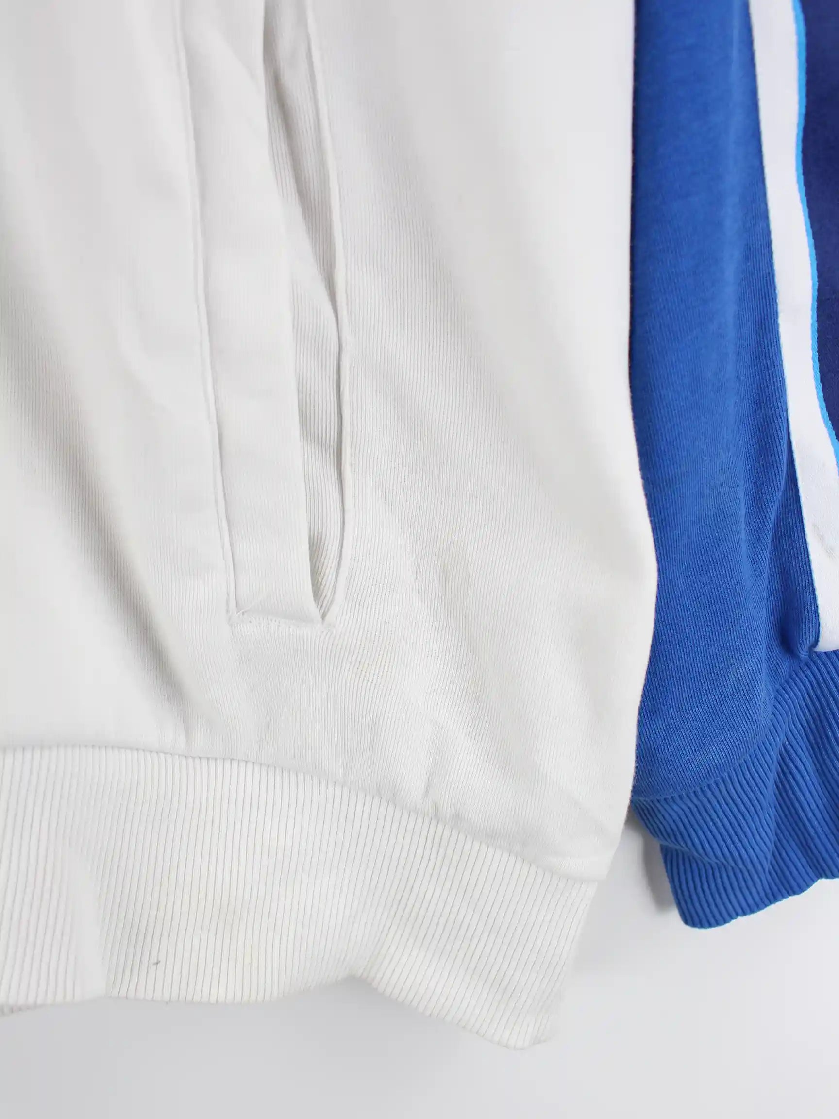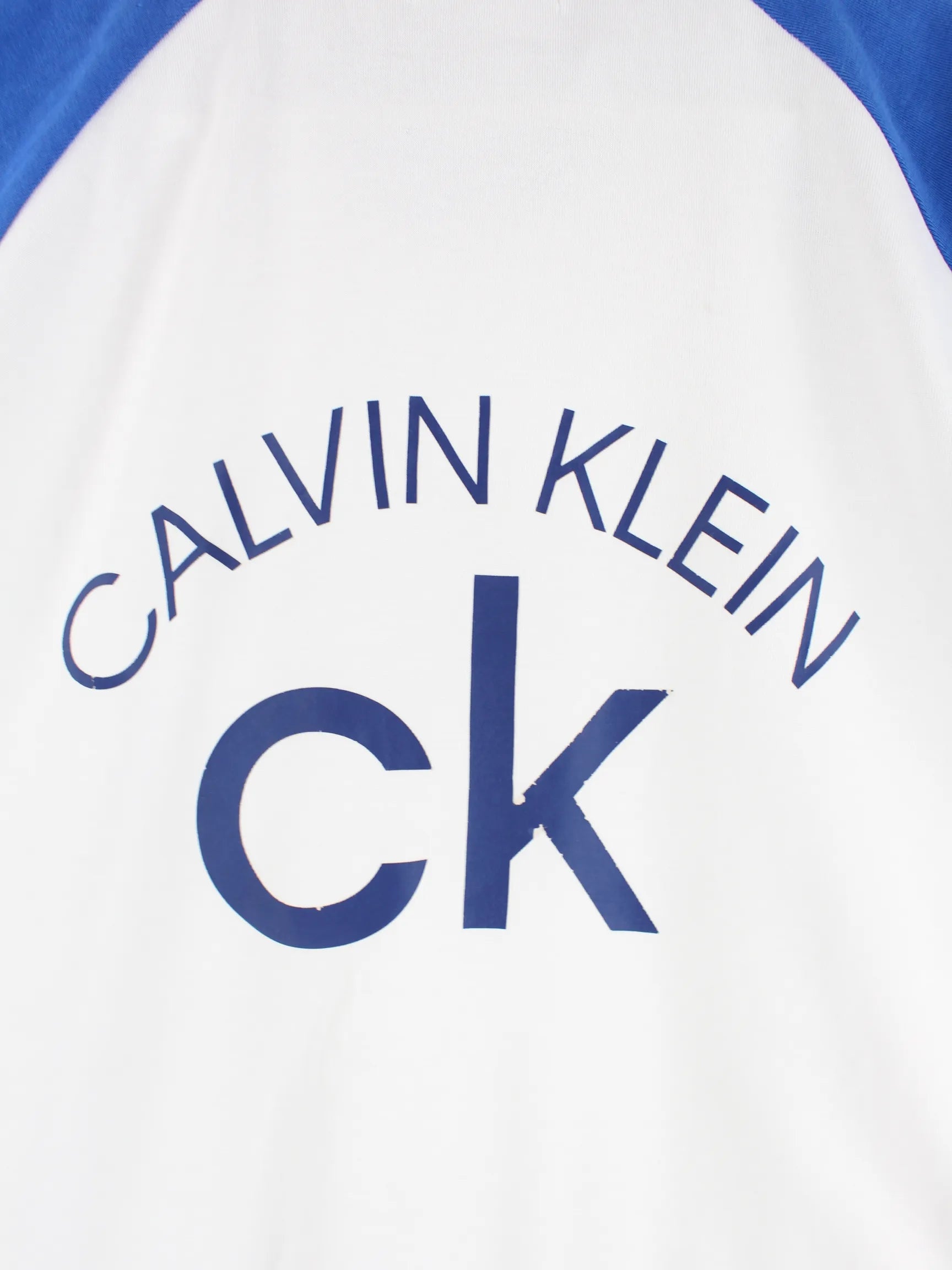 Weiße Sweatjacke von Calvin Klein in Größe XXL. Sie ist aus einer Baumwollmischung produziert. Den Zustand würden wir als 'In Ordnung' bezeichnen (vergl. Bilder).Mit schickem Jersey Print.