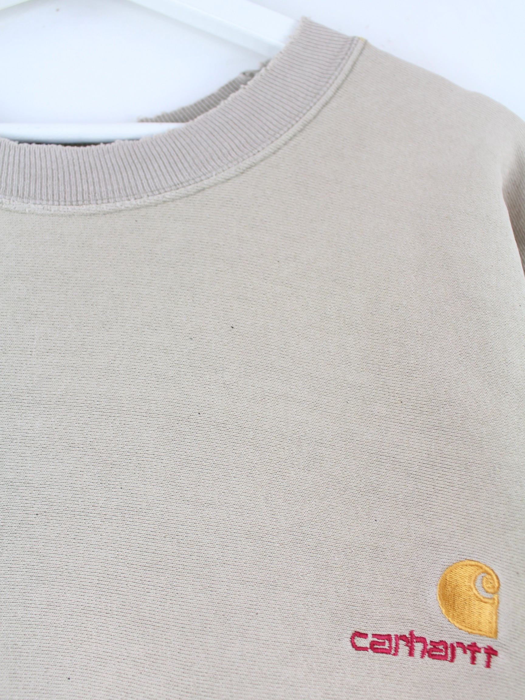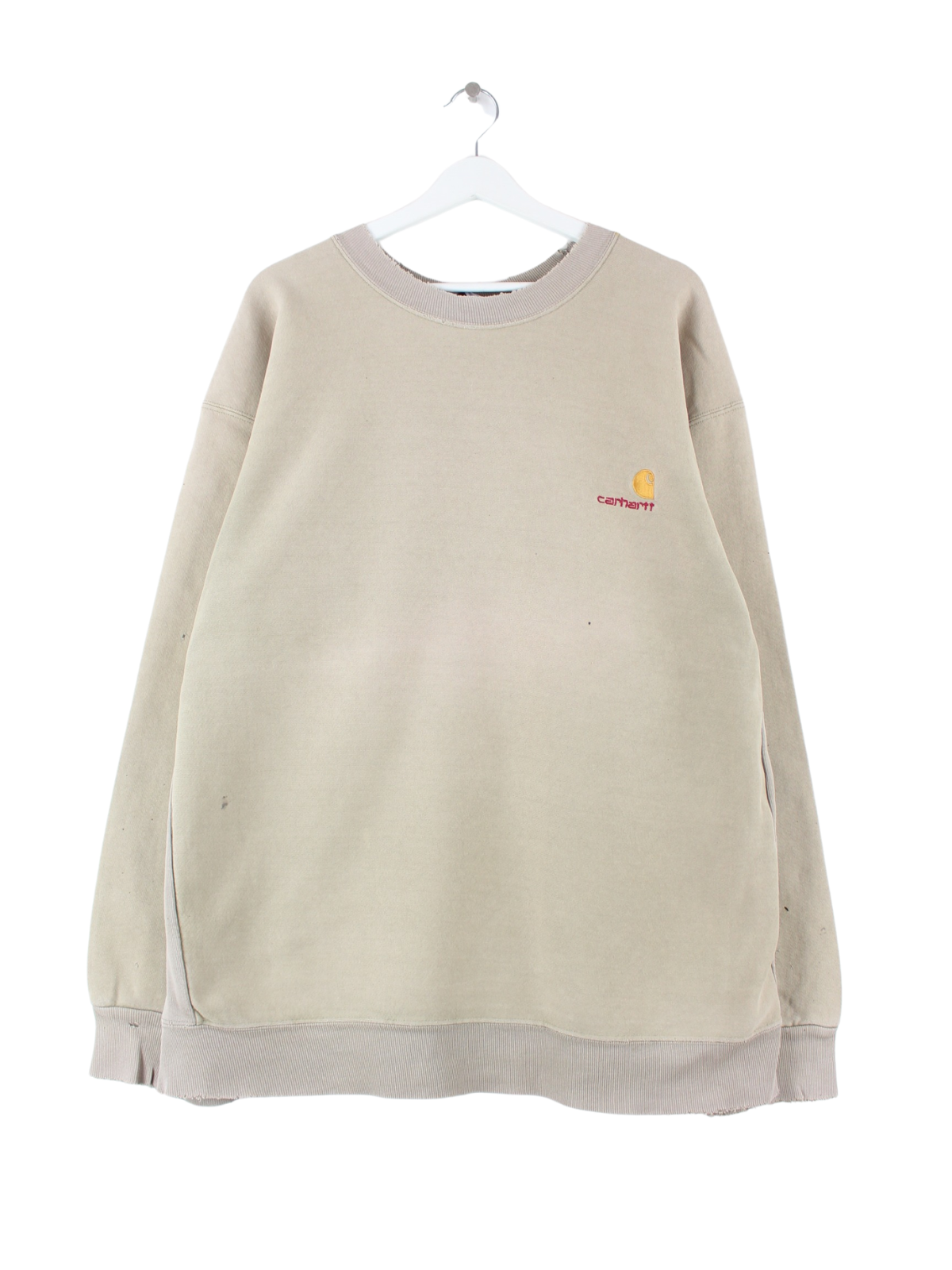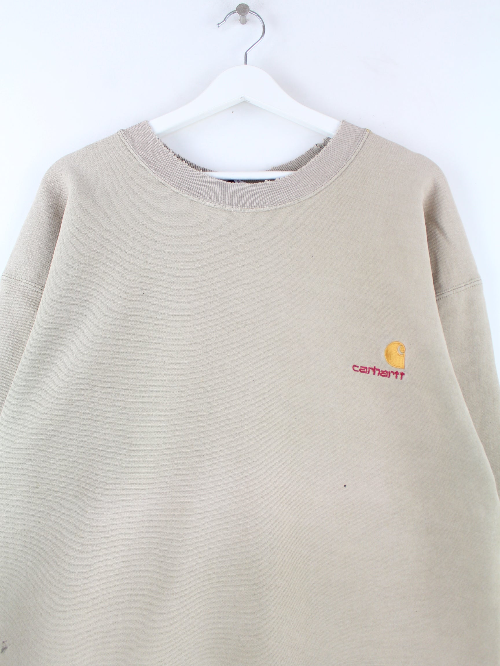 Sweater vom Brand Carhartt mit Stick in Größe XXL. Er ist aus einer Baumwollmischung gefertigt und in Beige auf Lager.
