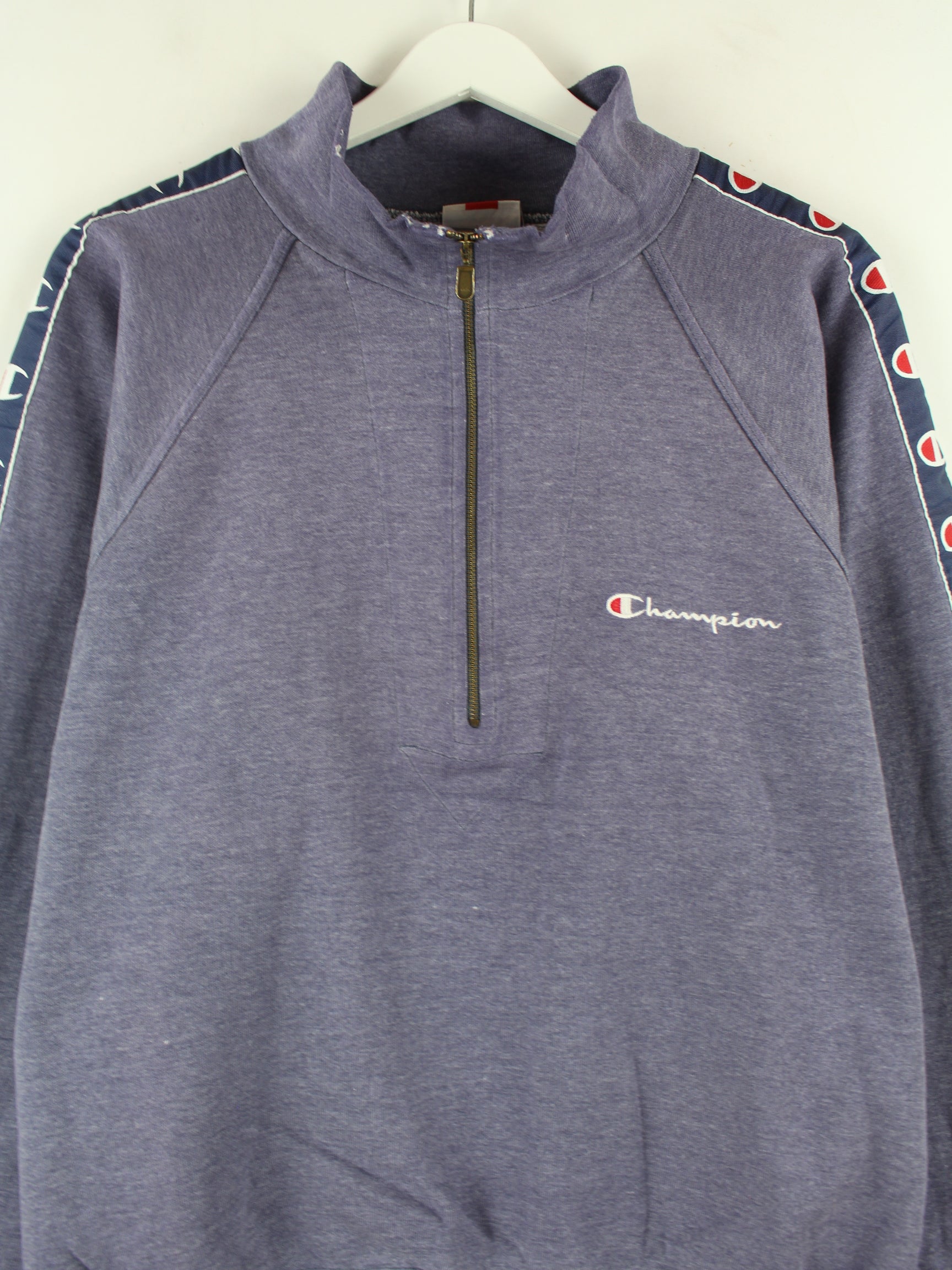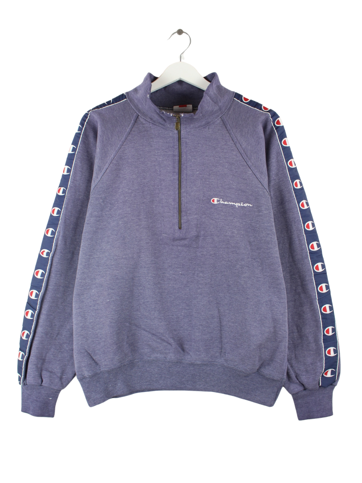 Blauer Sweater mit half Zip vom Brand Champion in Größe M. Er ist aus einer Baumwollmischung produziert und in gutem Zustand zu bekommen.