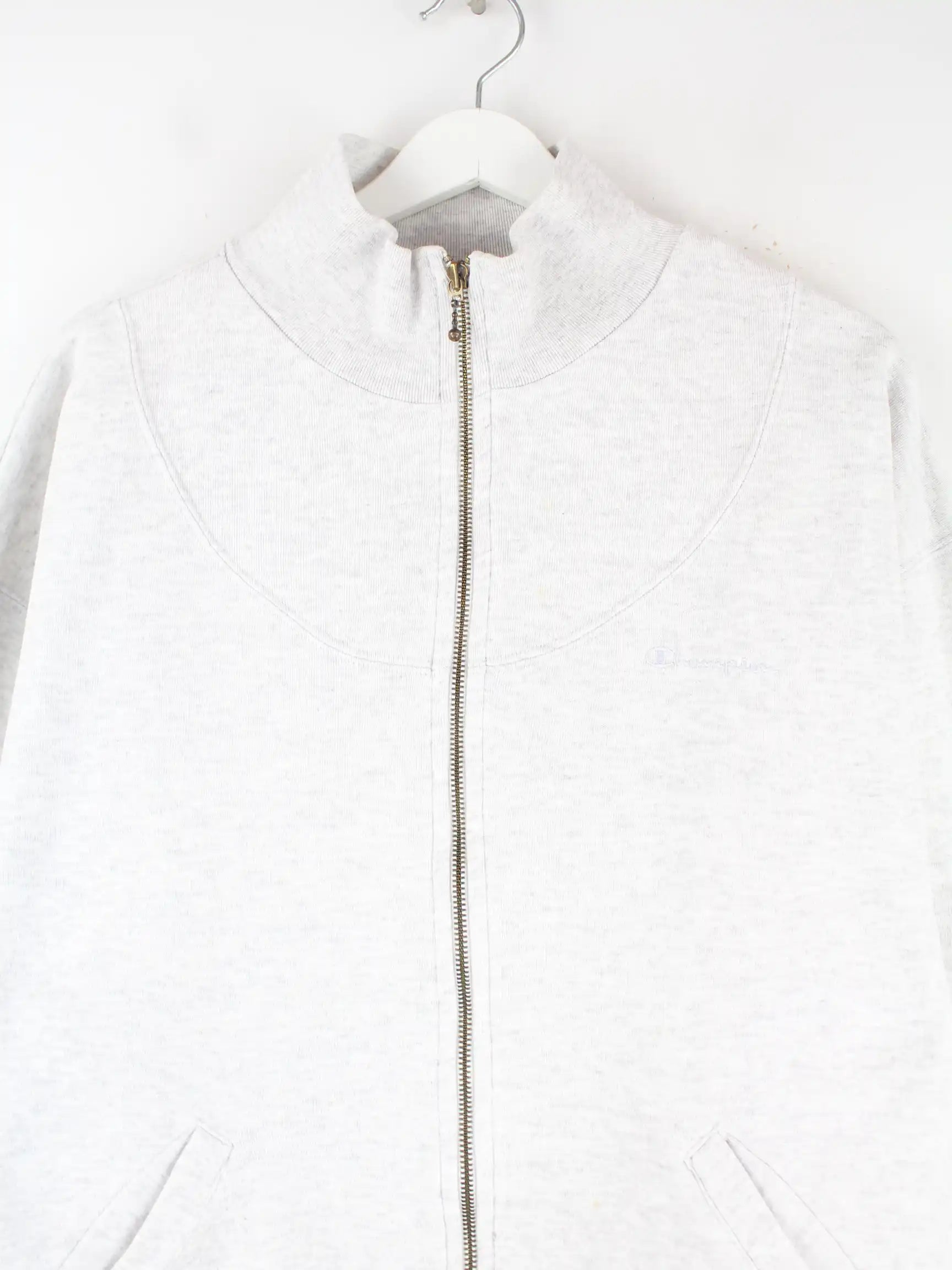 Sweatjacke aus dem Hause Champion in Größe L aus den 90'ern. Sie ist aus einer Baumwollmischung hergestellt und in Grau vorrätig.