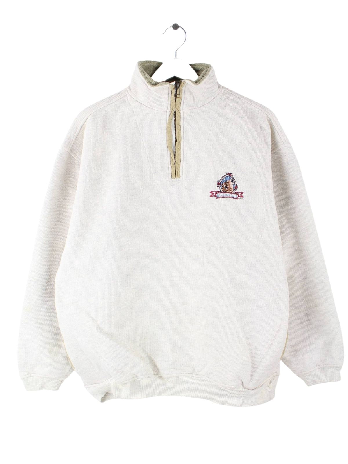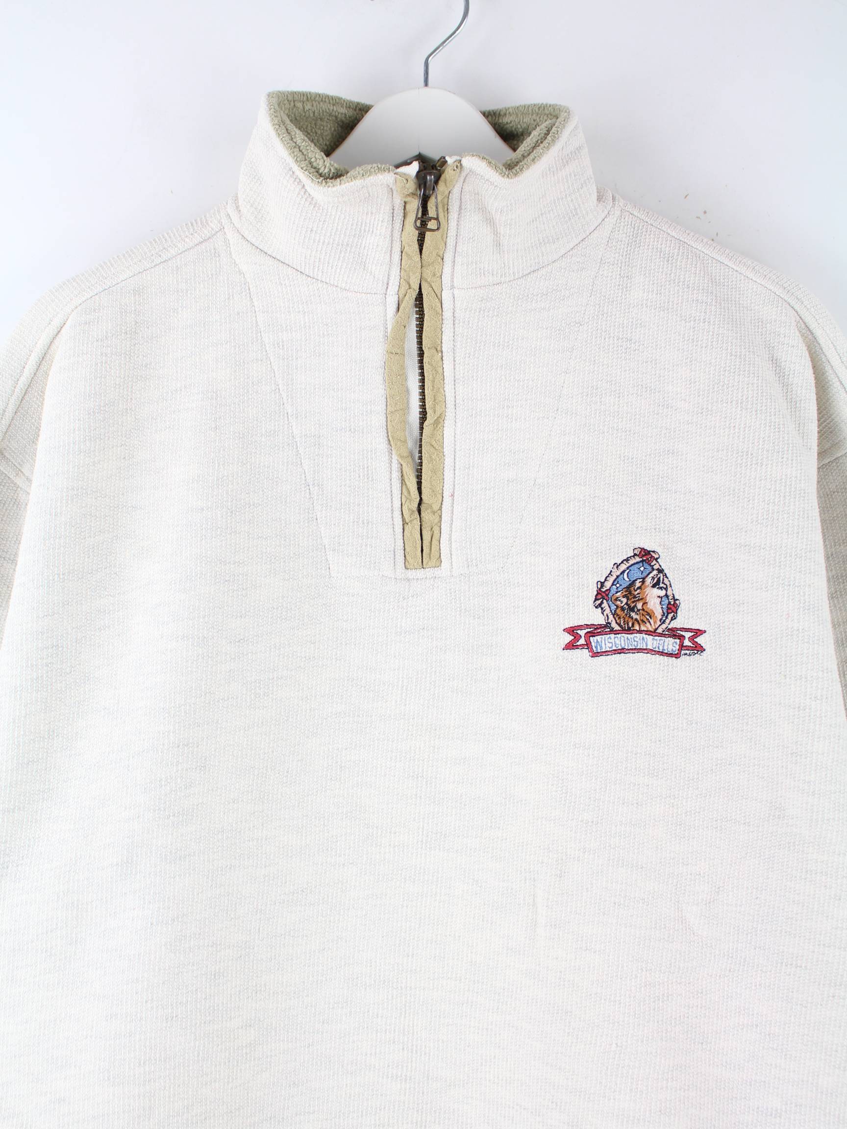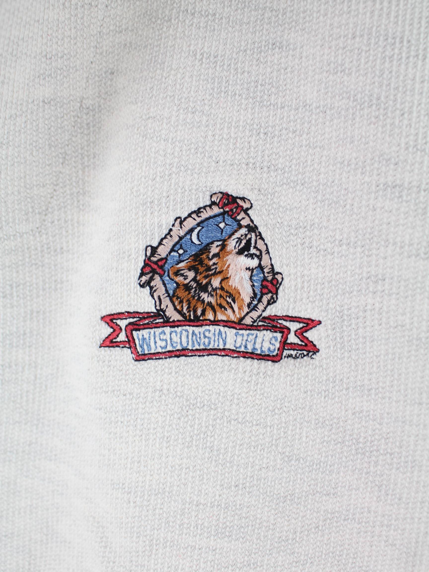 Vintage 90s Wisconsin Dells Embroidered Half Zip Sweater Beige M