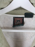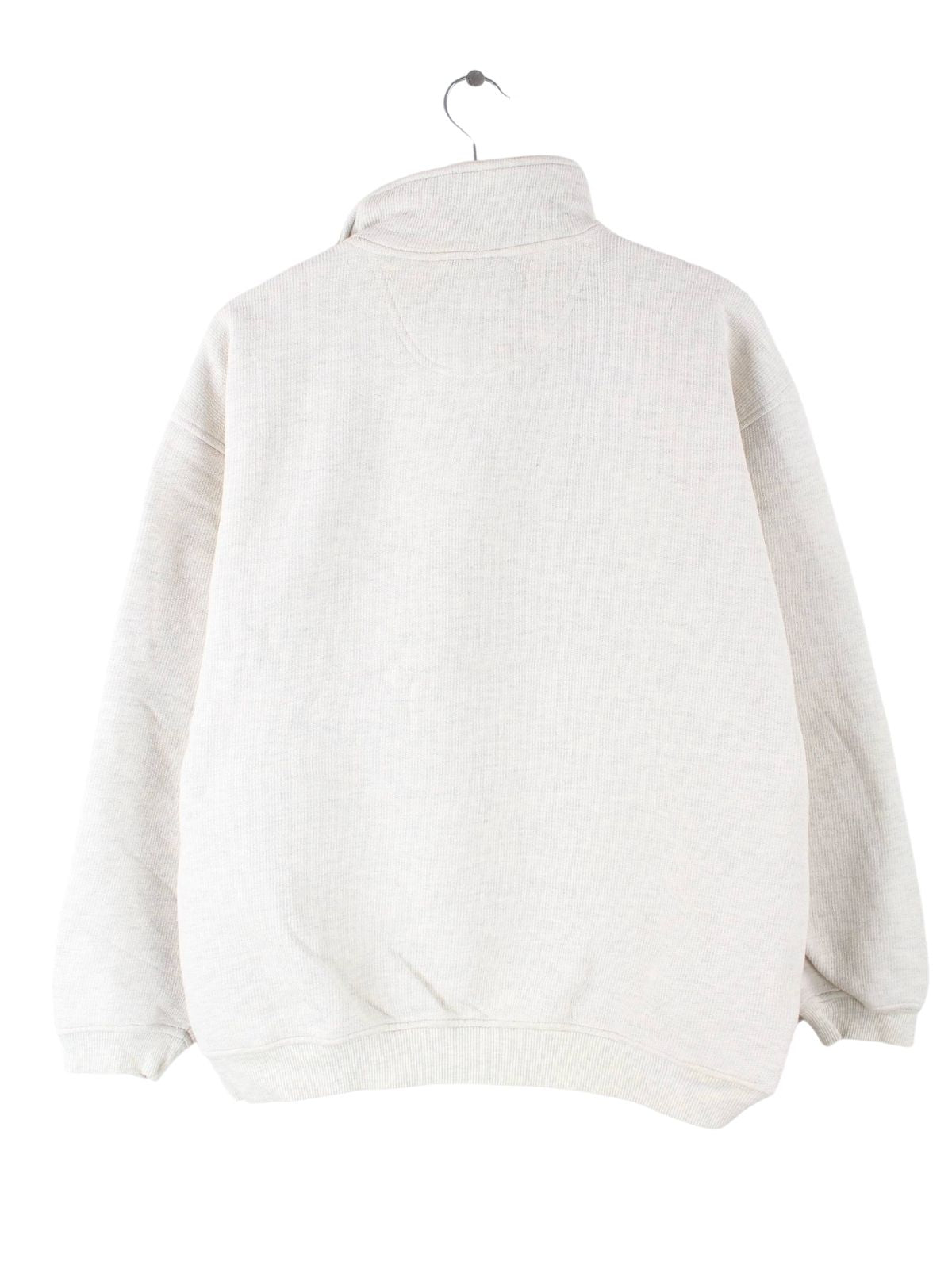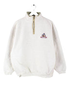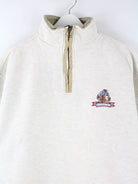 Sweater von Champion mit Stickereien und kurzem Reißverschluß in Größe M aus den 90'ern. Er ist aus einer Baumwollmischung produziert und in Beige vorrätig.