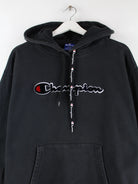 Schwarzer Hoodie des Labels Champion in Größe L. Er ist aus einer Baumwollmischung und in sehr gutem Zustand lieferbar.