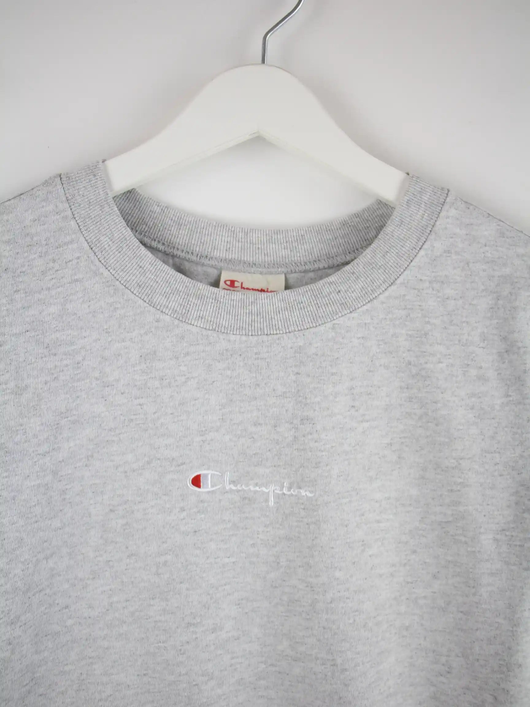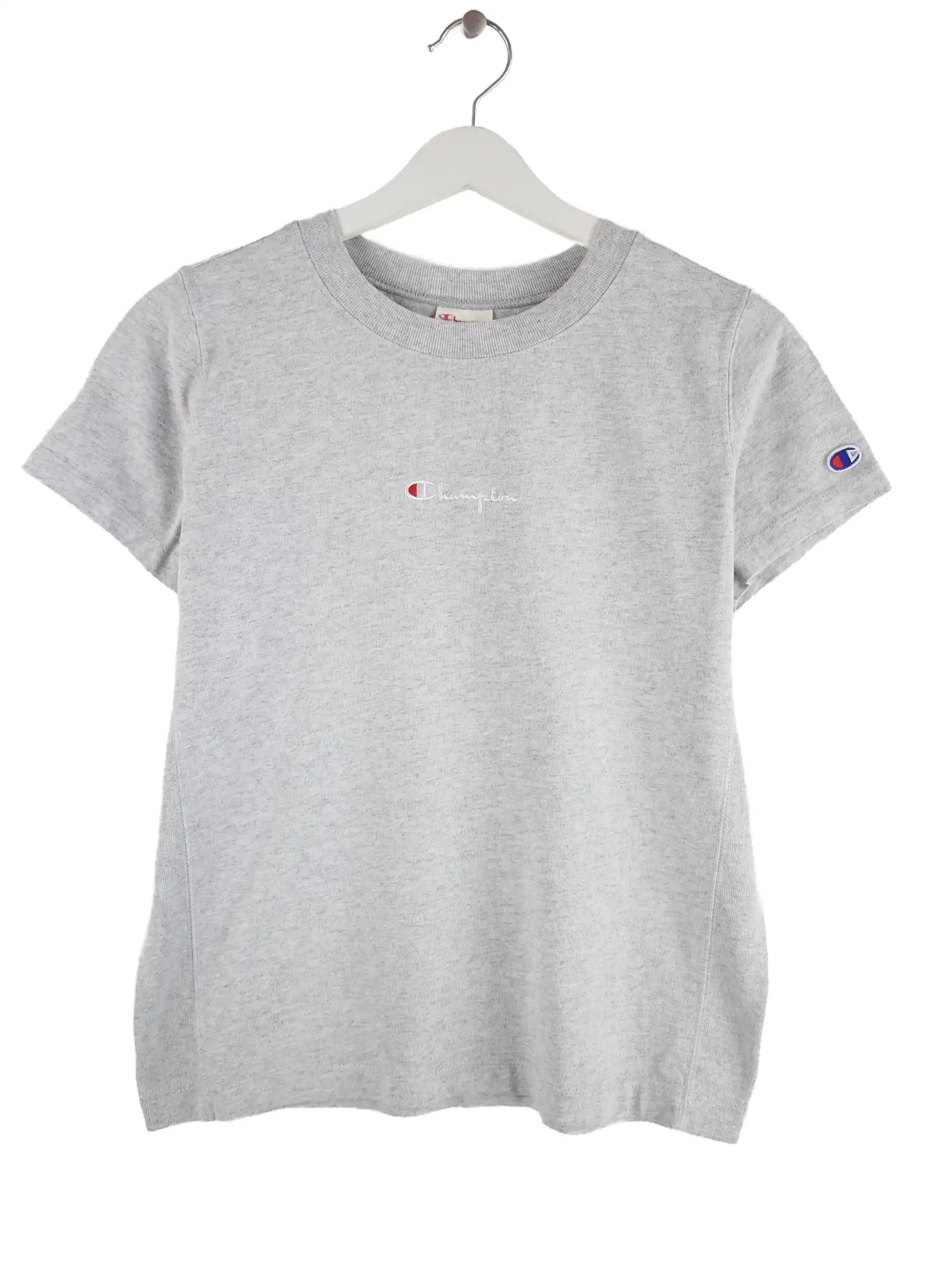 Graues T-Shirt aus dem Hause Champion in Größe XS. Es ist aus Baumwolle und in gutem Zustand lieferbar.