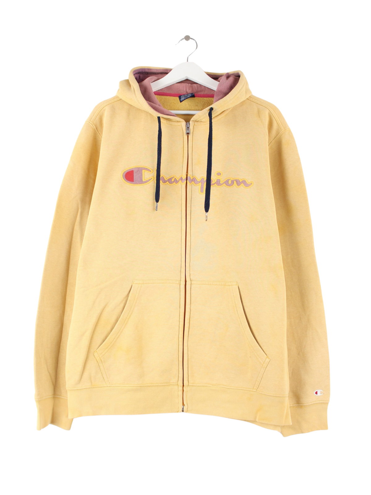 Brauner Hoodie mit Stick und Zip vom Label Champion in Größe XL. Er ist aus einer Baumwollmischung angefertigt und in gutem Zustand bei uns vorrätig.