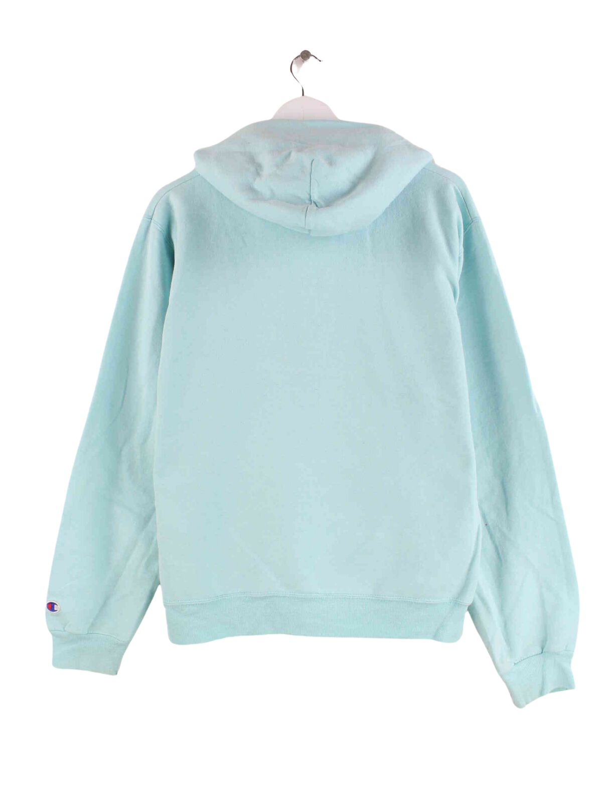 Türkisfarbener Hoodie des Labels Champion in Größe S. Er ist aus einer Baumwollmischung produziert und in gutem Zustand zu haben.