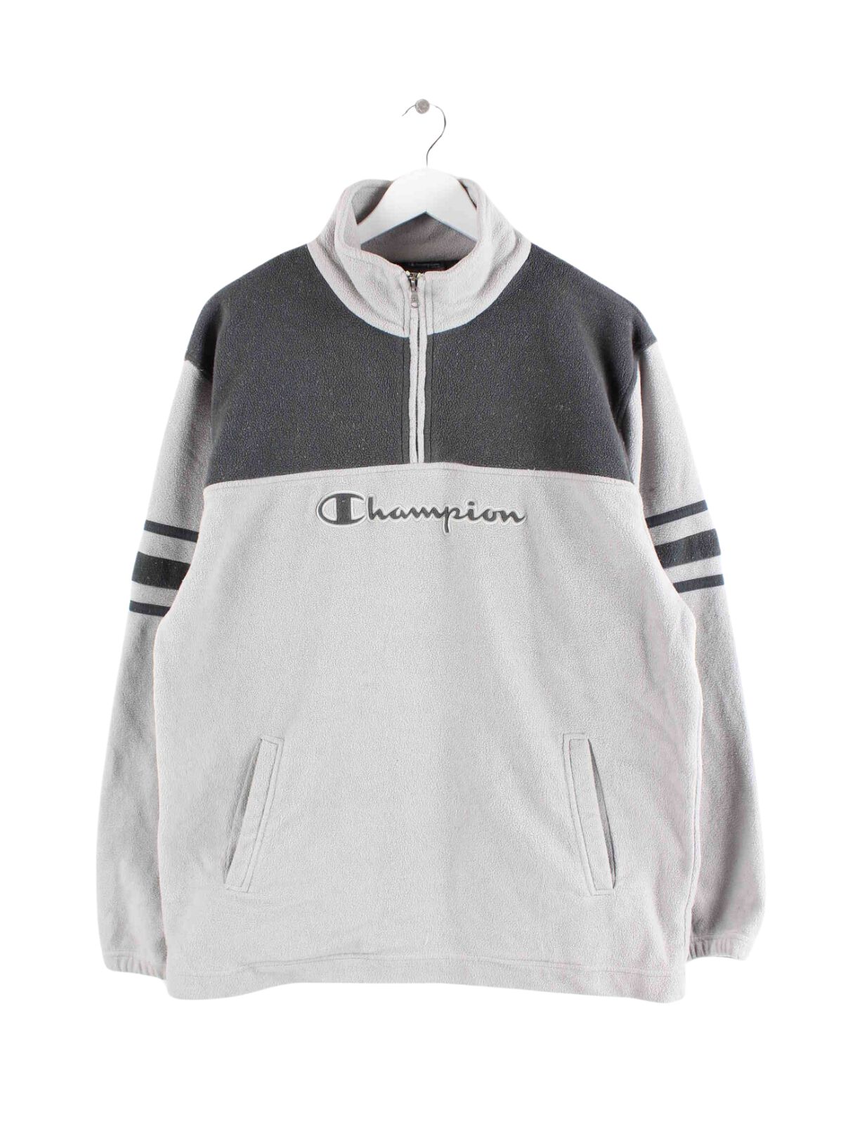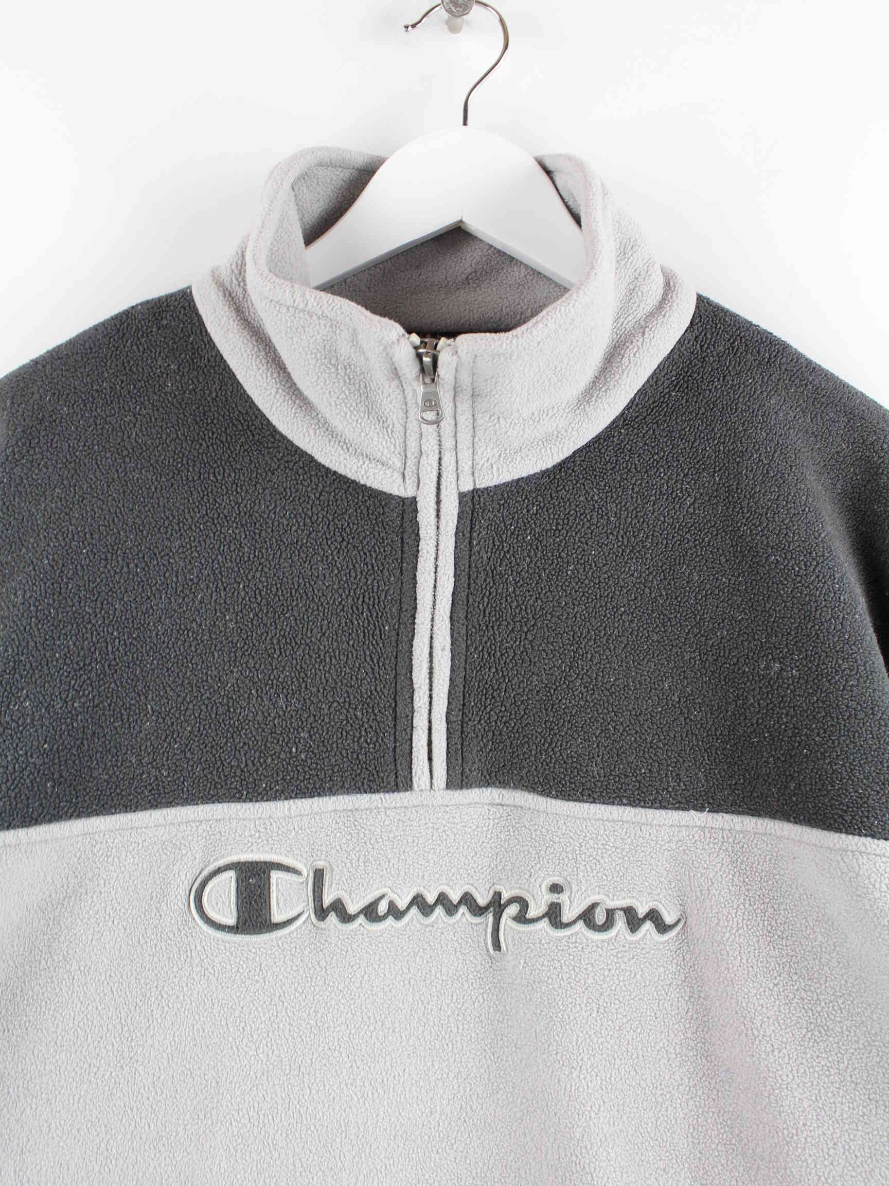 Champion y2k Embroidered Fleece Half Zip Sweater Grau L